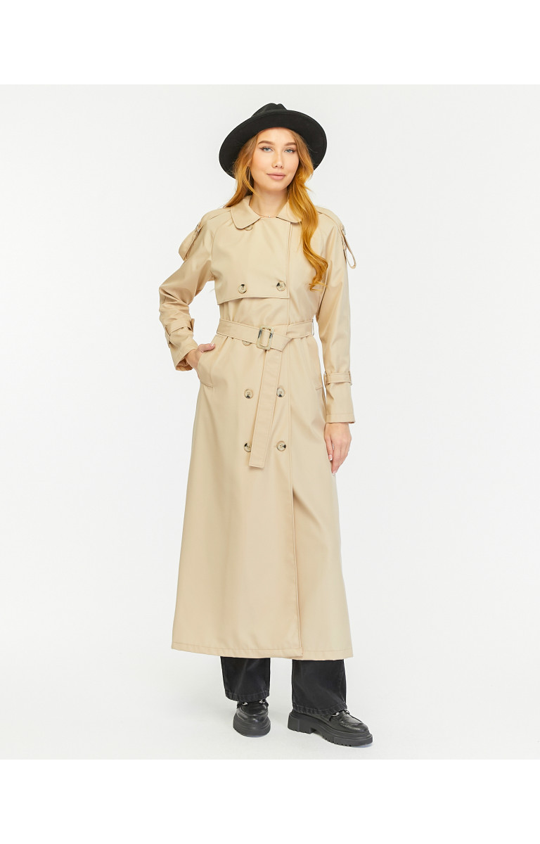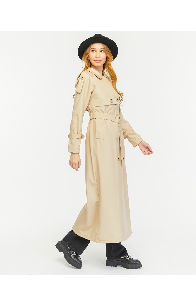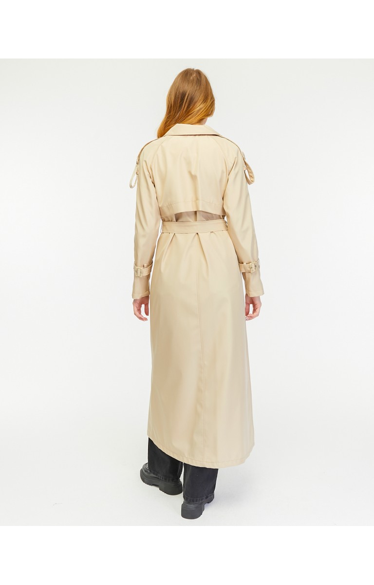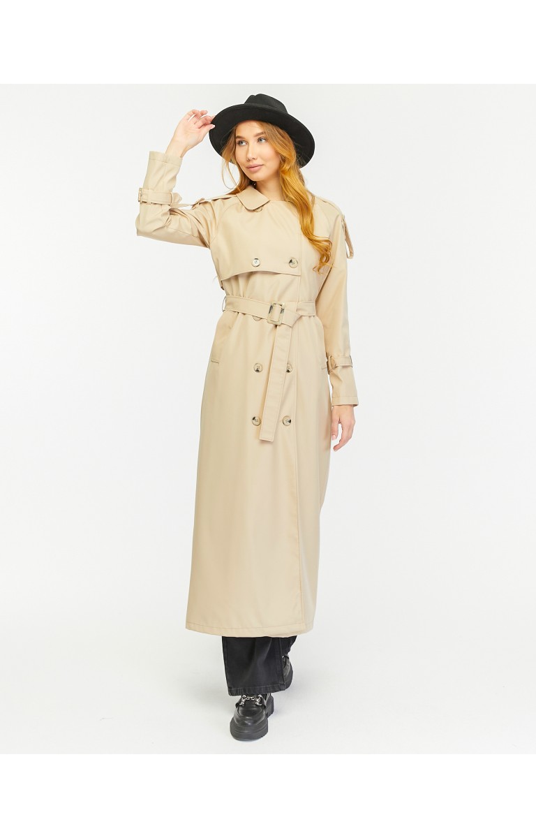 Reglan Kol Mevsimlik Astarlı Tam Boy Kadın Trençkot - Bej