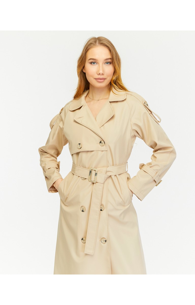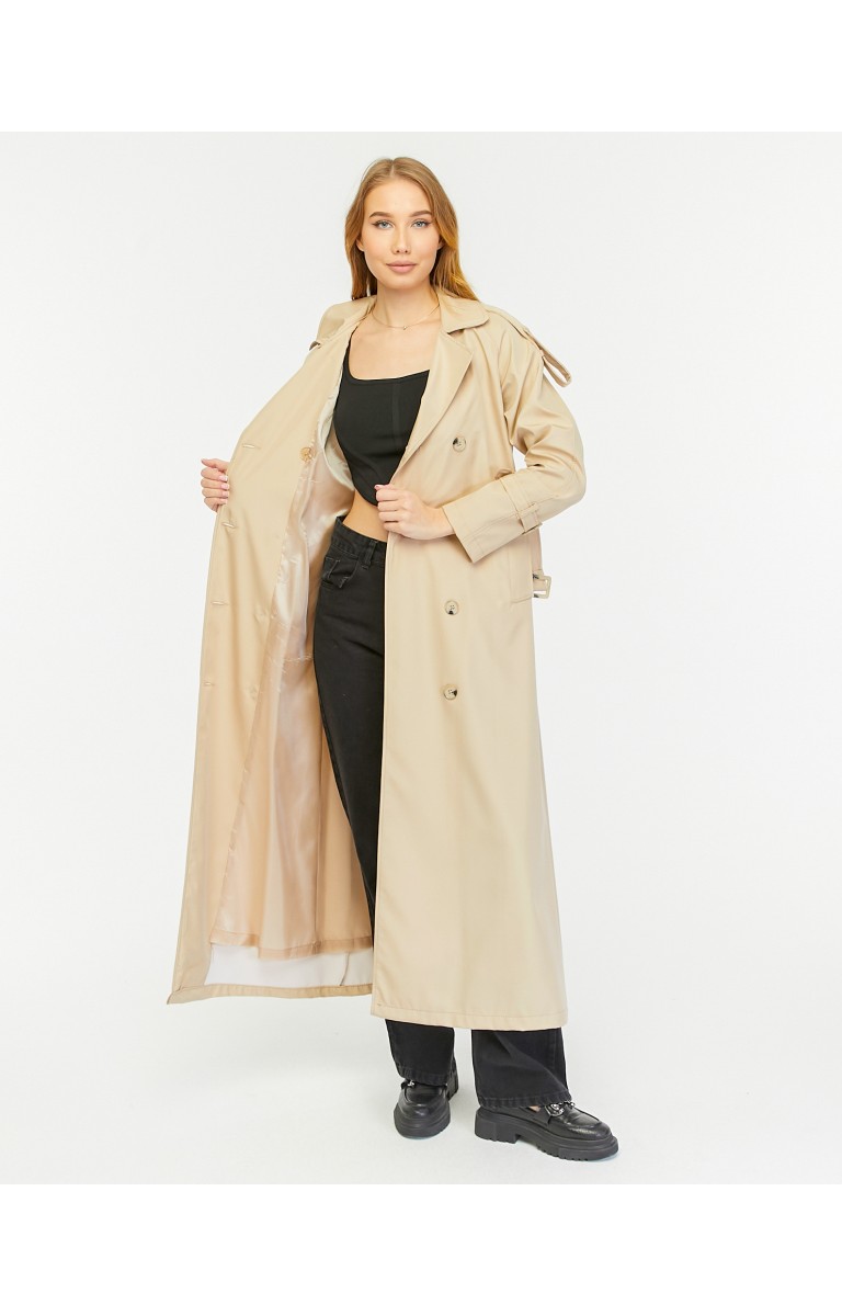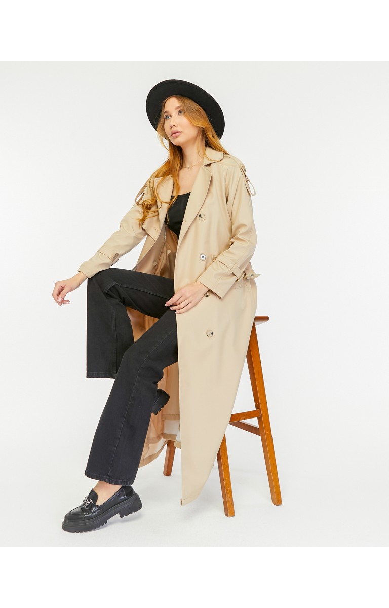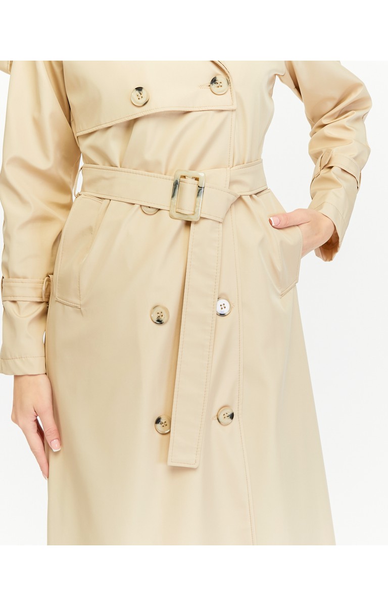 Reglan Kol Mevsimlik Astarlı Tam Boy Kadın Trençkot - Bej