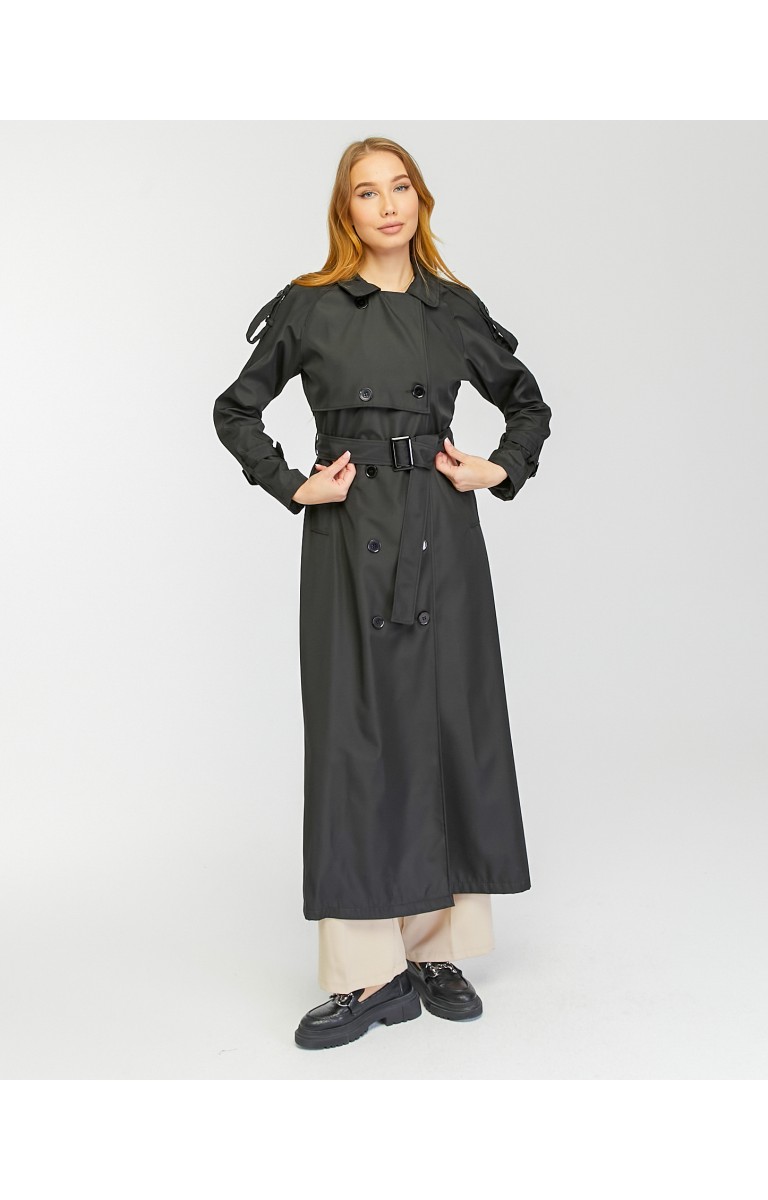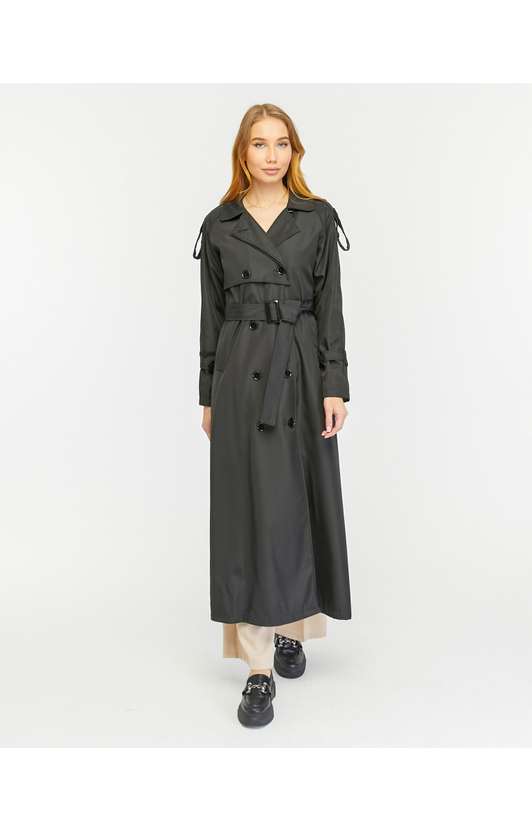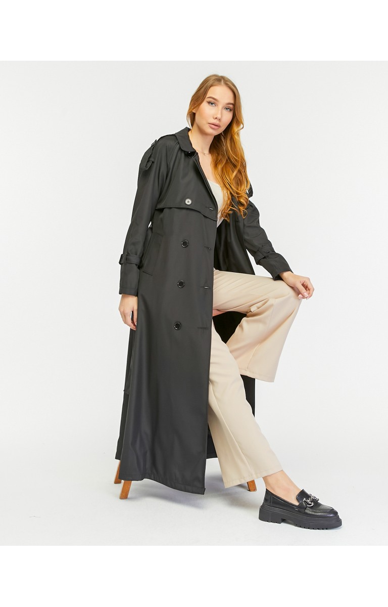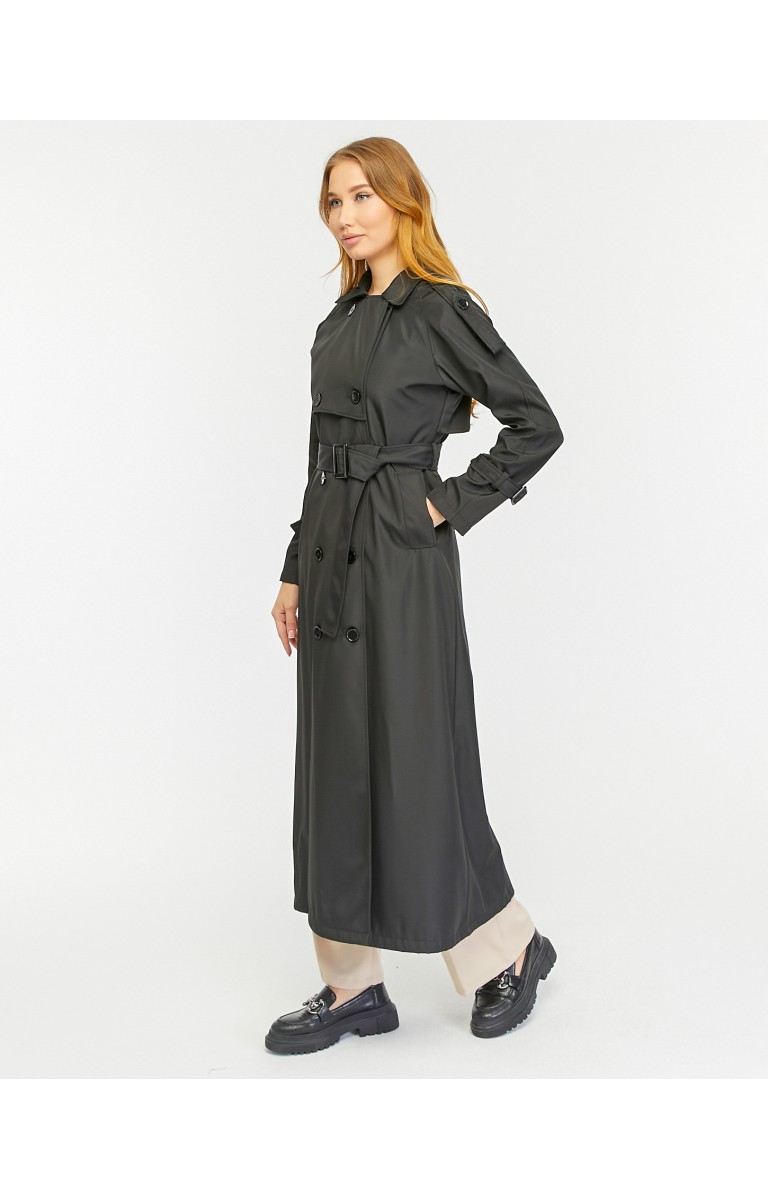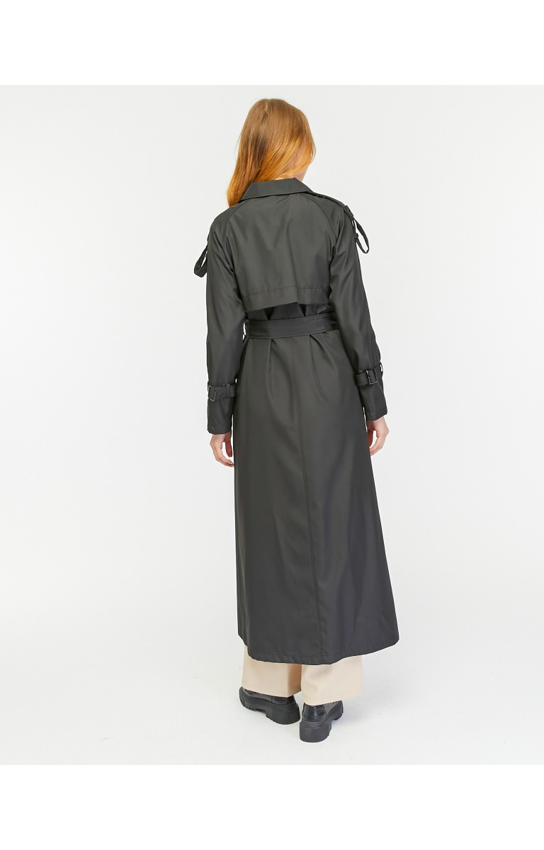 Reglan Kol Mevsimlik Astarlı Tam Boy Kadın Trençkot - Siyah