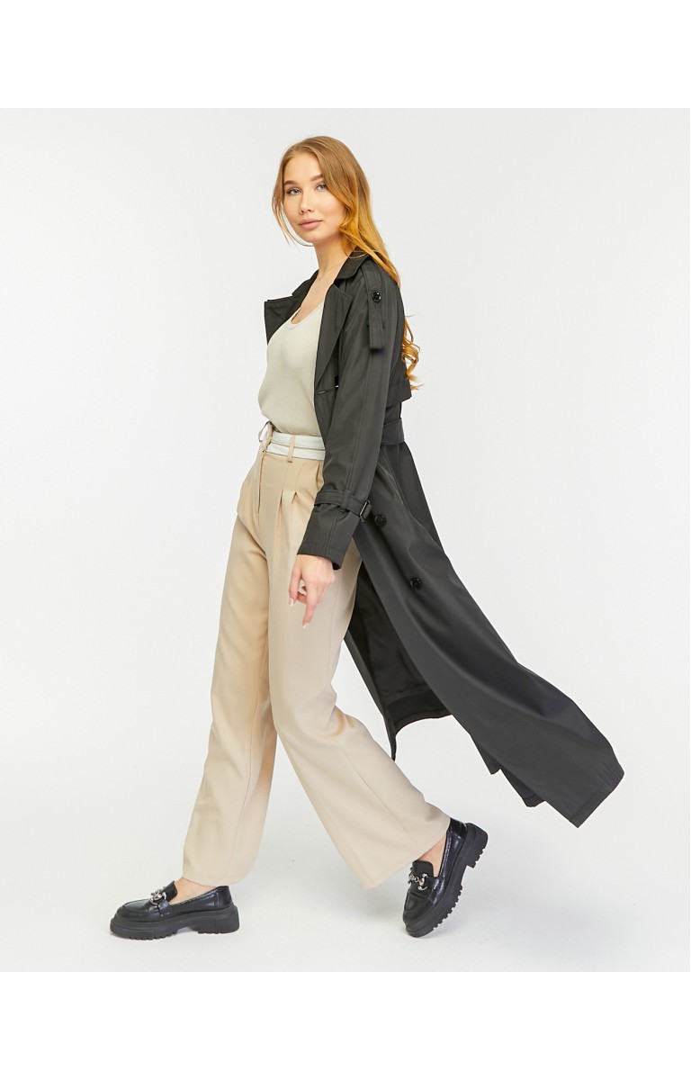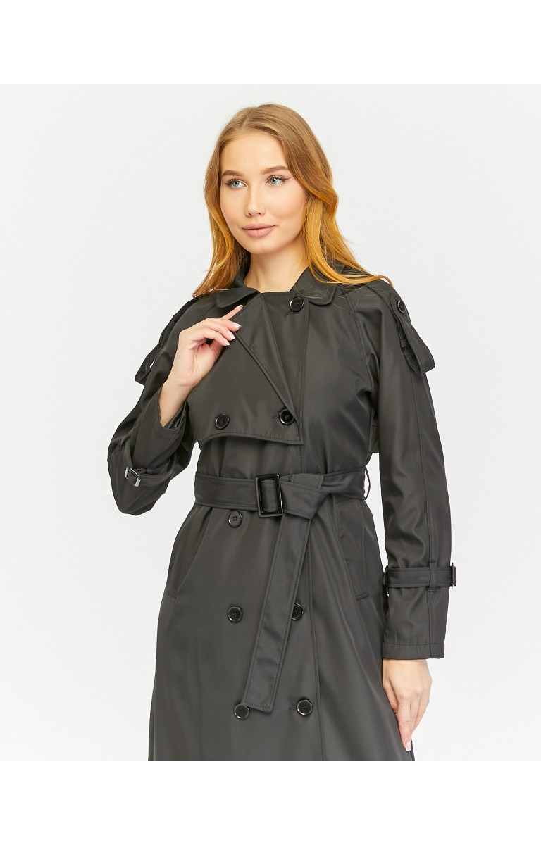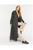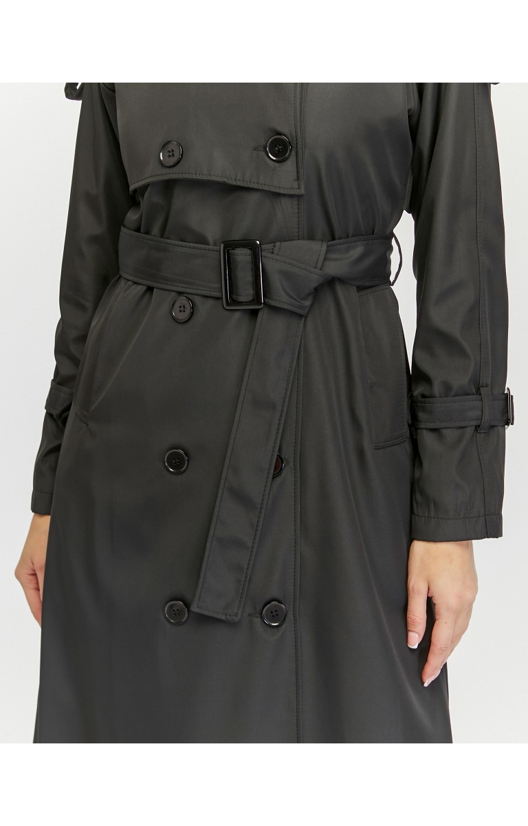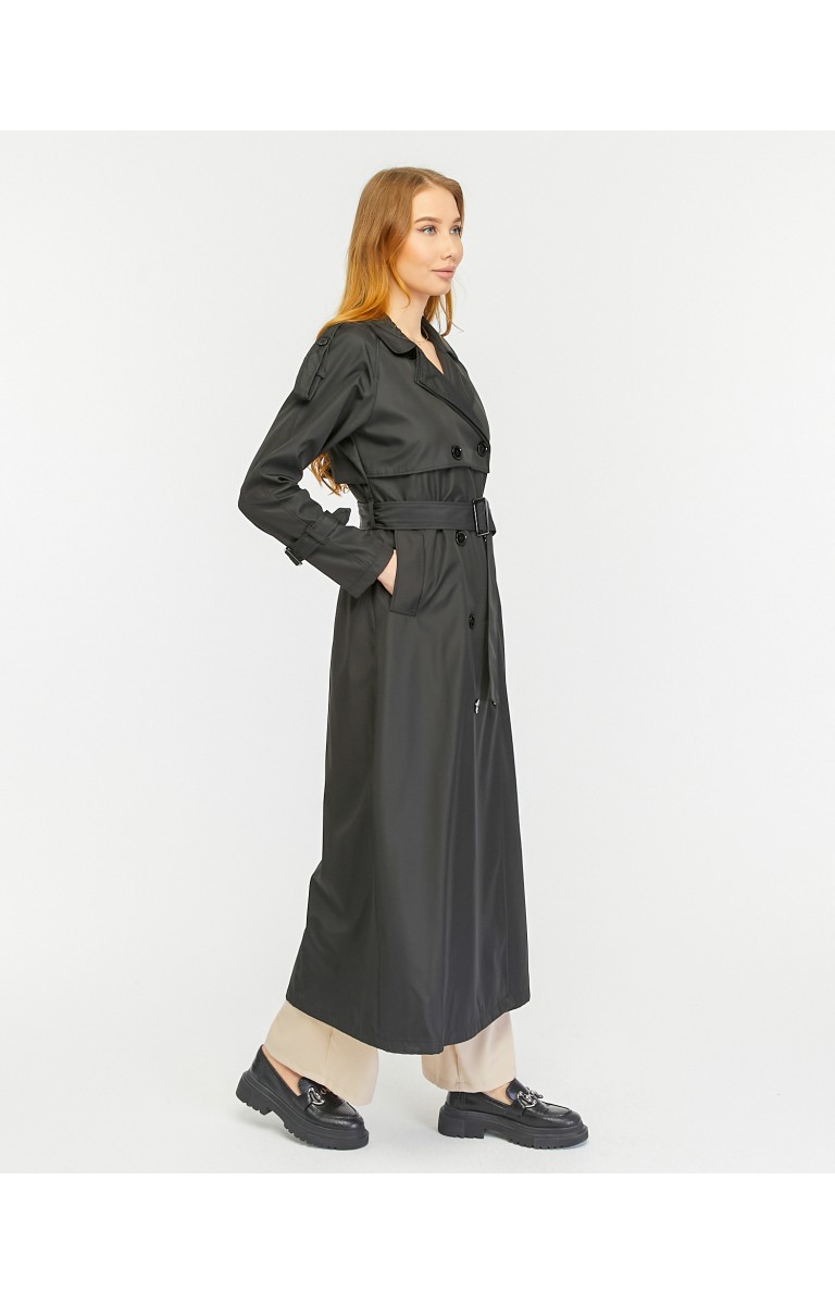 Reglan Kol Mevsimlik Astarlı Tam Boy Kadın Trençkot - Siyah