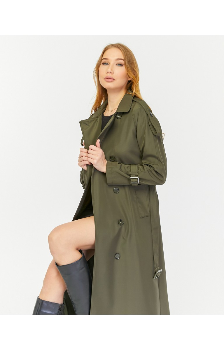 Reglan Kol Mevsimlik Astarlı Tam Boy Kadın Trençkot - Haki