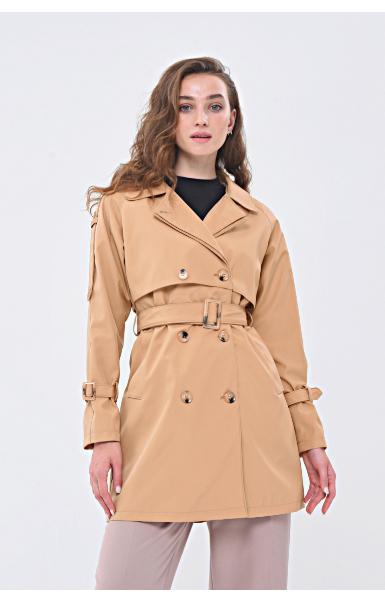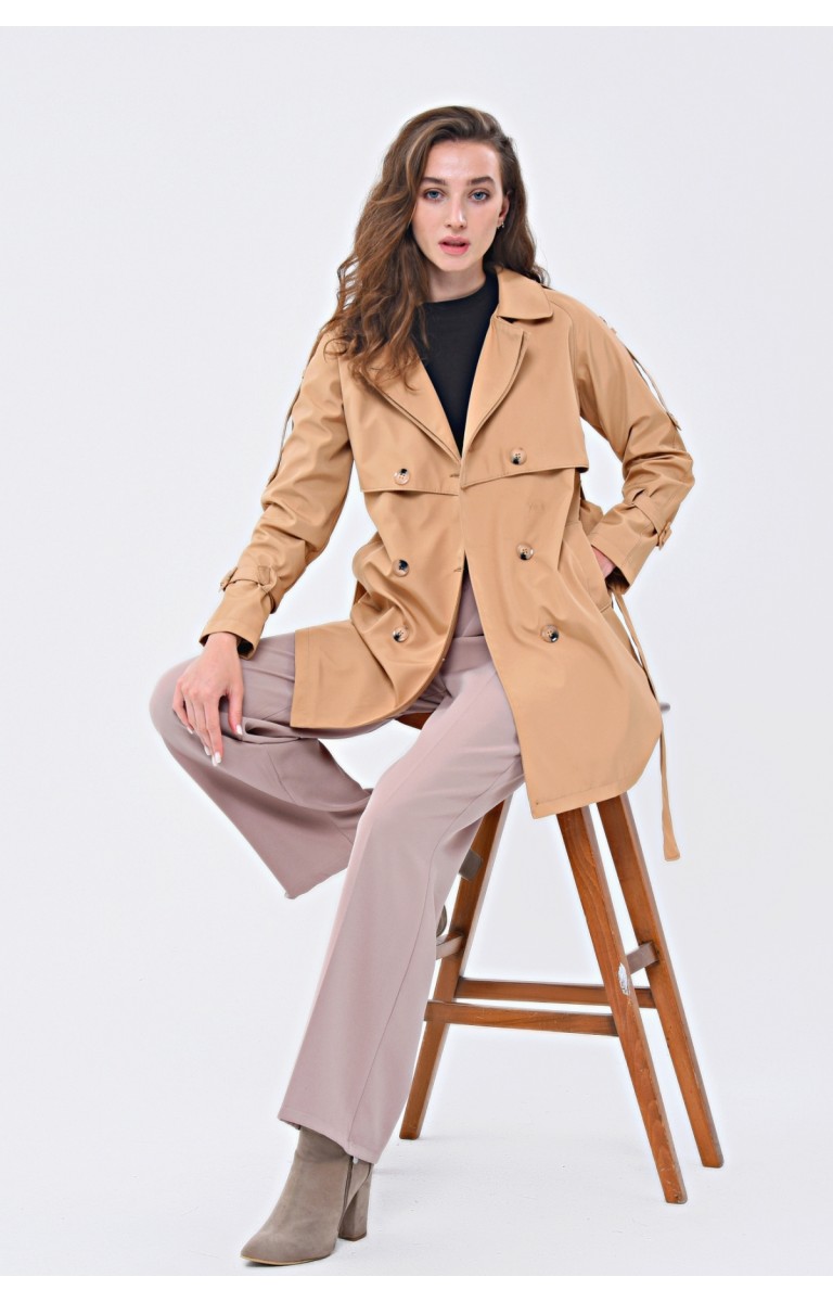 REGLAN KOL MEVSİMLİK ASTARLI KADIN TRENÇKOT/KAP - KAMEL