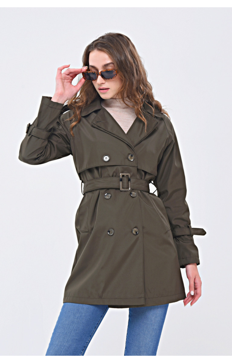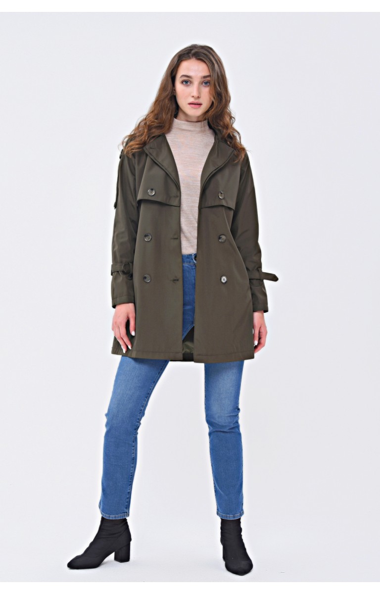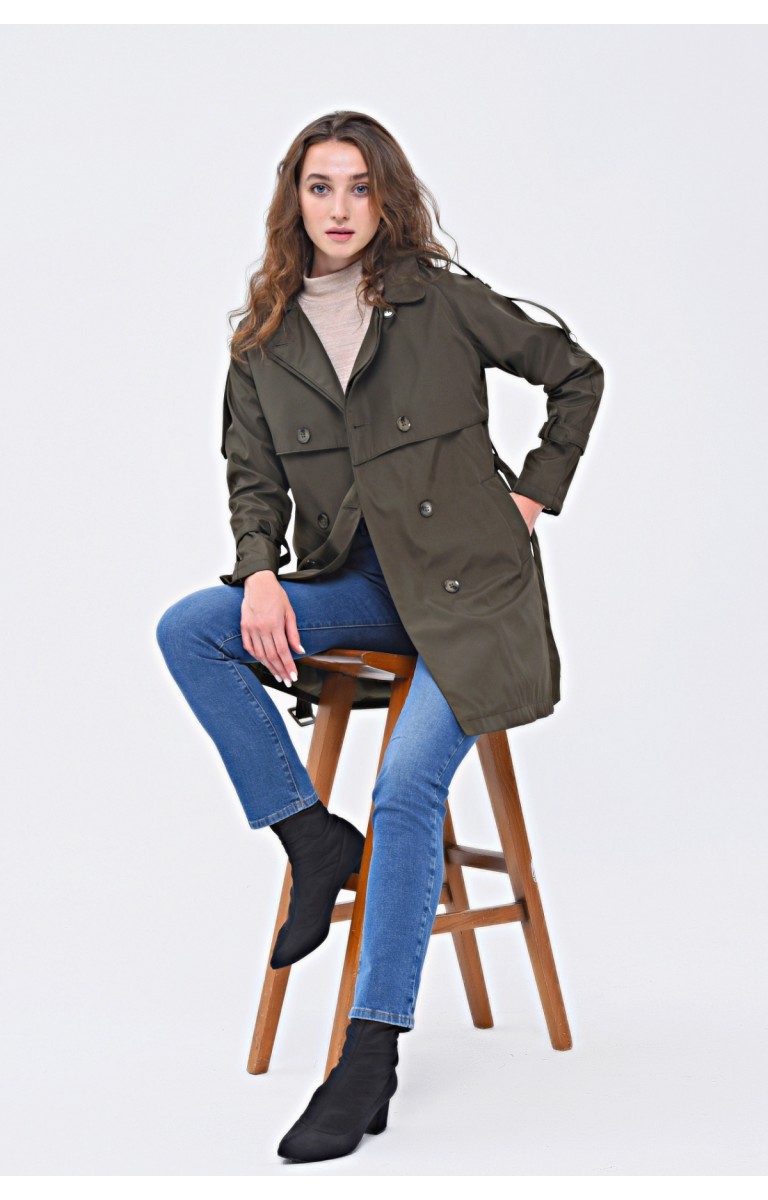 REGLAN KOL MEVSİMLİK ASTARLI KADIN TRENÇKOT/KAP - HAKİ