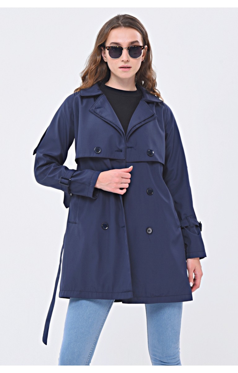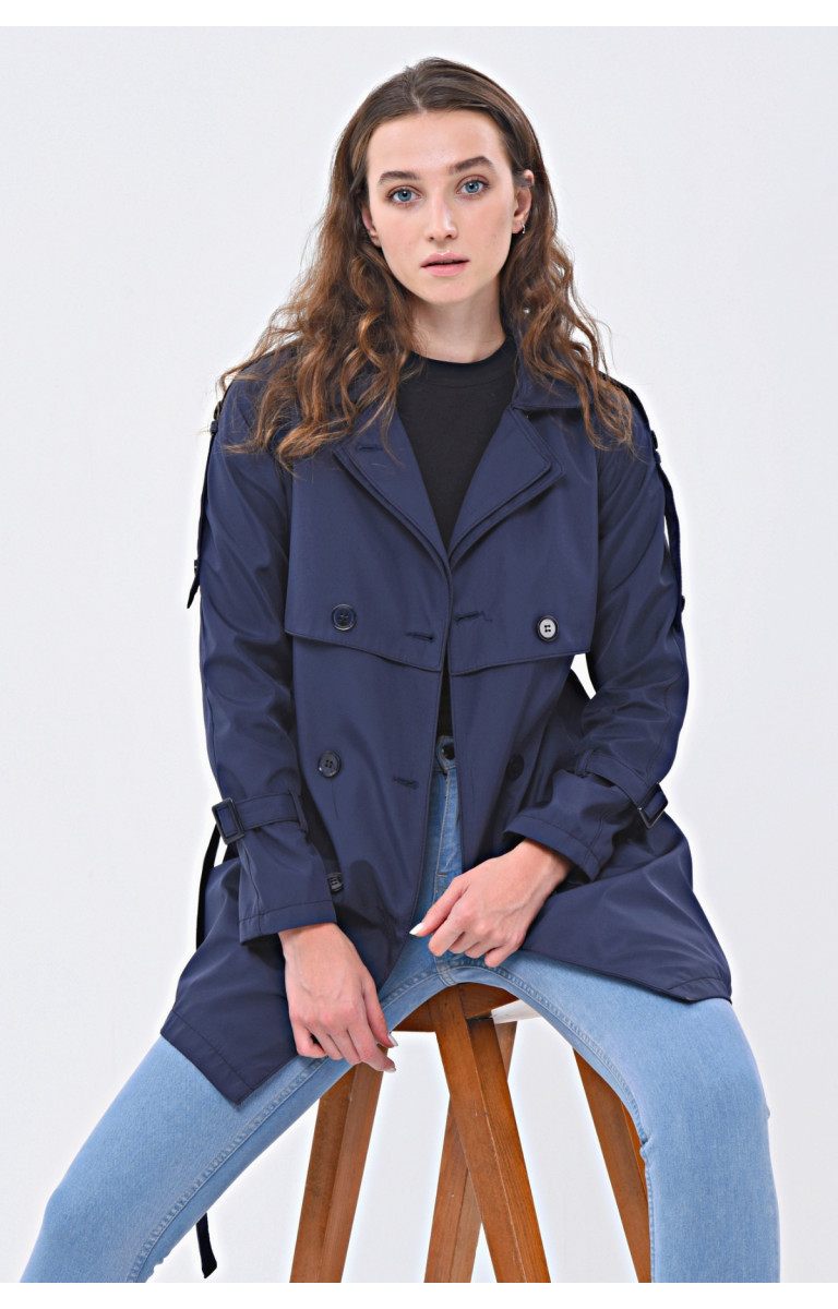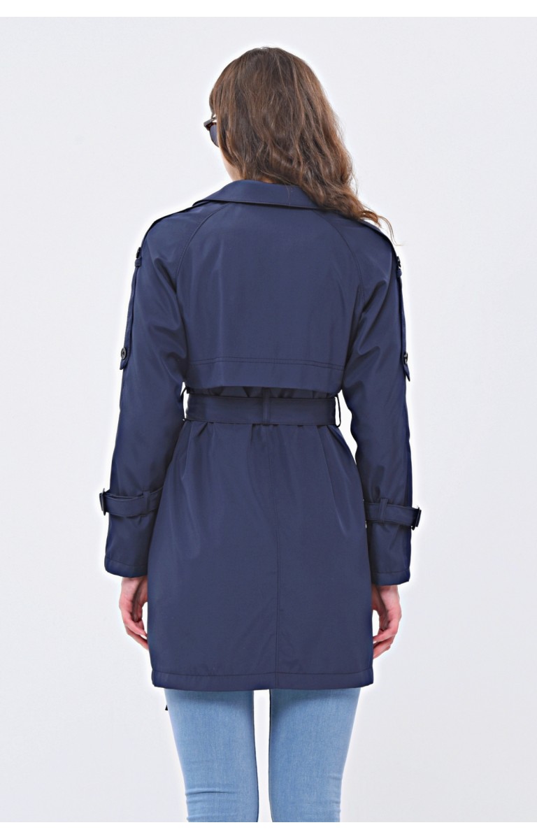 REGLAN KOL MEVSİMLİK ASTARLI KADIN TRENÇKOT/KAP - LACİVERT
