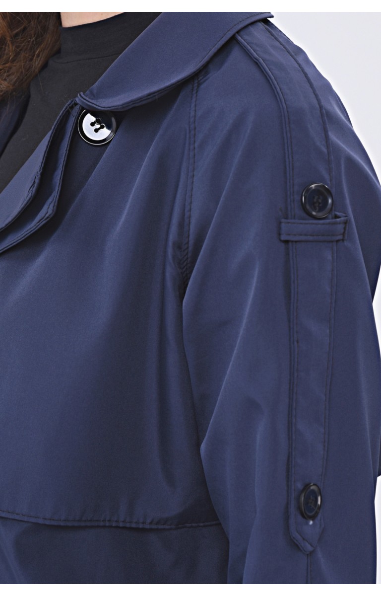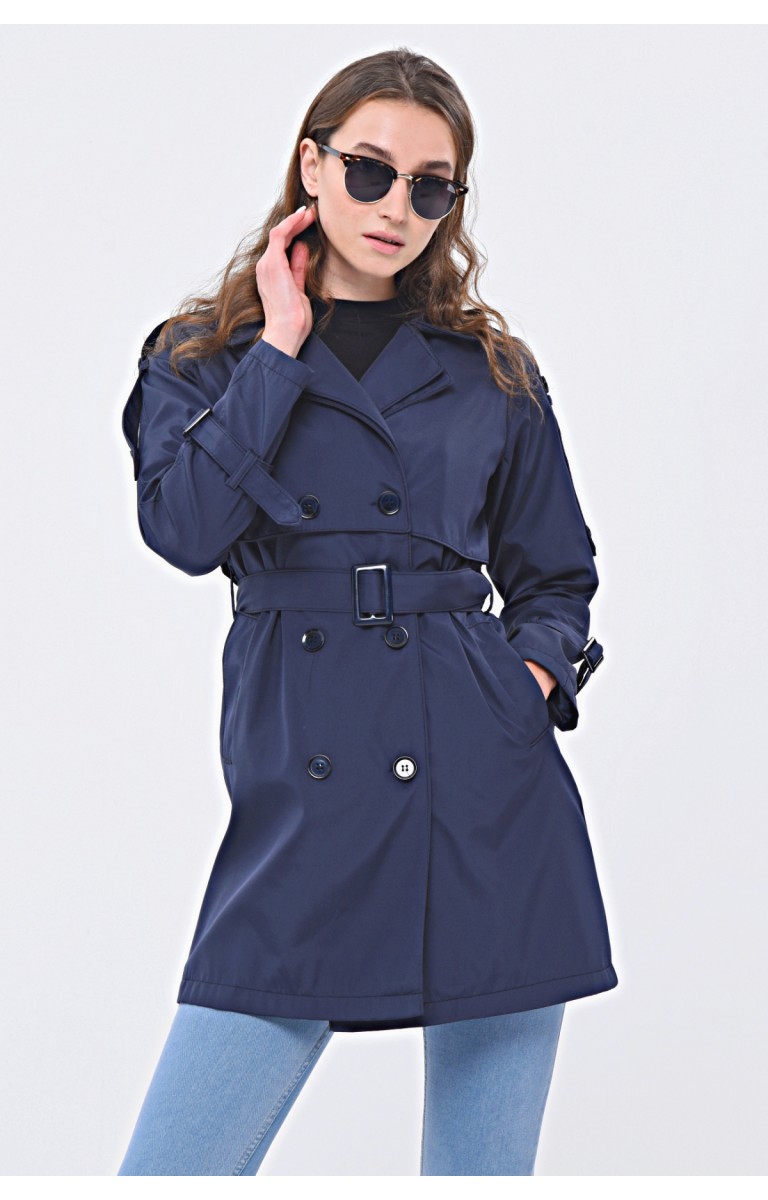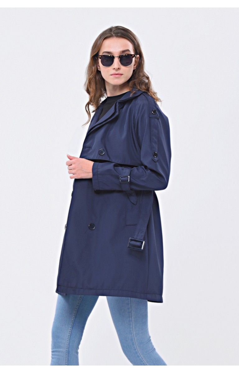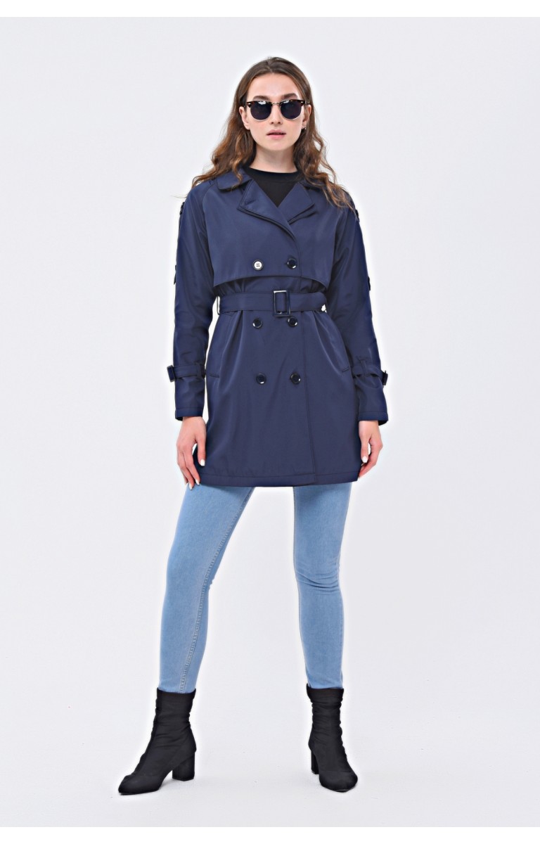 REGLAN KOL MEVSİMLİK ASTARLI KADIN TRENÇKOT/KAP - LACİVERT