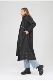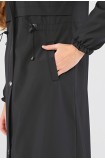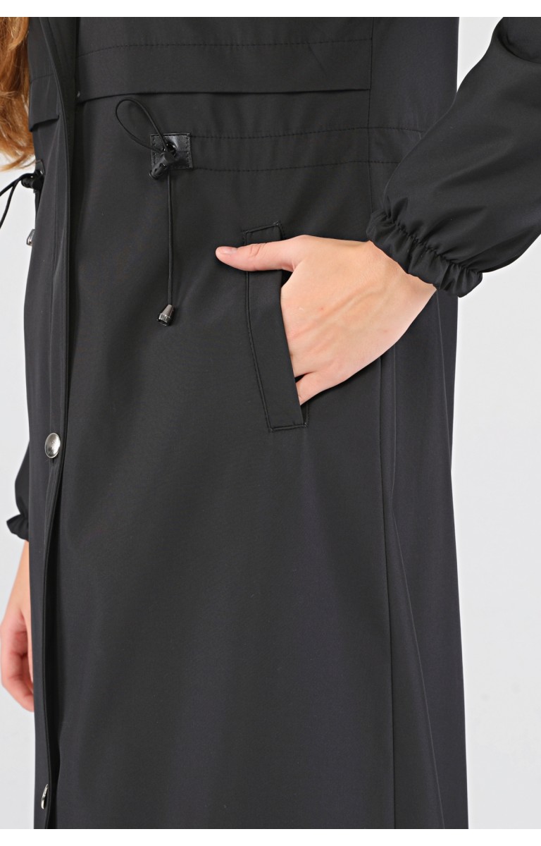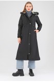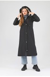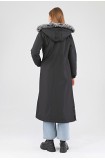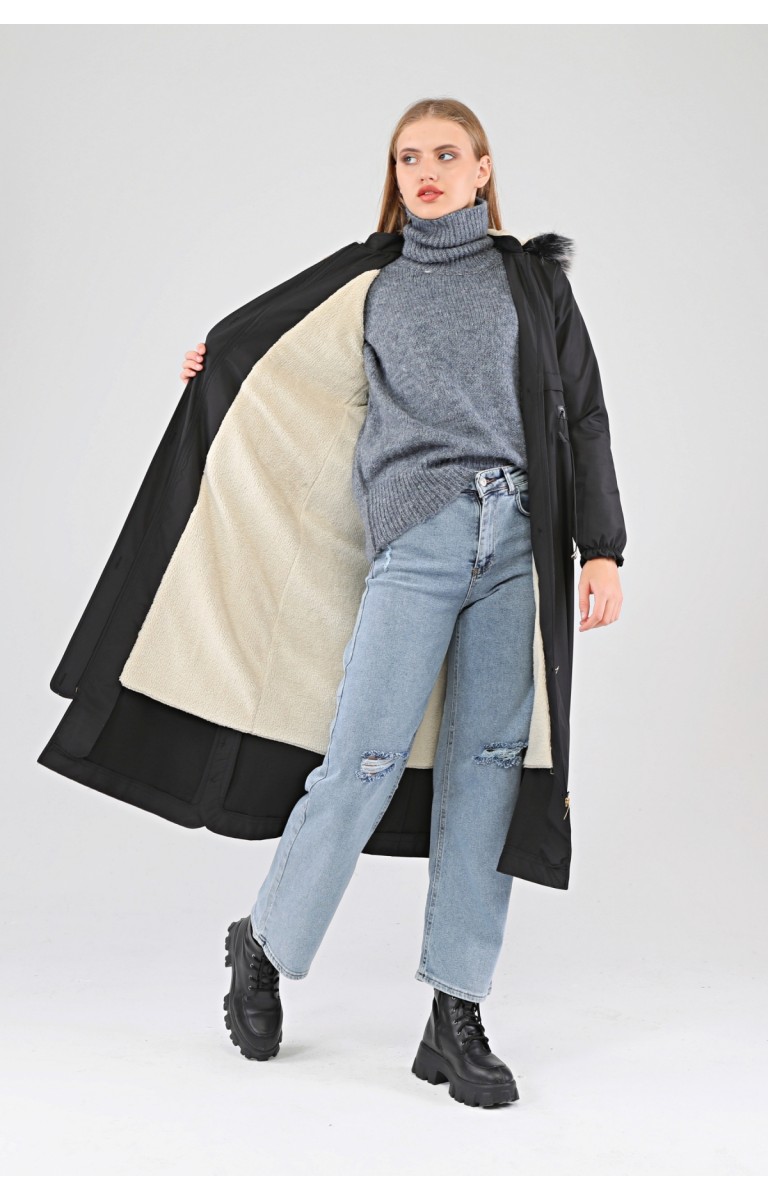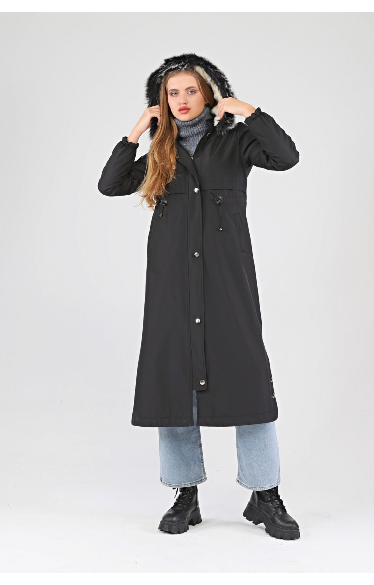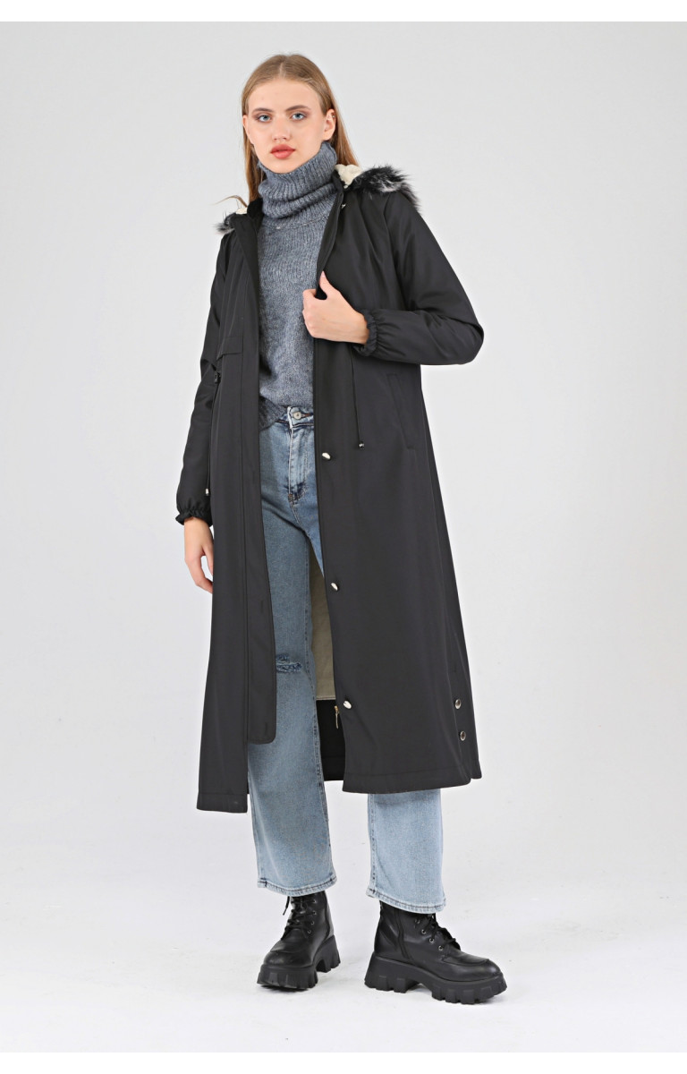 Kışlık Uzun Kadın Kürklü Kapüşonlu Trençkot - SİYAH