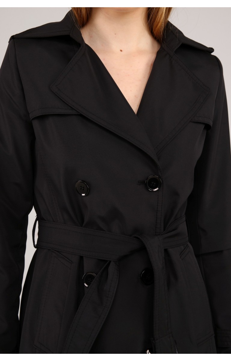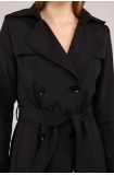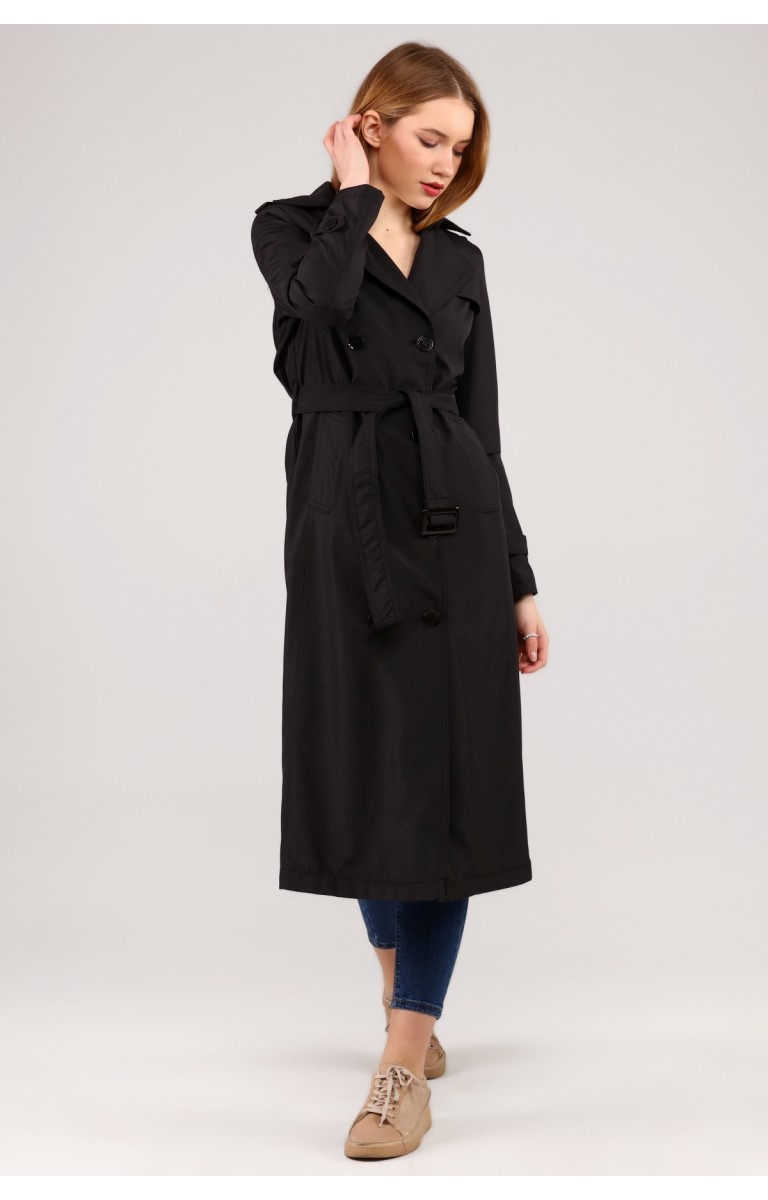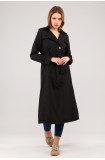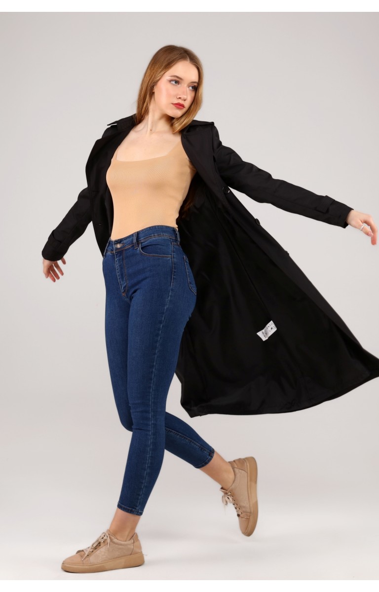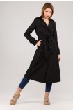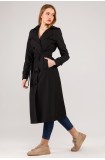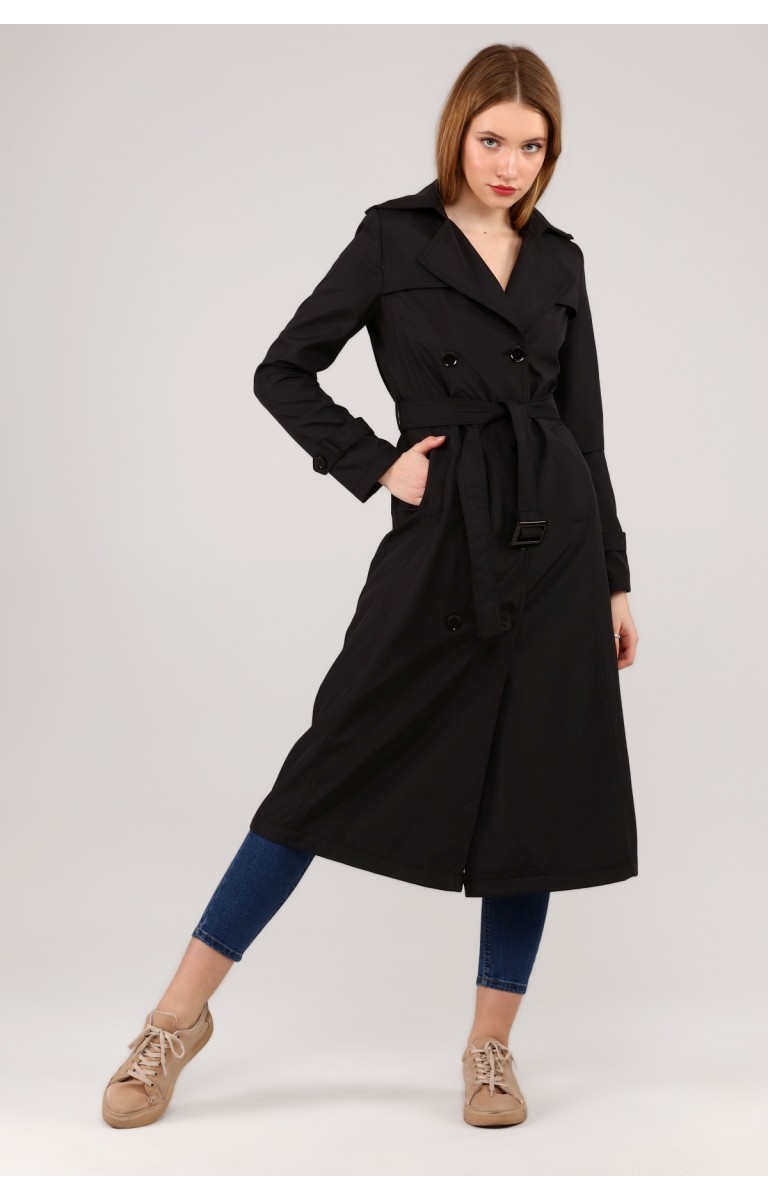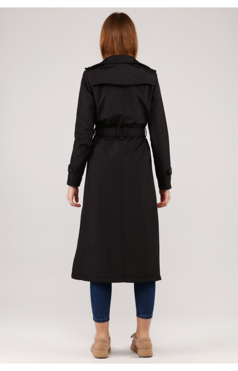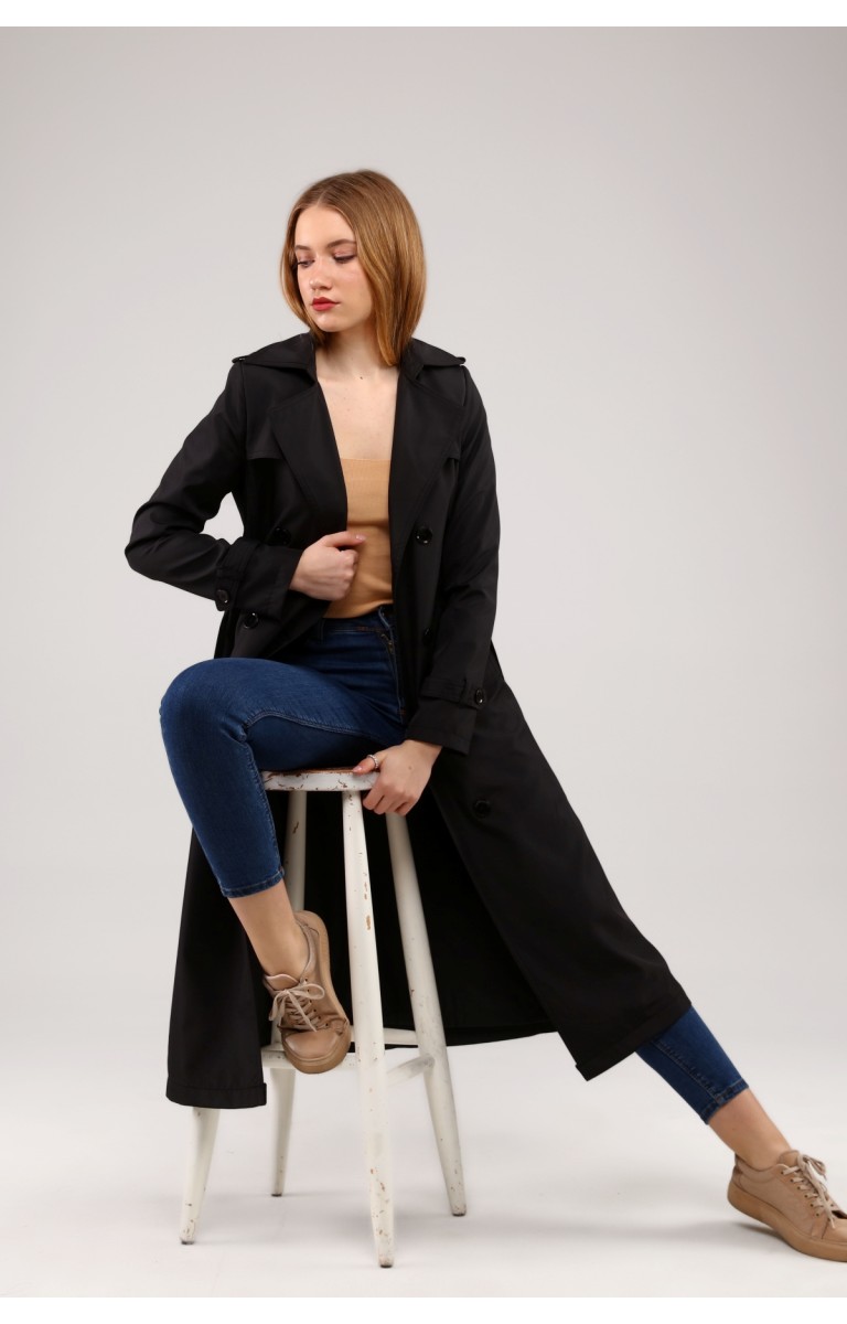 Kadın Astarlı Uzun Trençkot - SİYAH