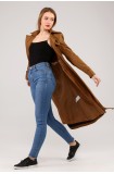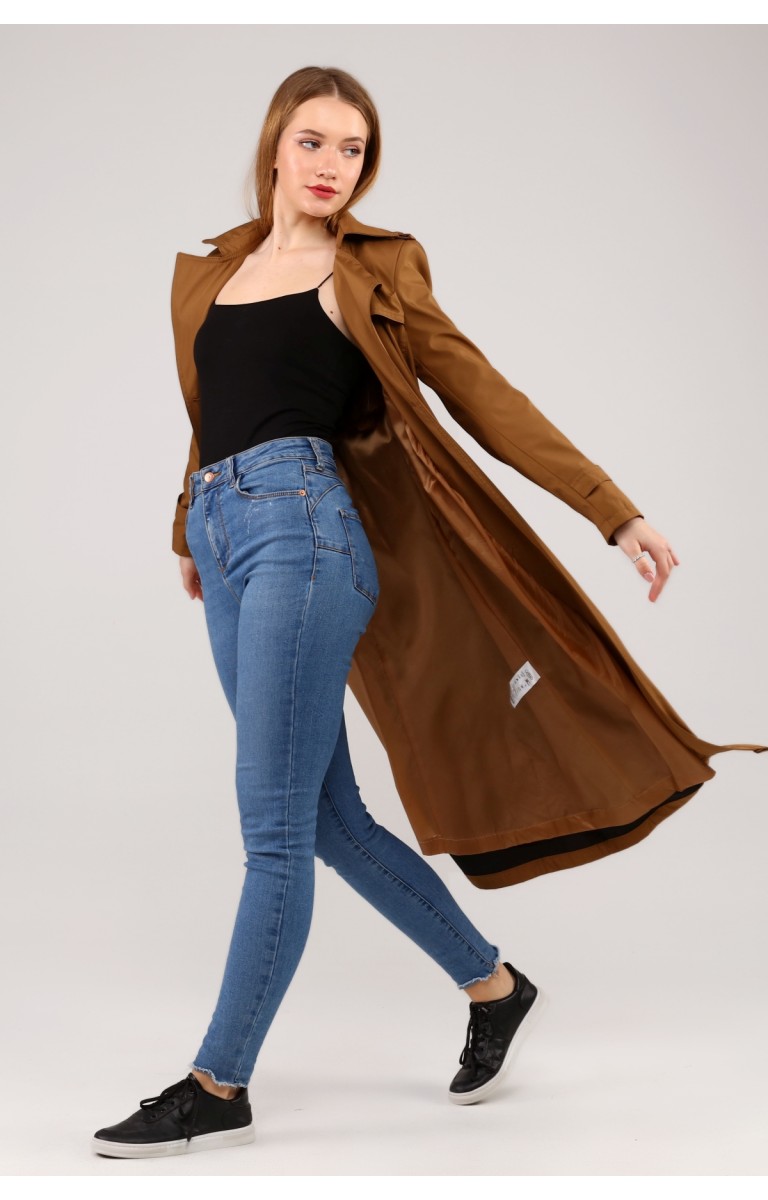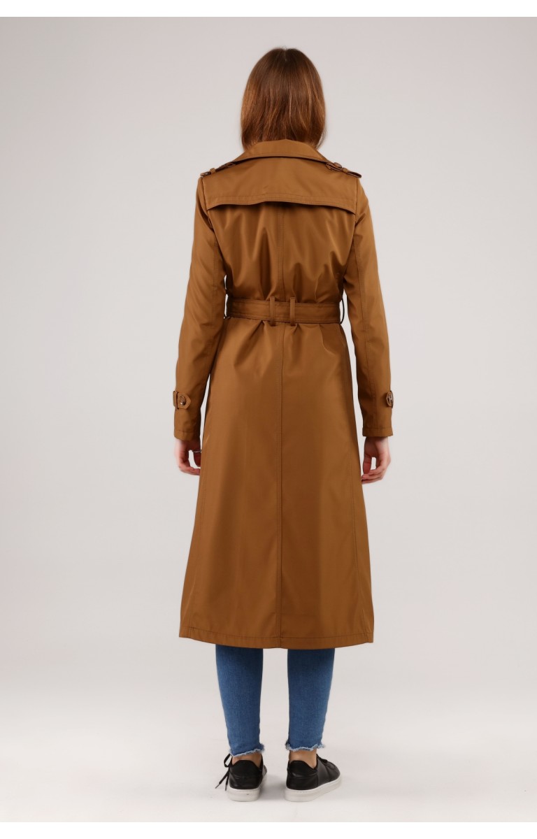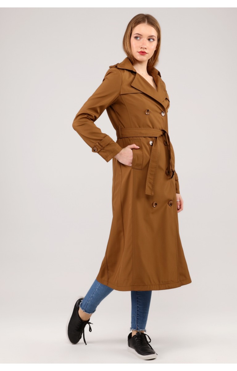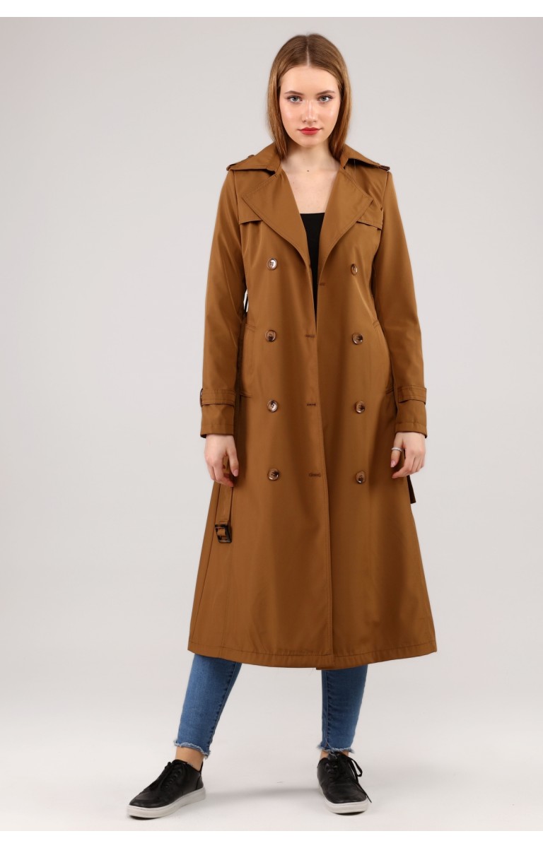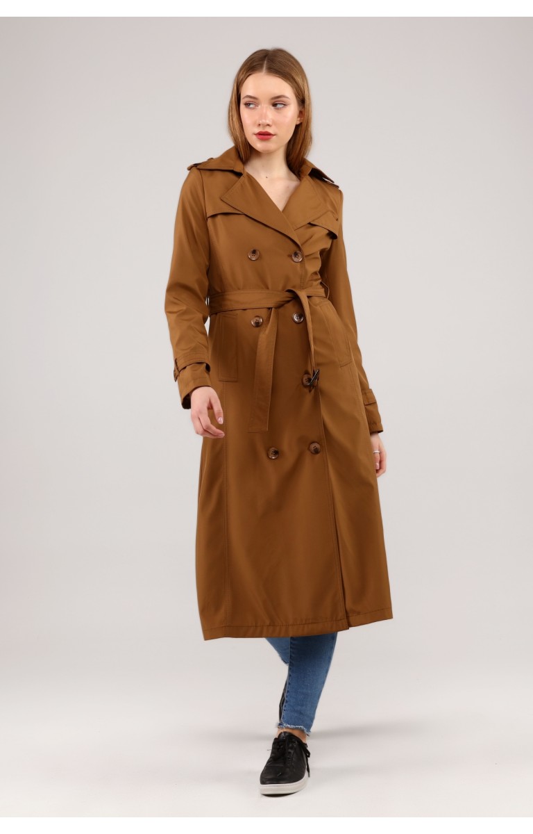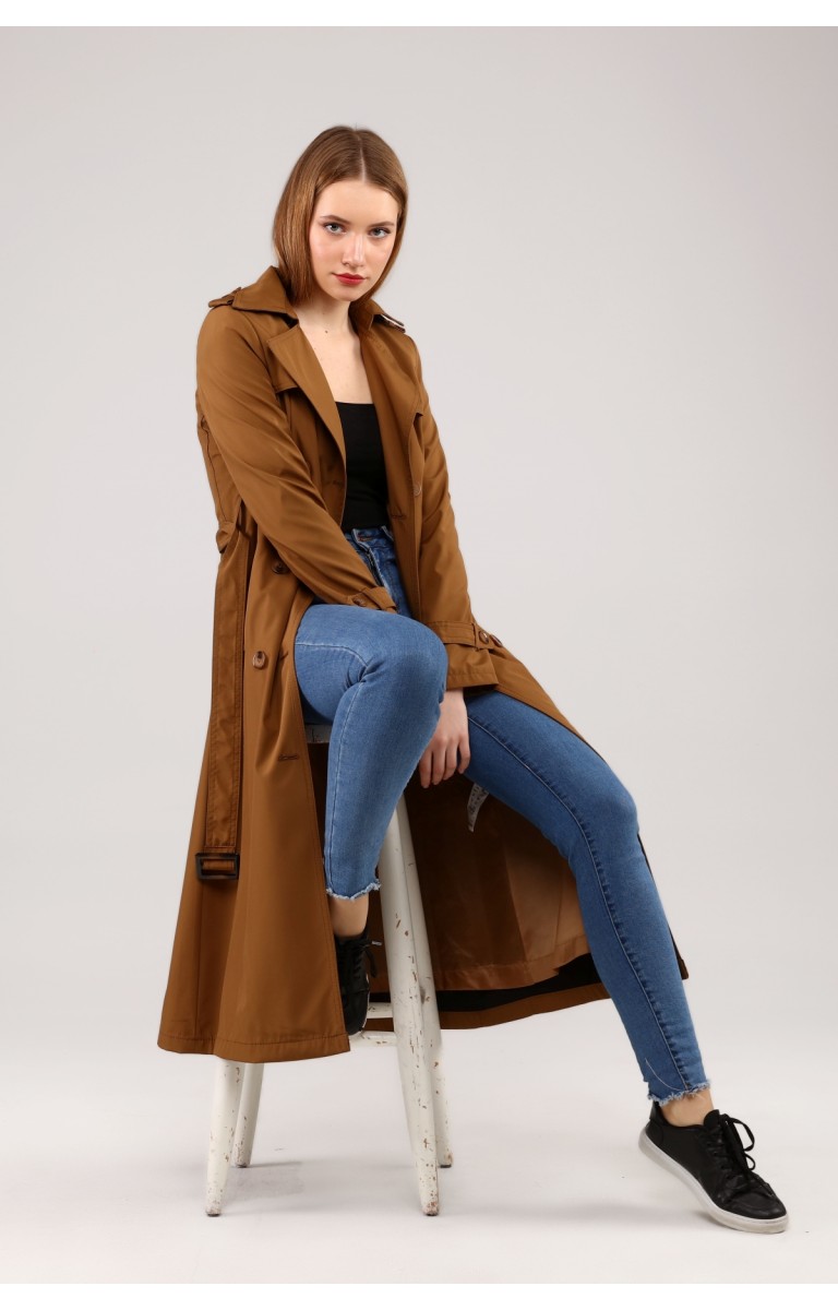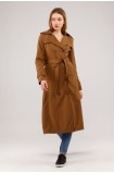 Kadın Astarlı Uzun Trençkot - TABA