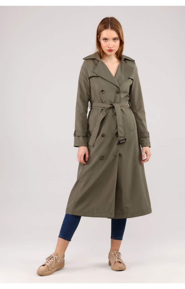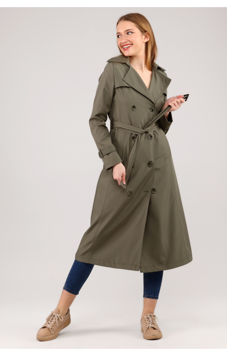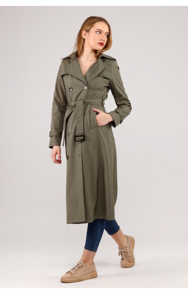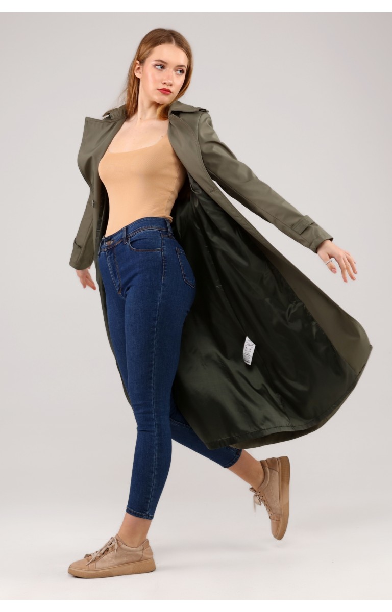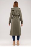 Kadın Astarlı Uzun Trençkot - HAKİ