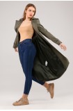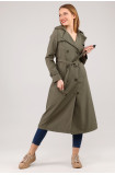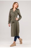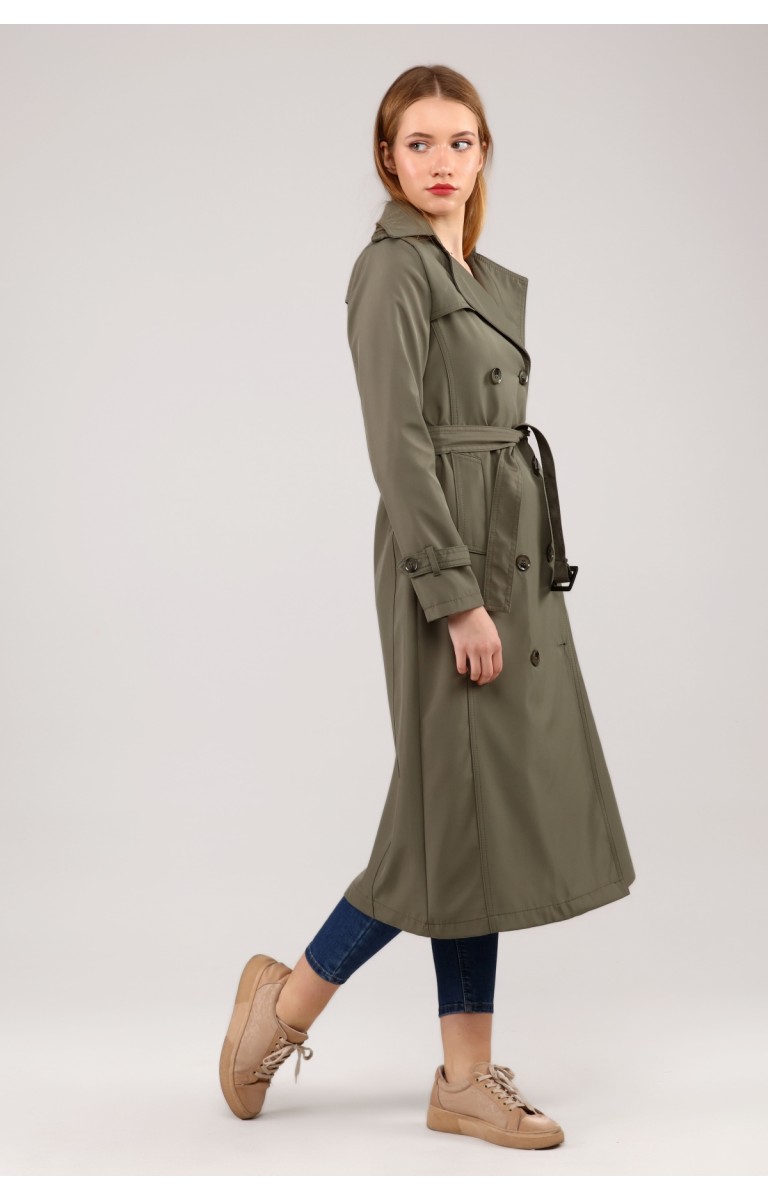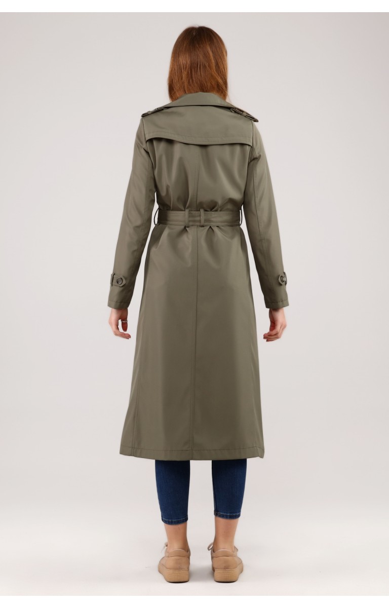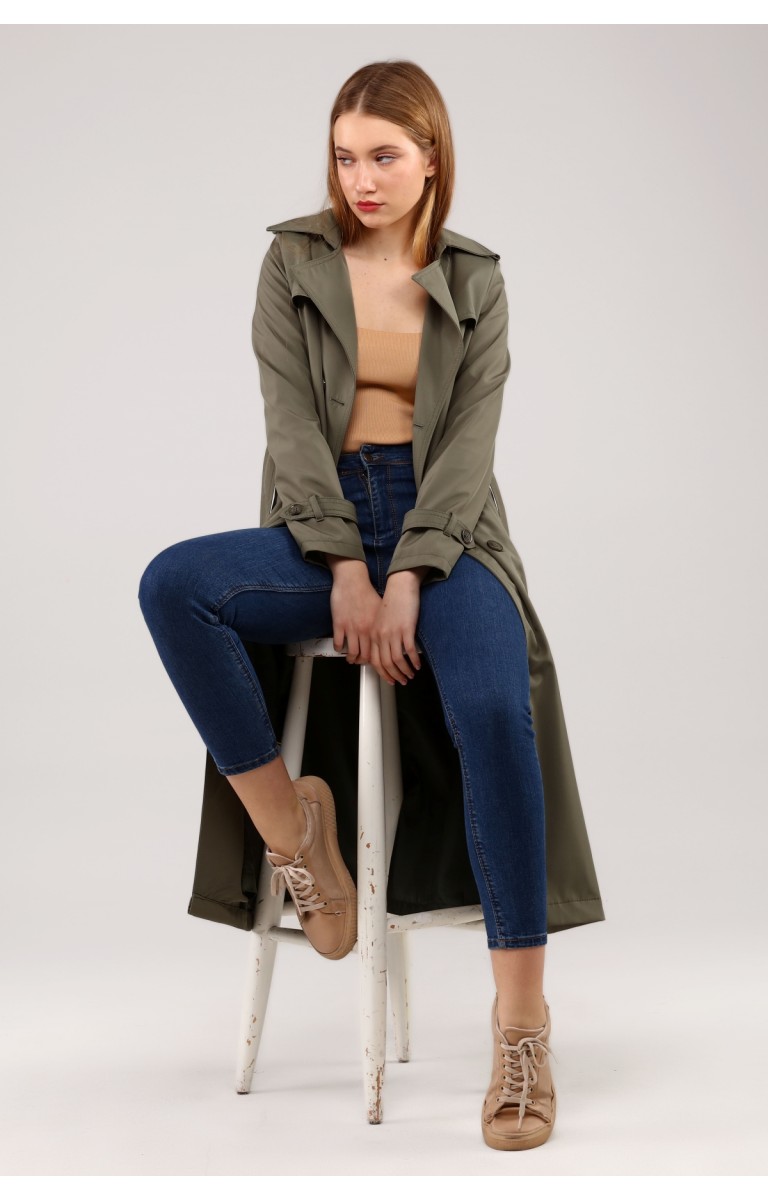 Kadın Astarlı Uzun Trençkot - HAKİ