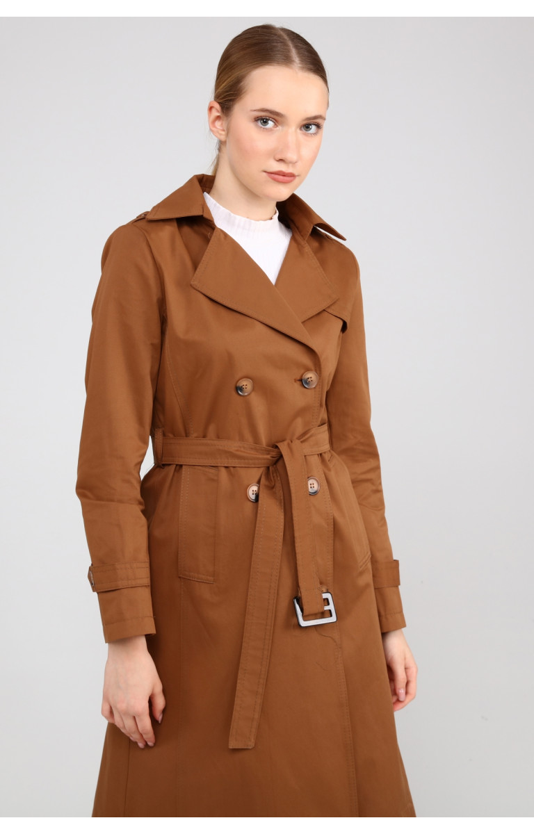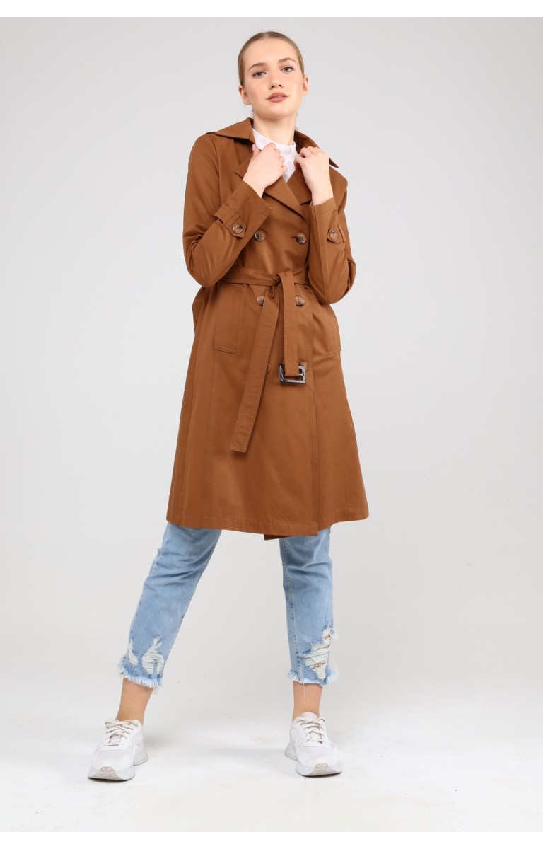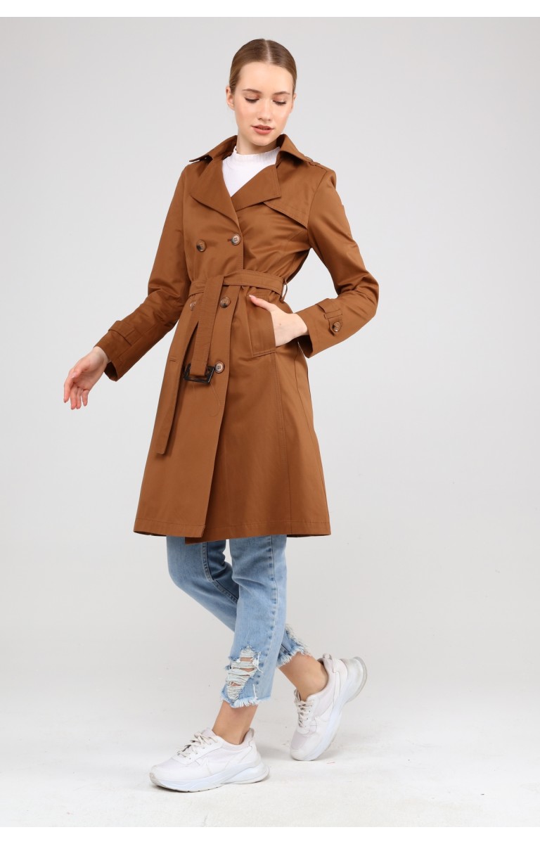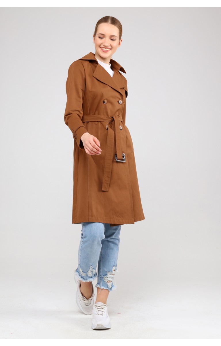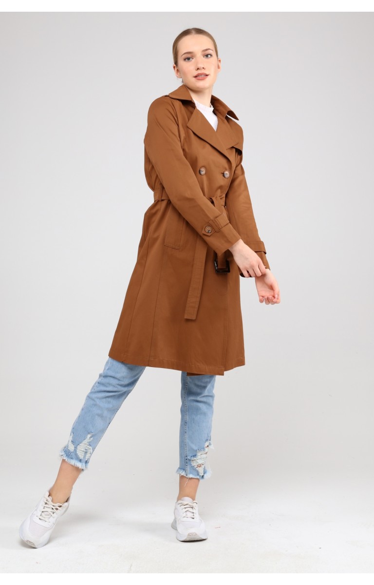 KADIN YAZLIK ORTA BOY ASTARSIZ TRENÇKOT- TABA