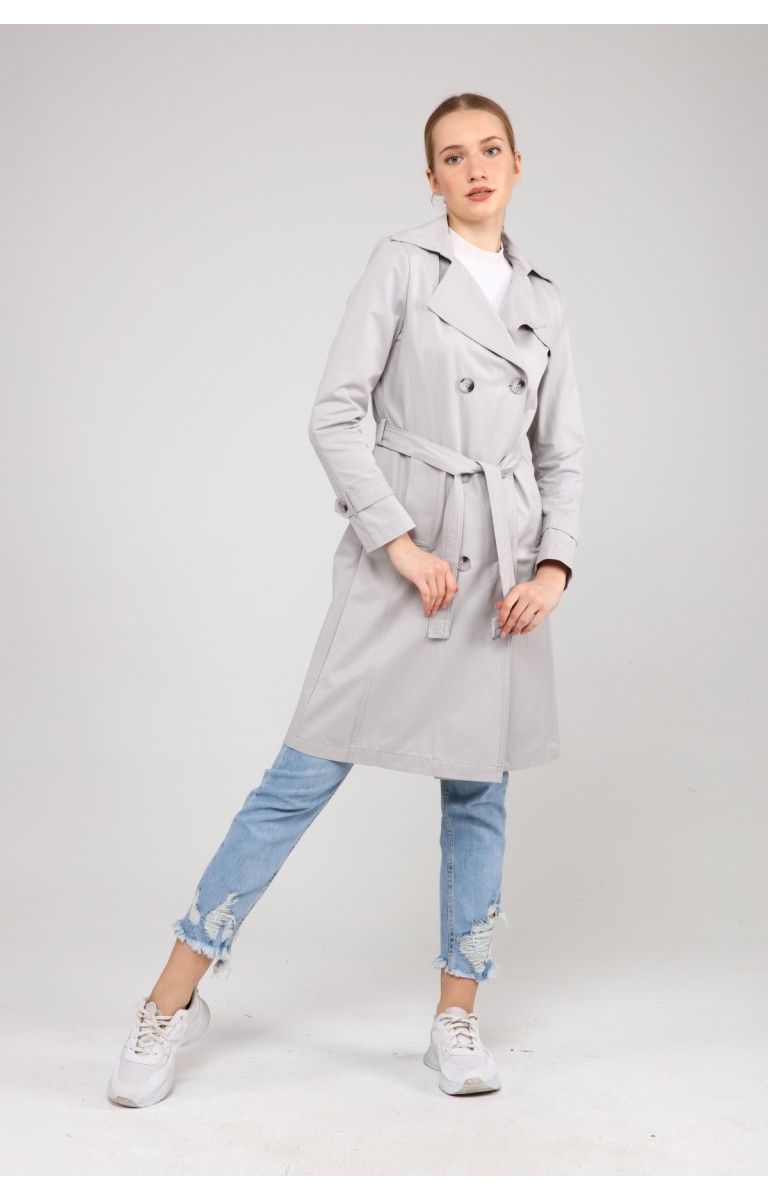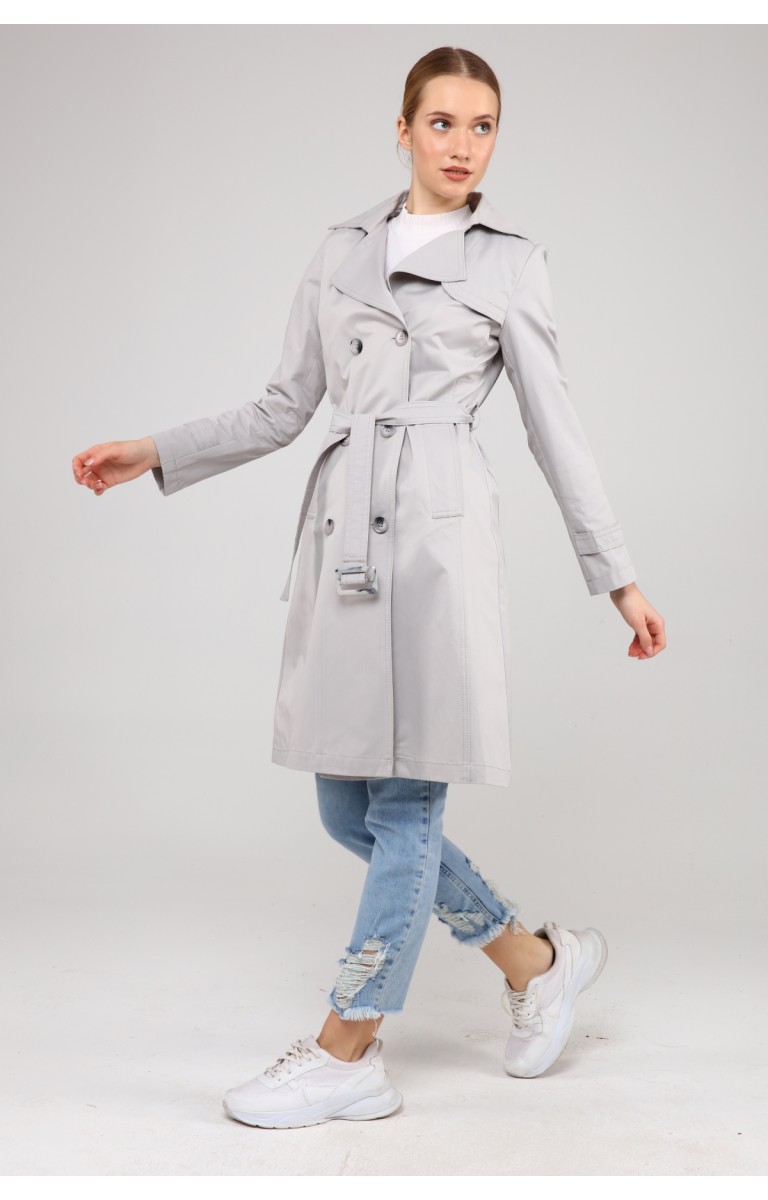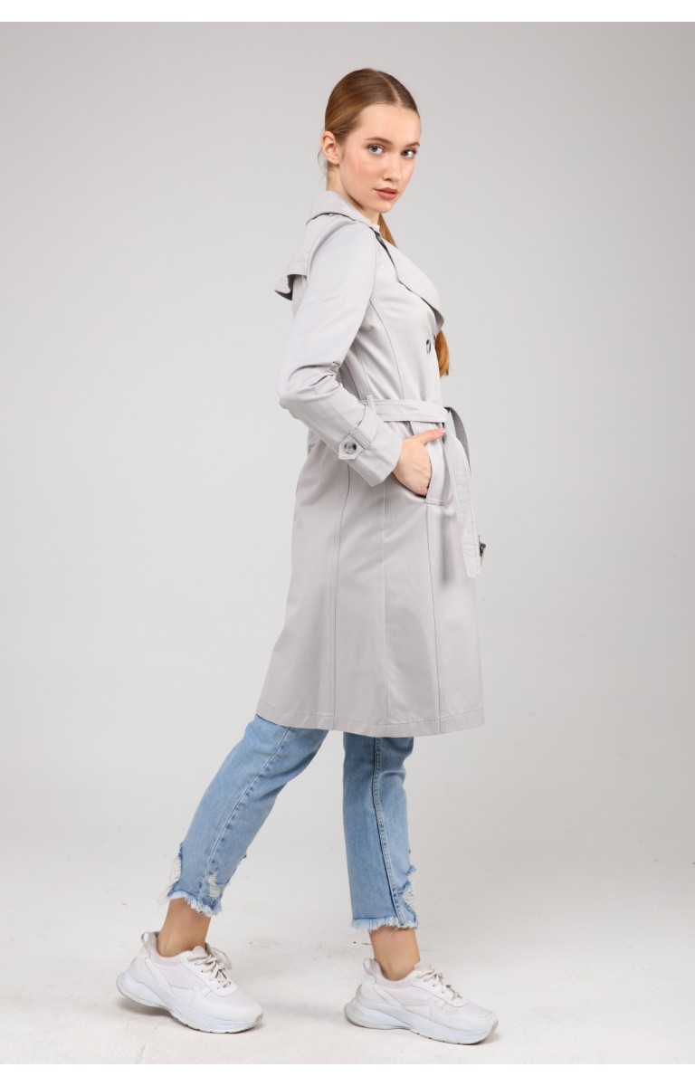 KADIN YAZLIK ORTA BOY ASTARSIZ TRENÇKOT- GRİ