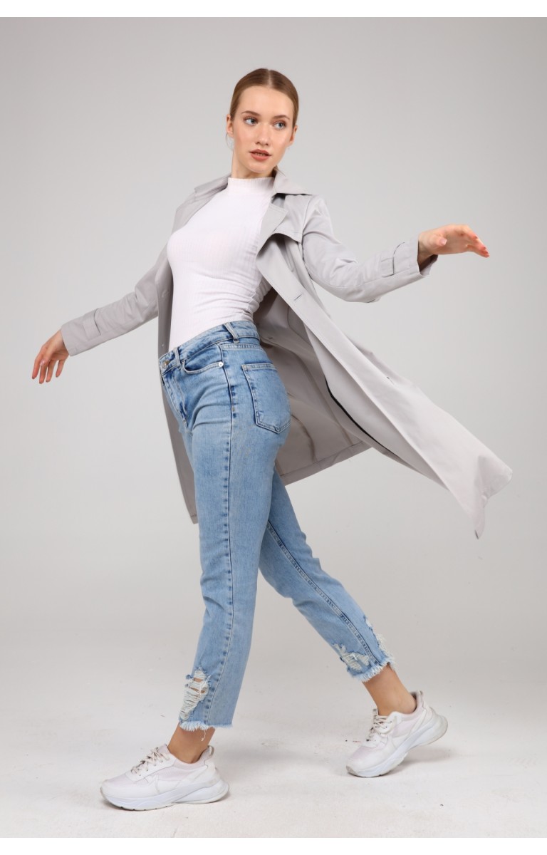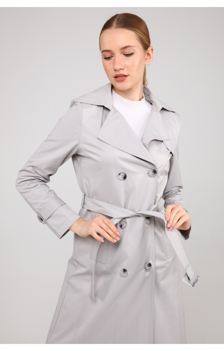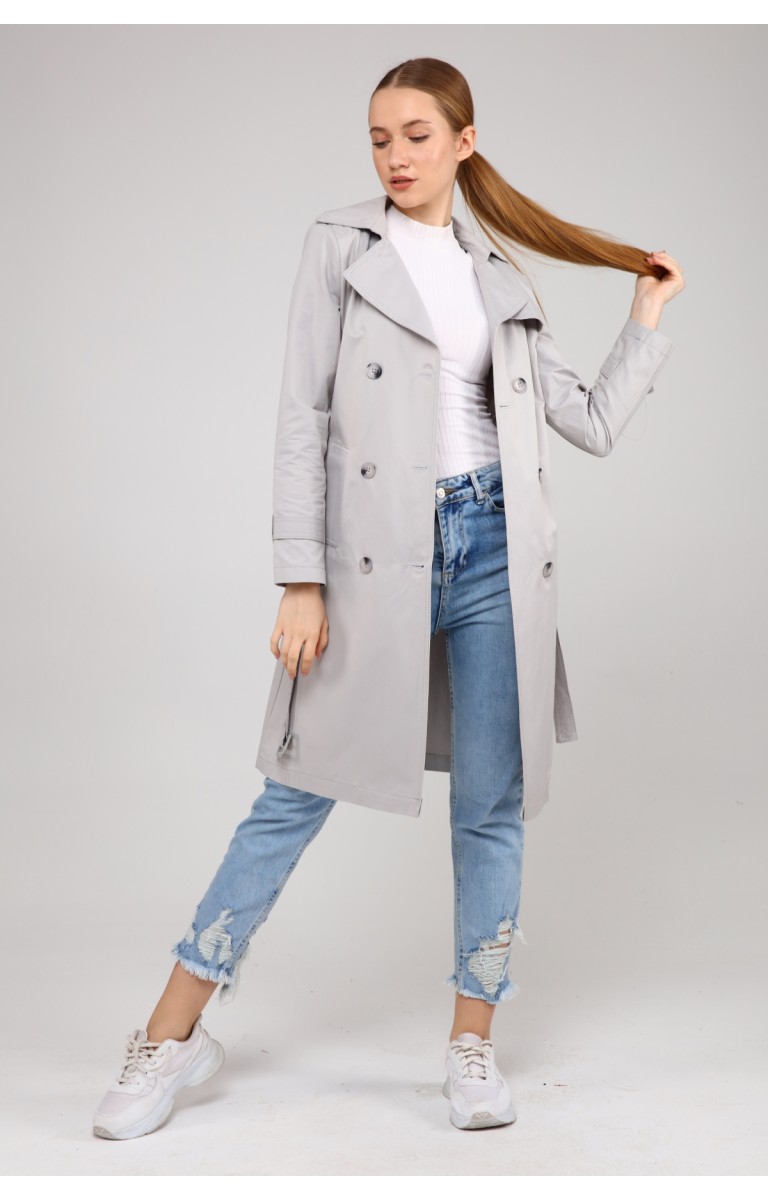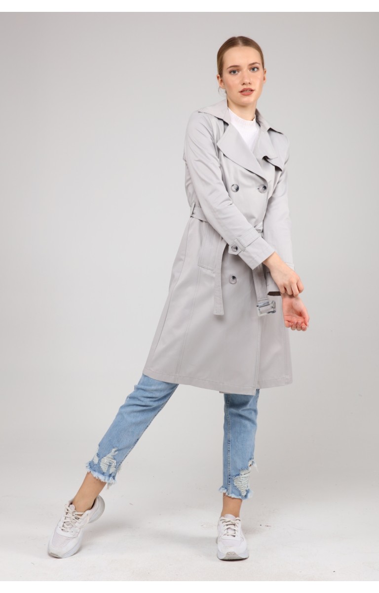 KADIN YAZLIK ORTA BOY ASTARSIZ TRENÇKOT- GRİ