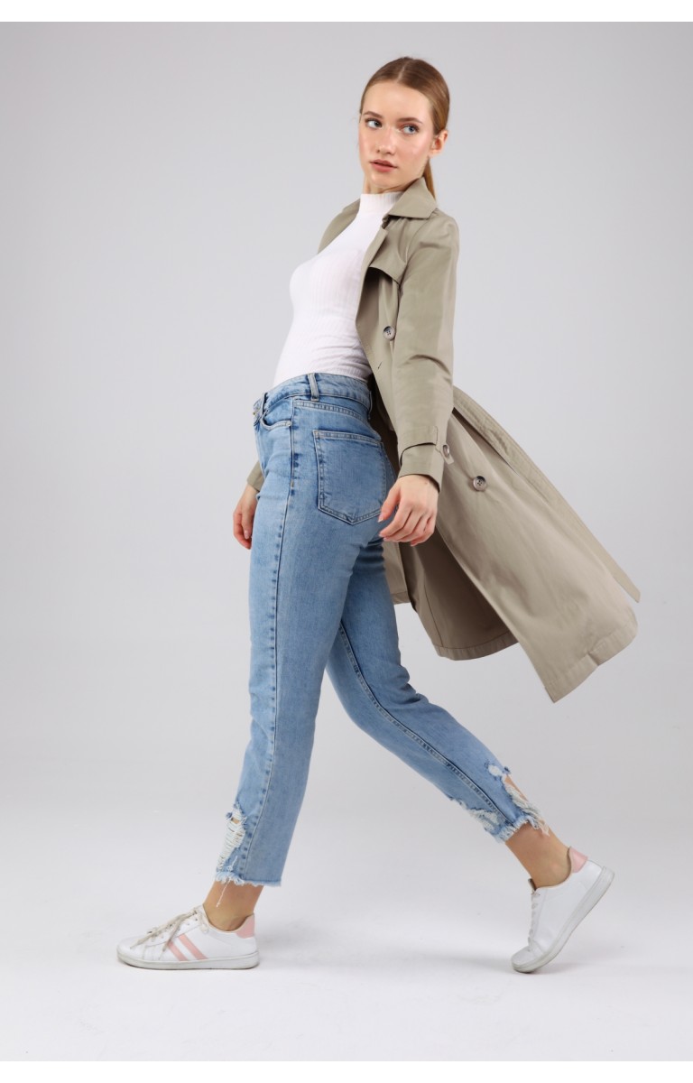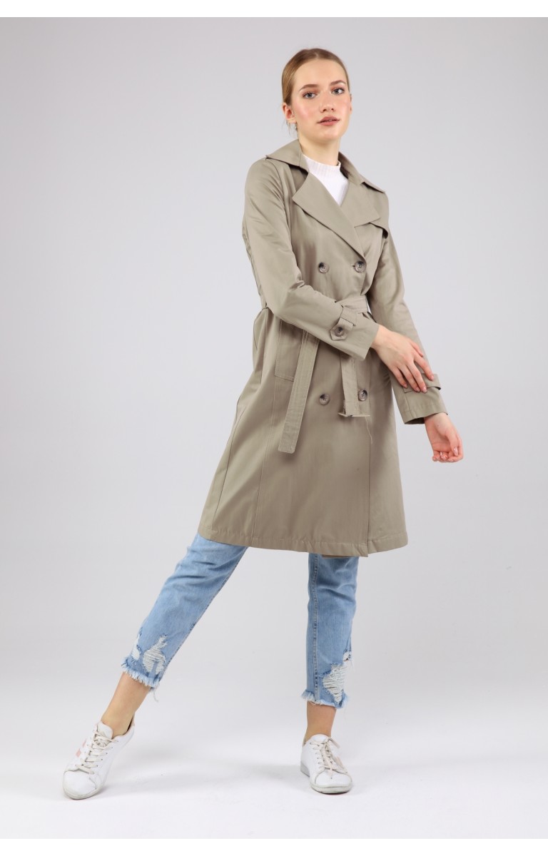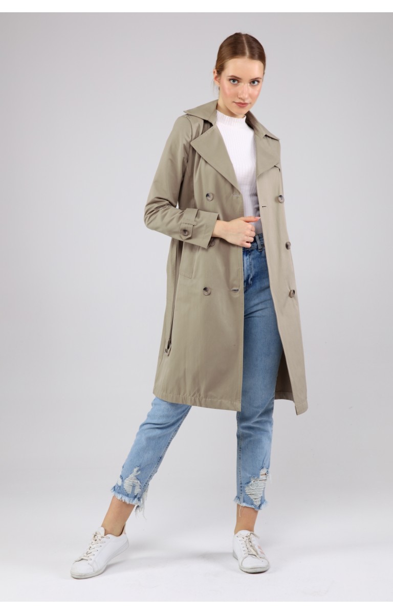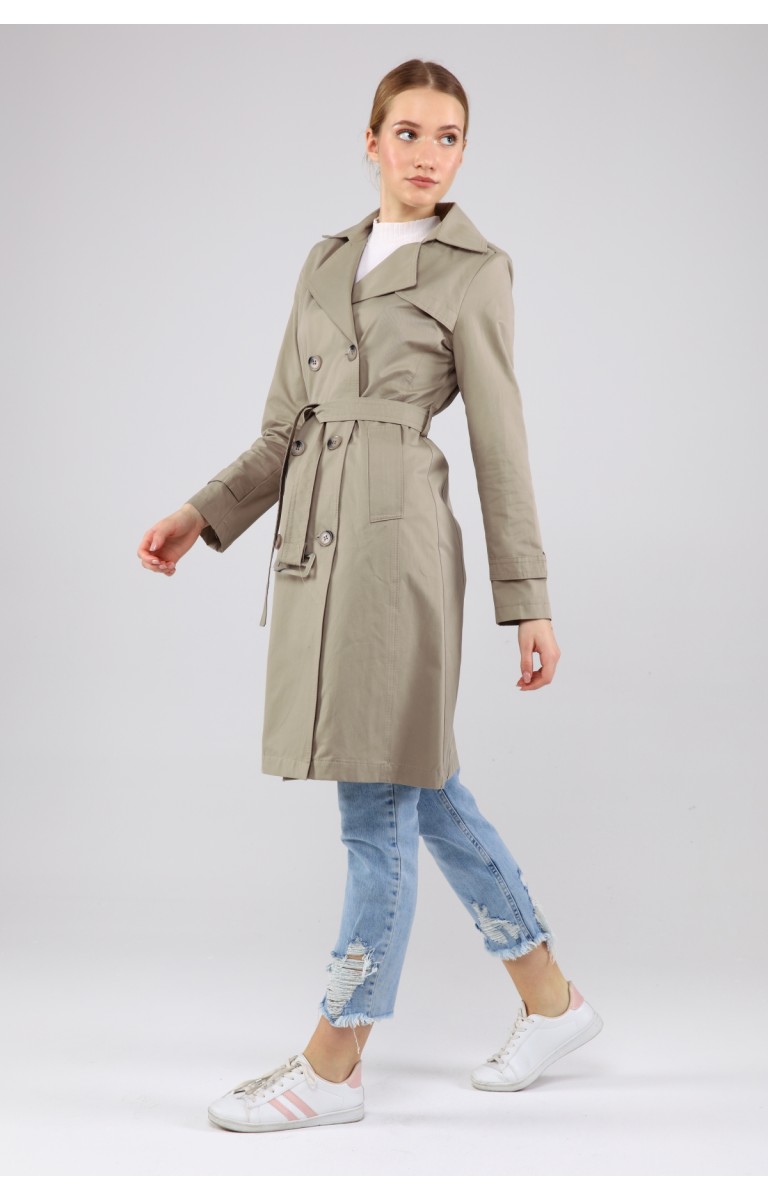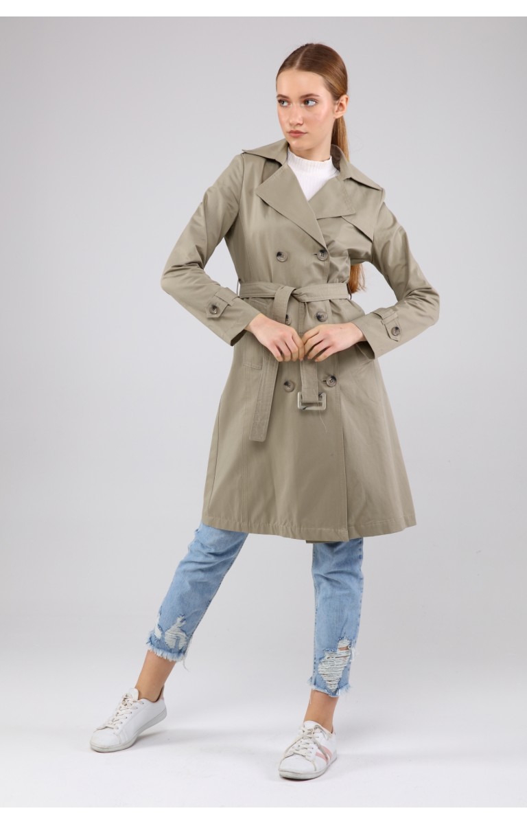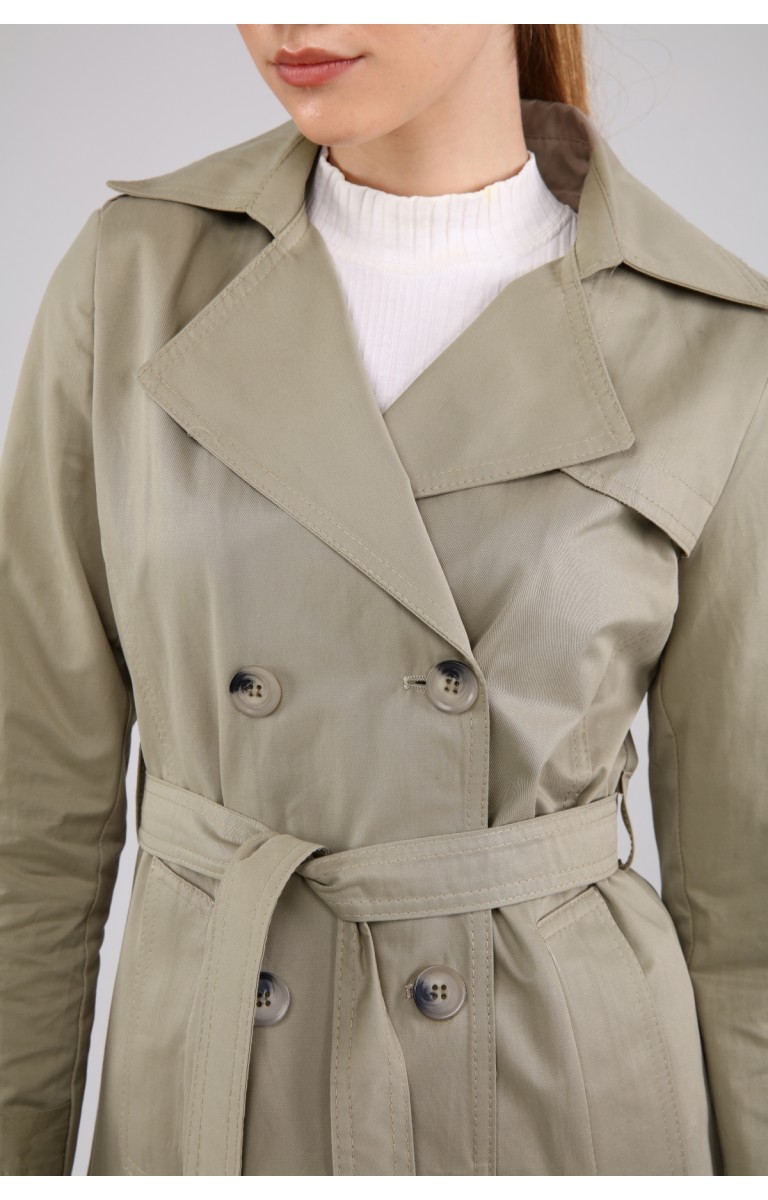 KADIN YAZLIK ORTA BOY ASTARSIZ TRENÇKOT- OLİVE