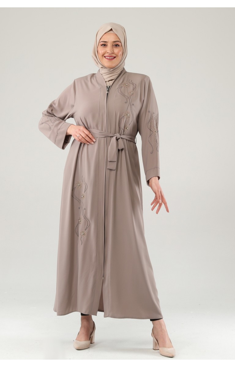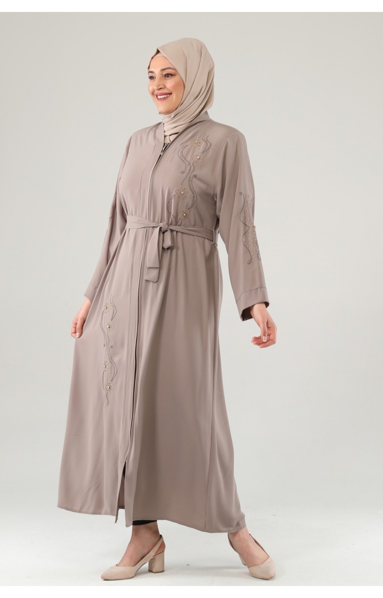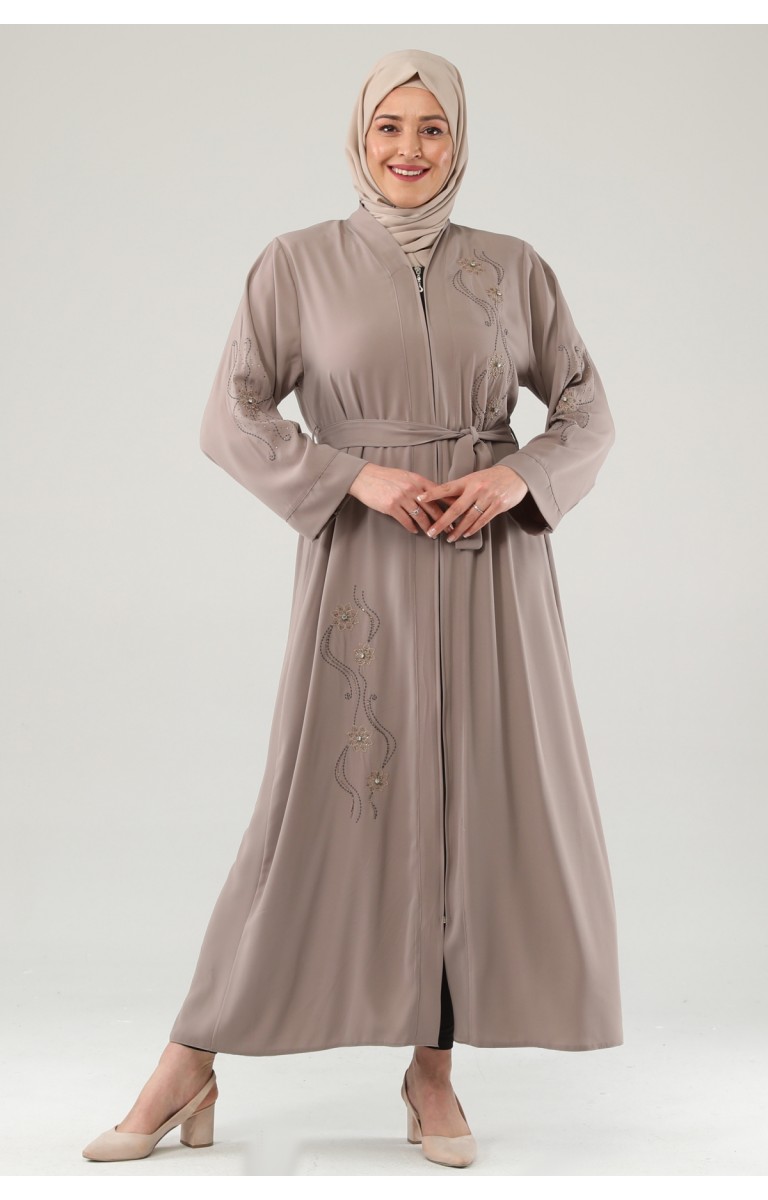 NAKIŞLI TAŞLI FERMUARLI FERACE - BEJ