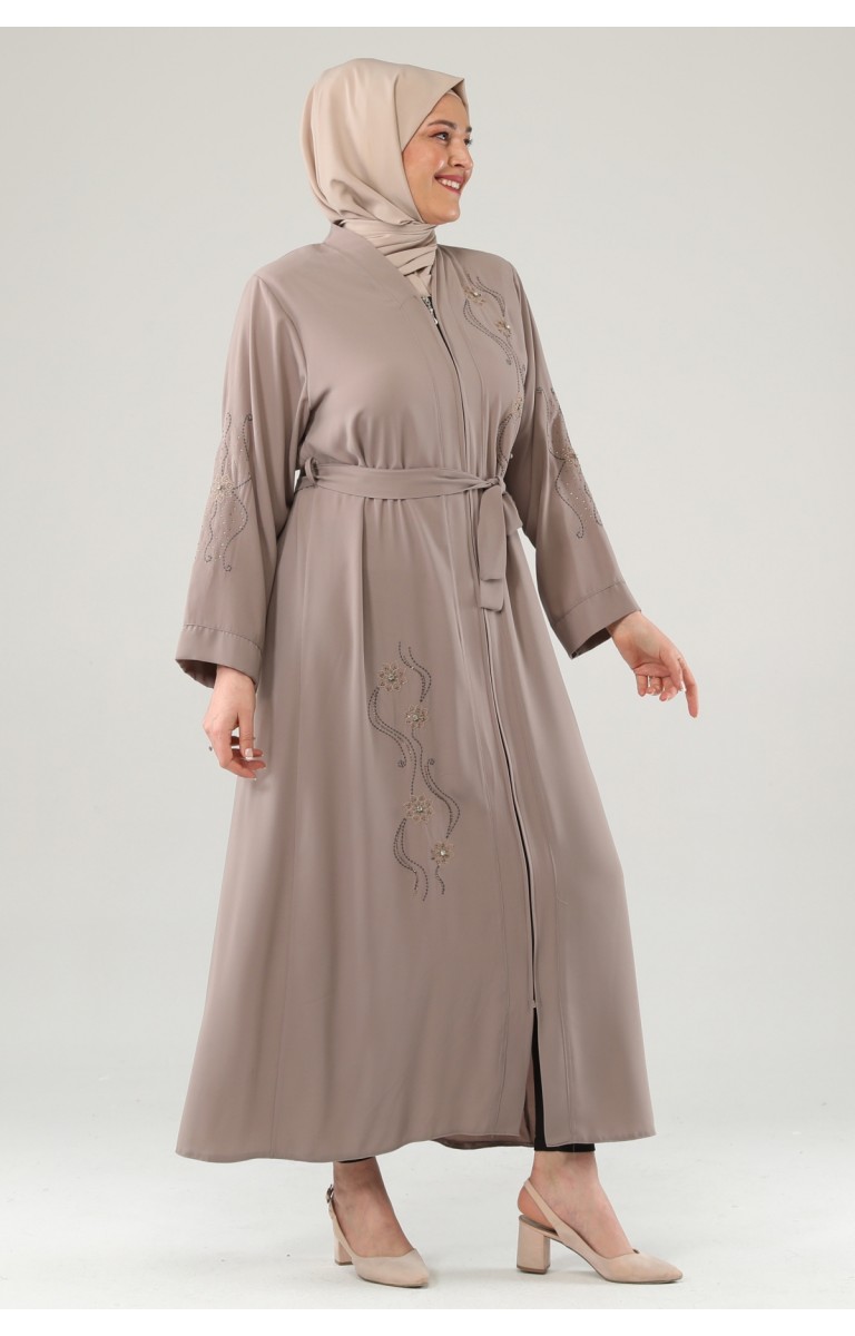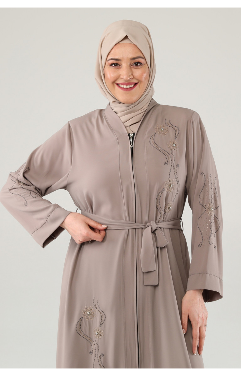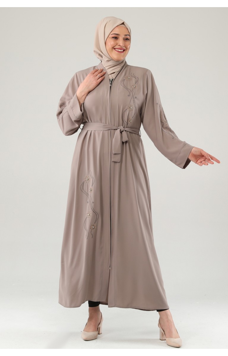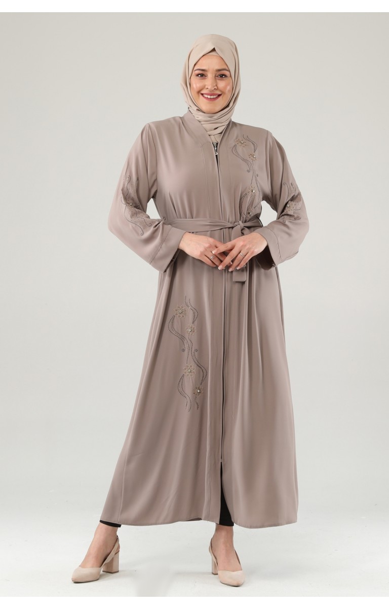 NAKIŞLI TAŞLI FERMUARLI FERACE - BEJ