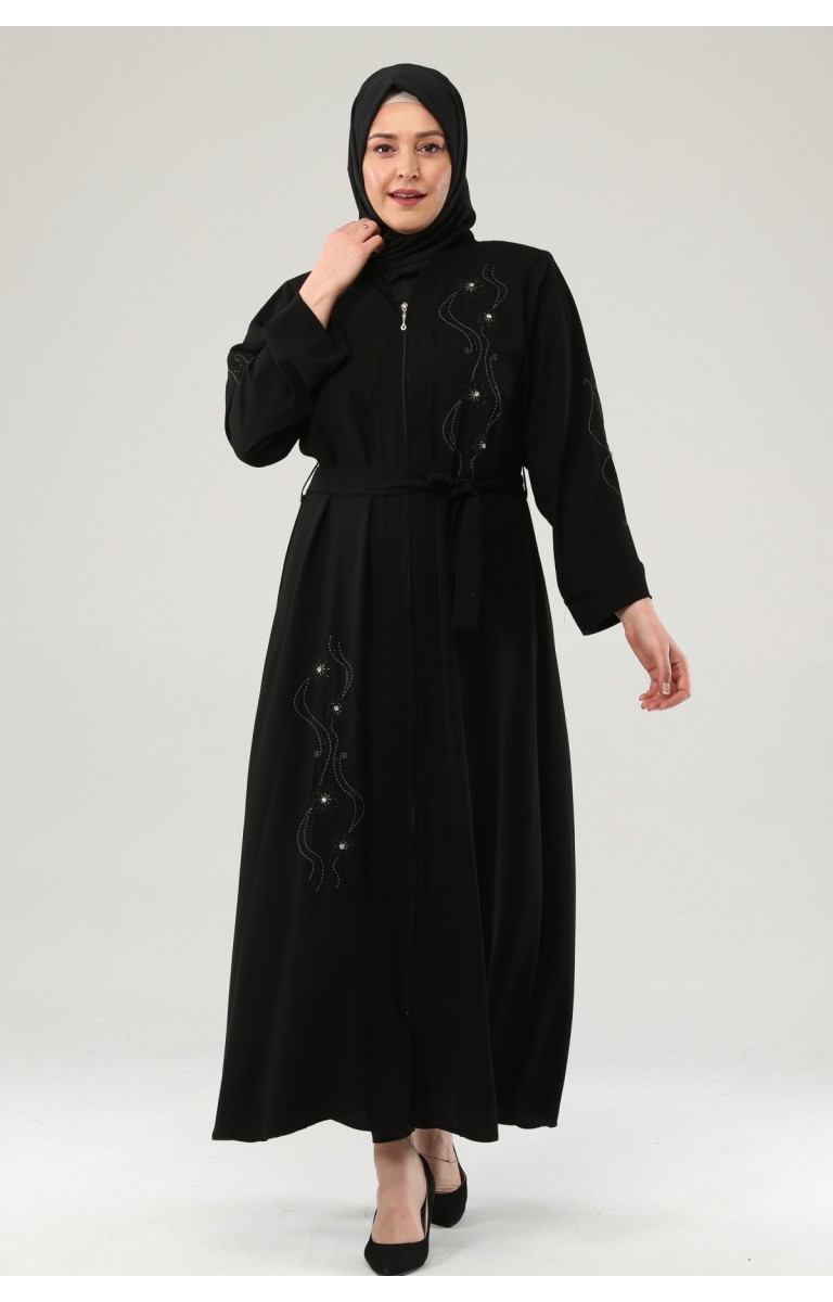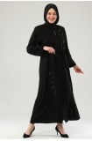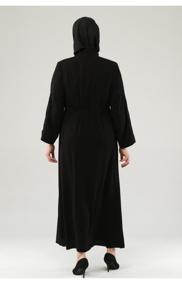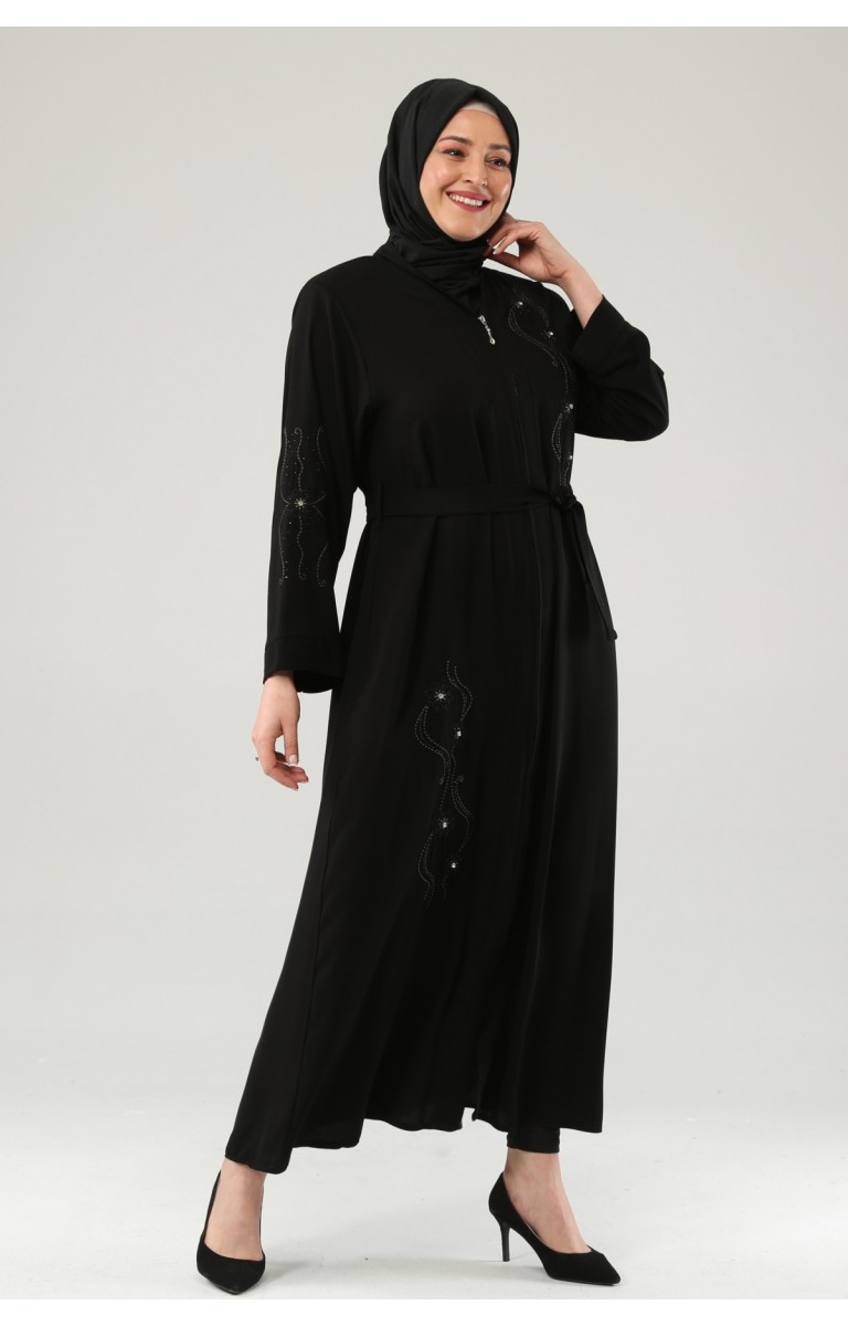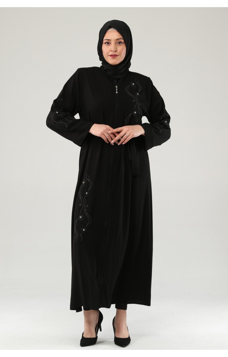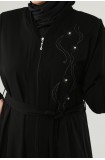 NAKIŞLI TAŞLI FERMUARLI FERACE - SİYAH