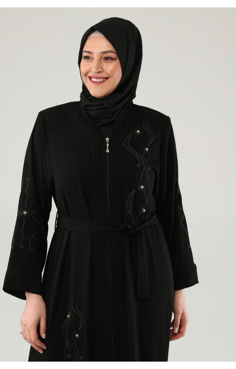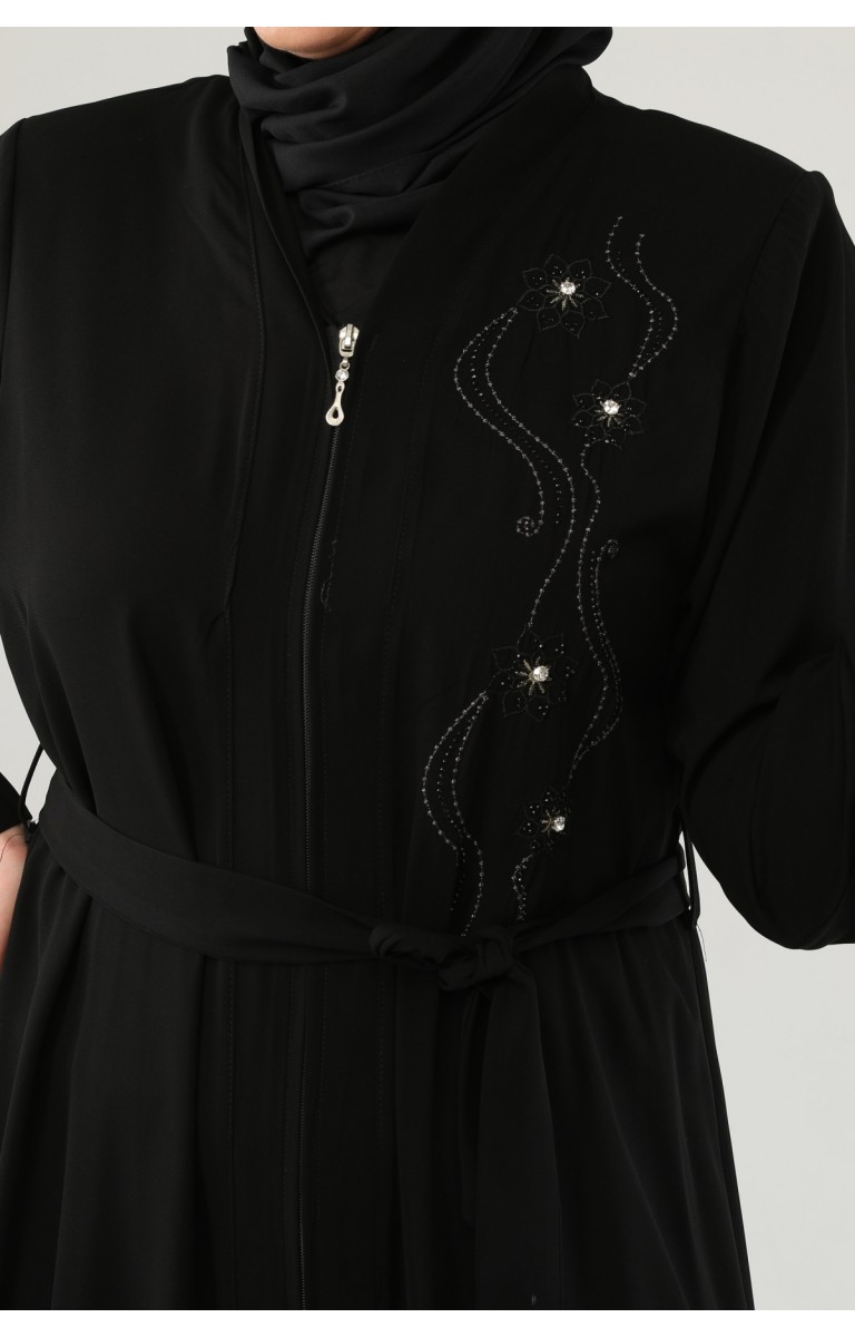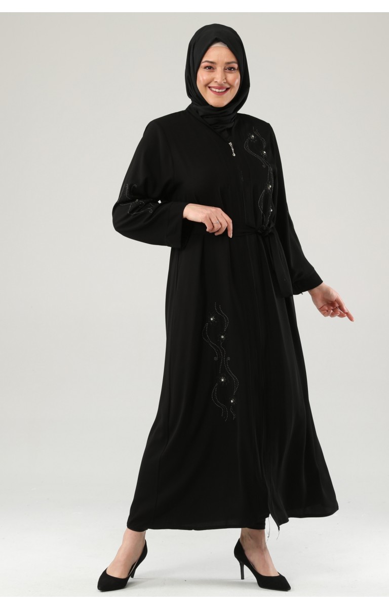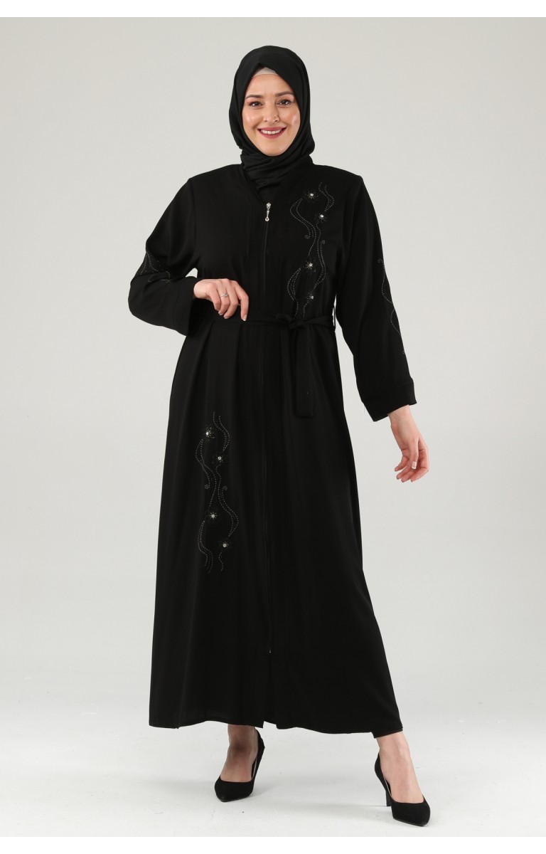 NAKIŞLI TAŞLI FERMUARLI FERACE - SİYAH