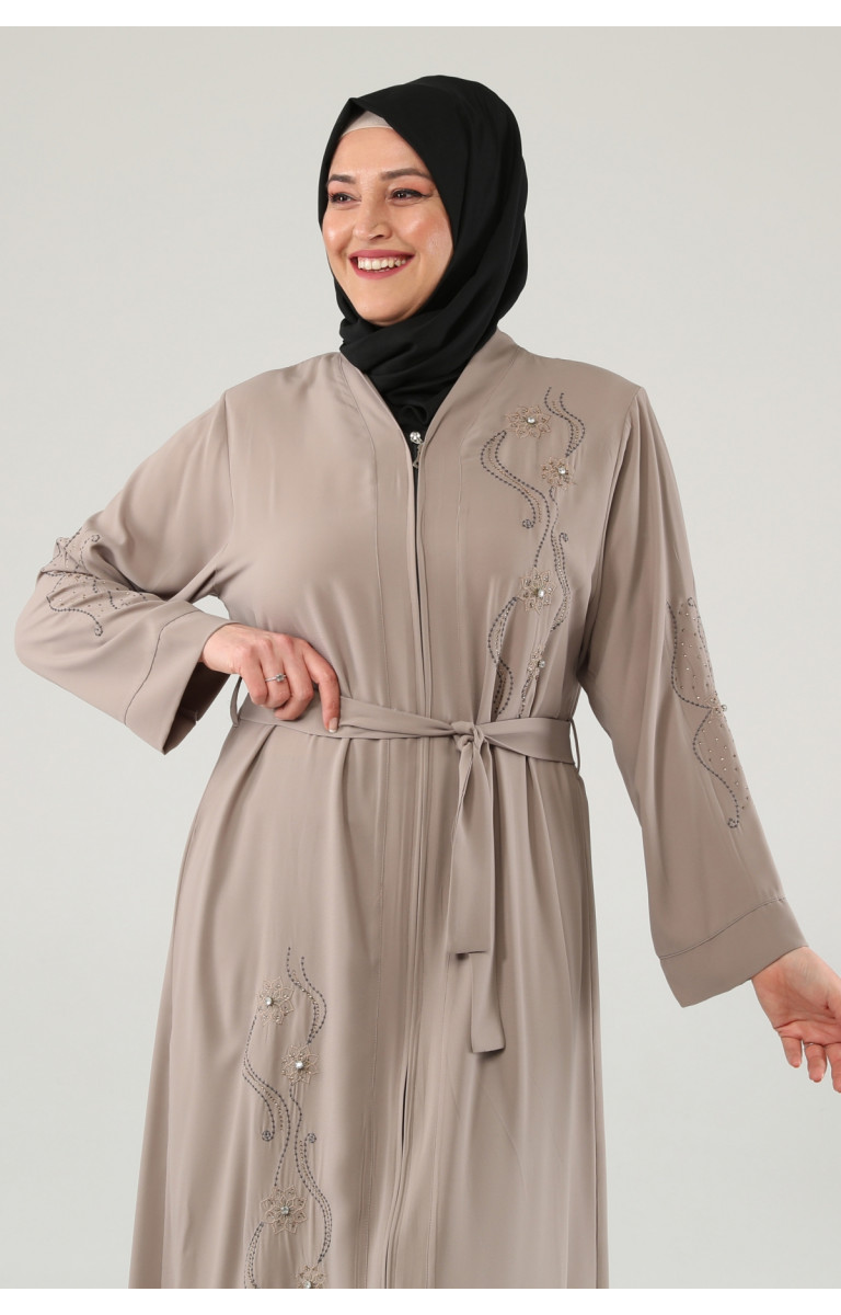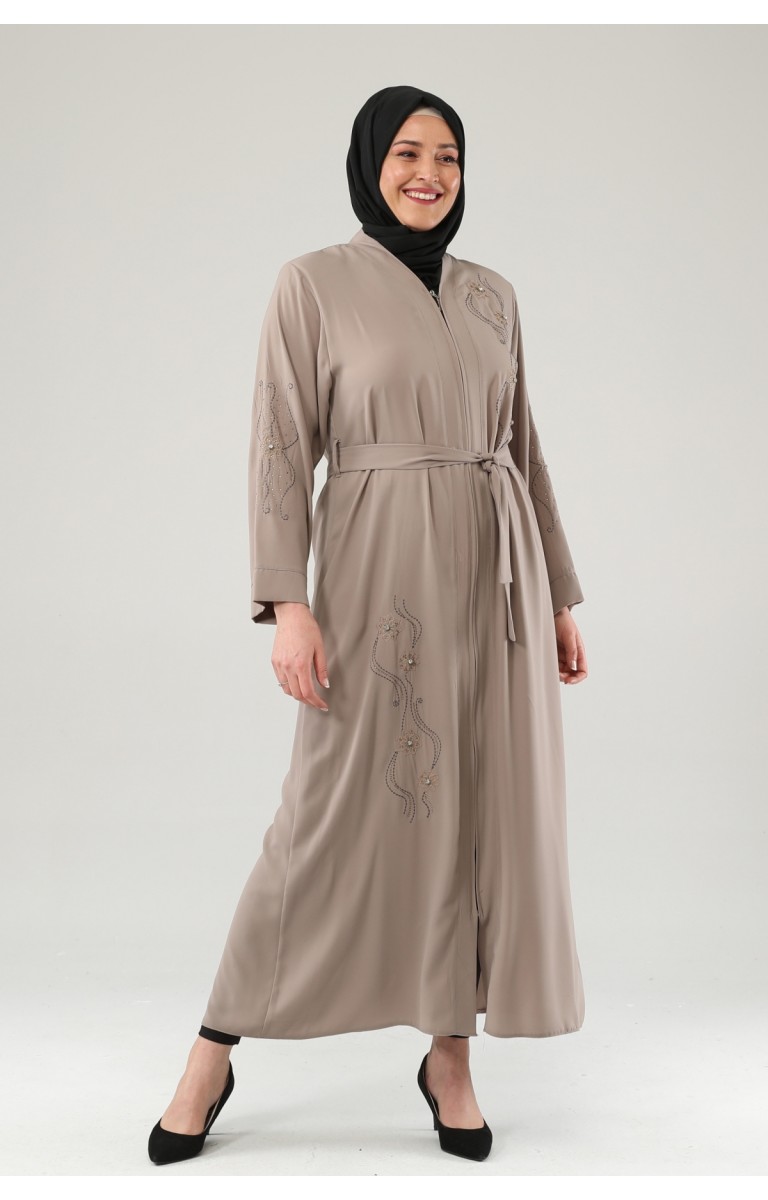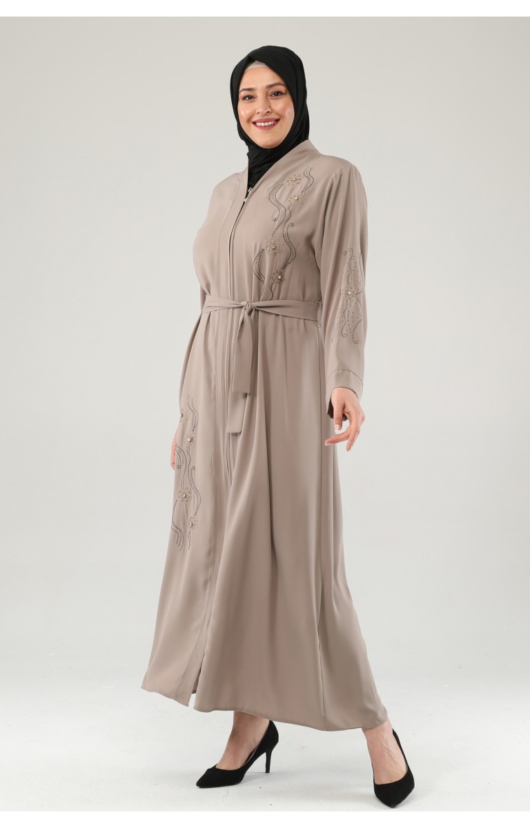 NAKIŞLI TAŞLI FERMUARLI FERACE - SÜTLÜ KAHVE