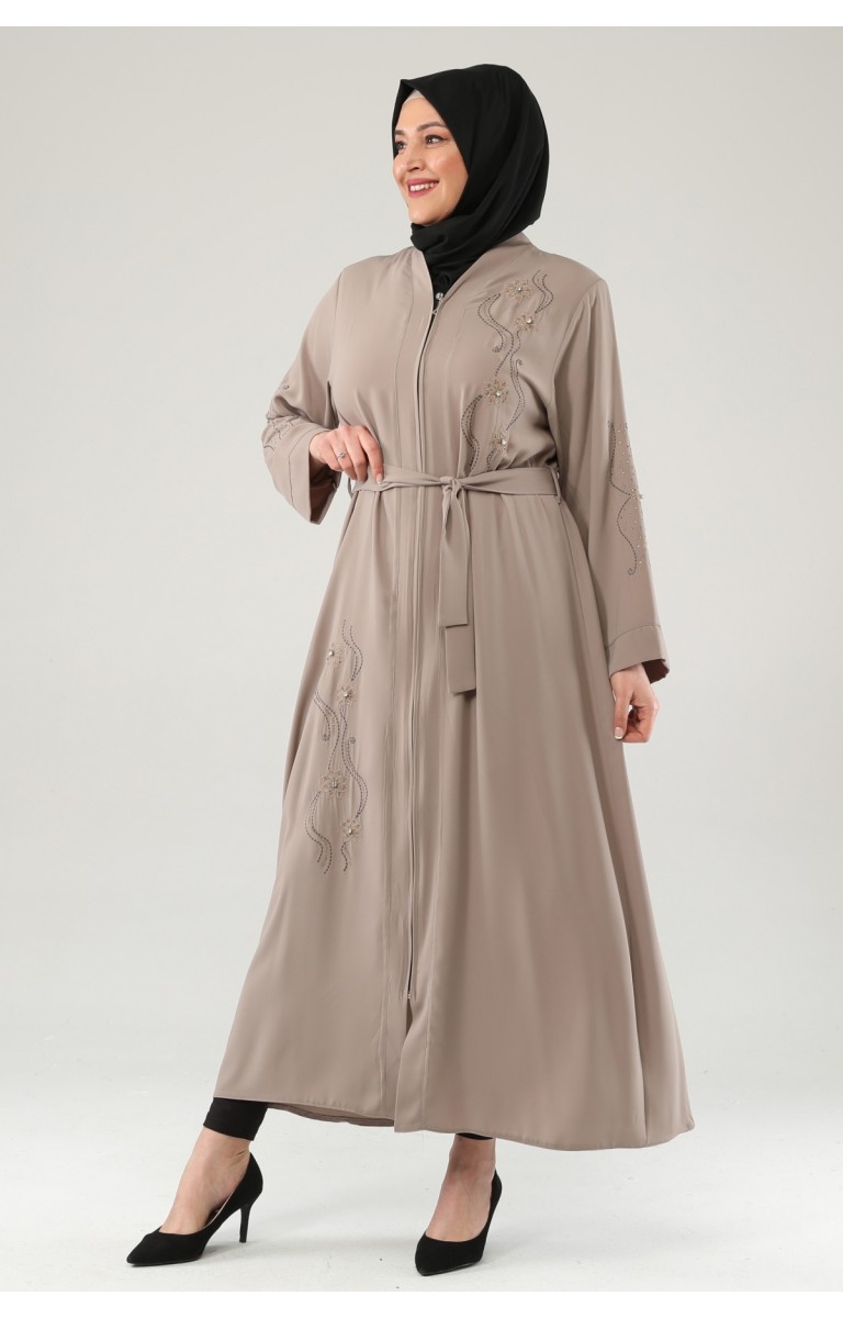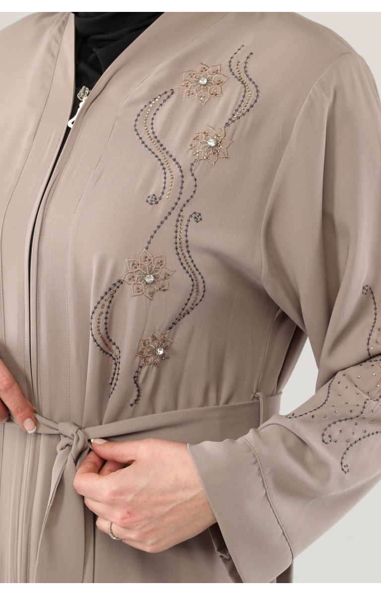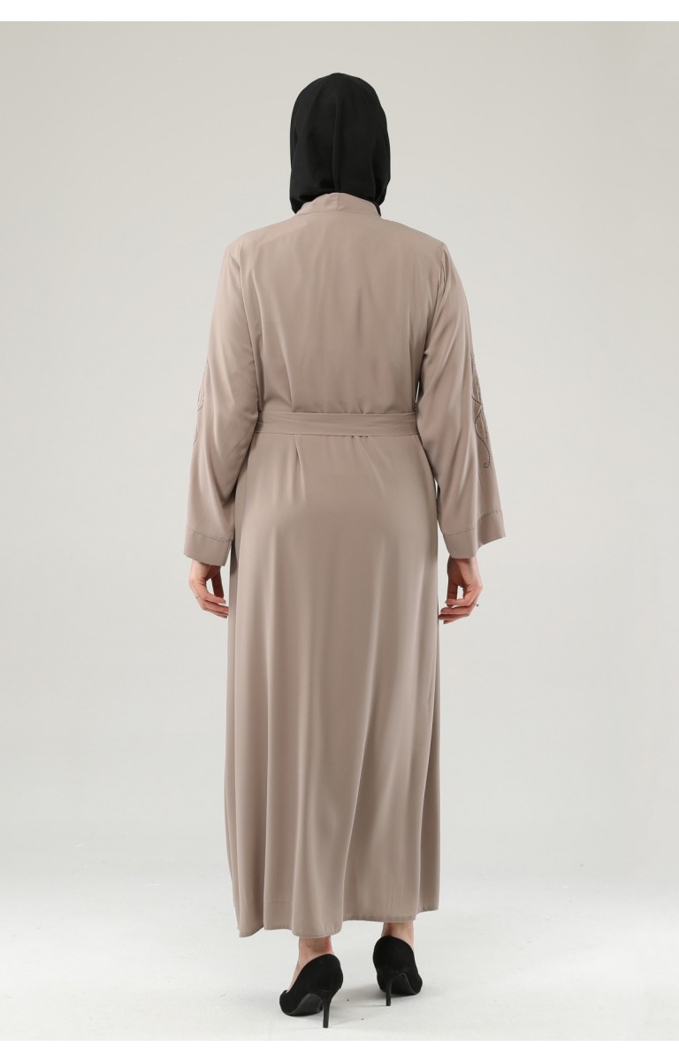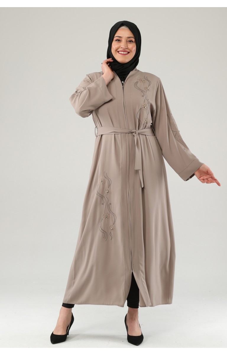 NAKIŞLI TAŞLI FERMUARLI FERACE - SÜTLÜ KAHVE