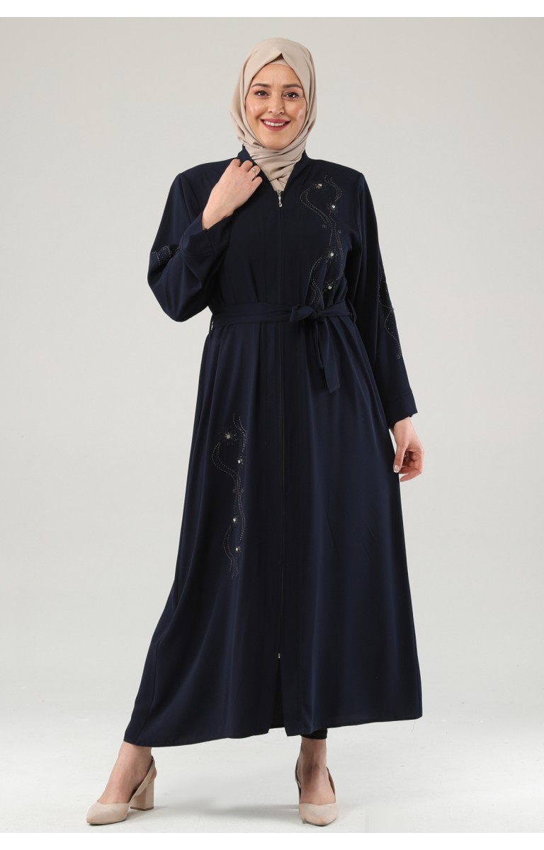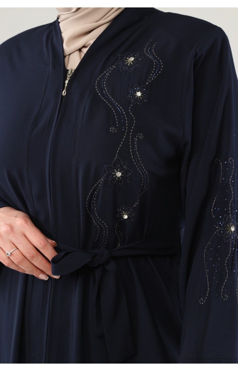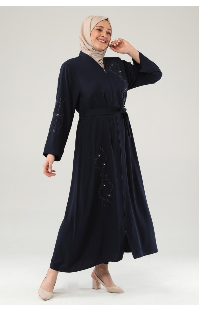 NAKIŞLI TAŞLI FERMUARLI FERACE - LACİVERT
