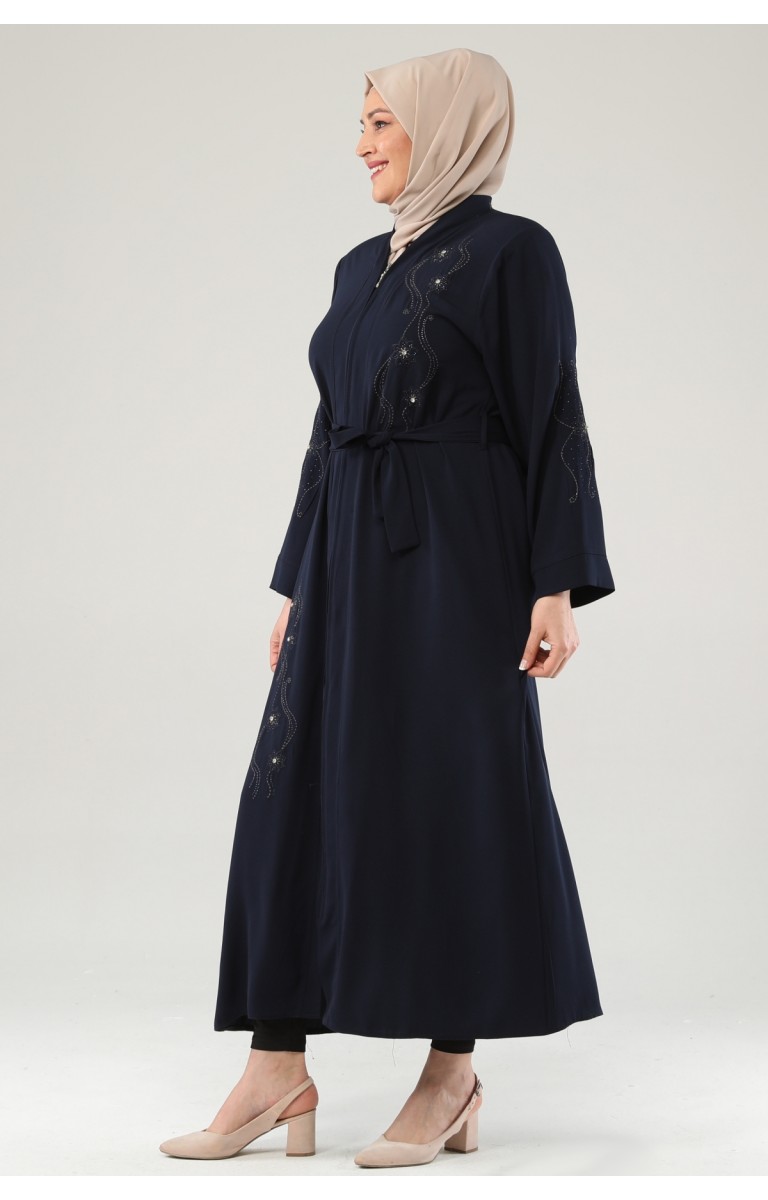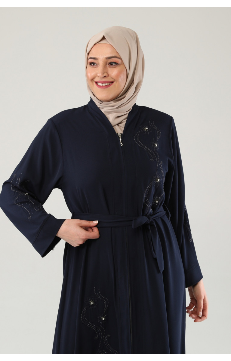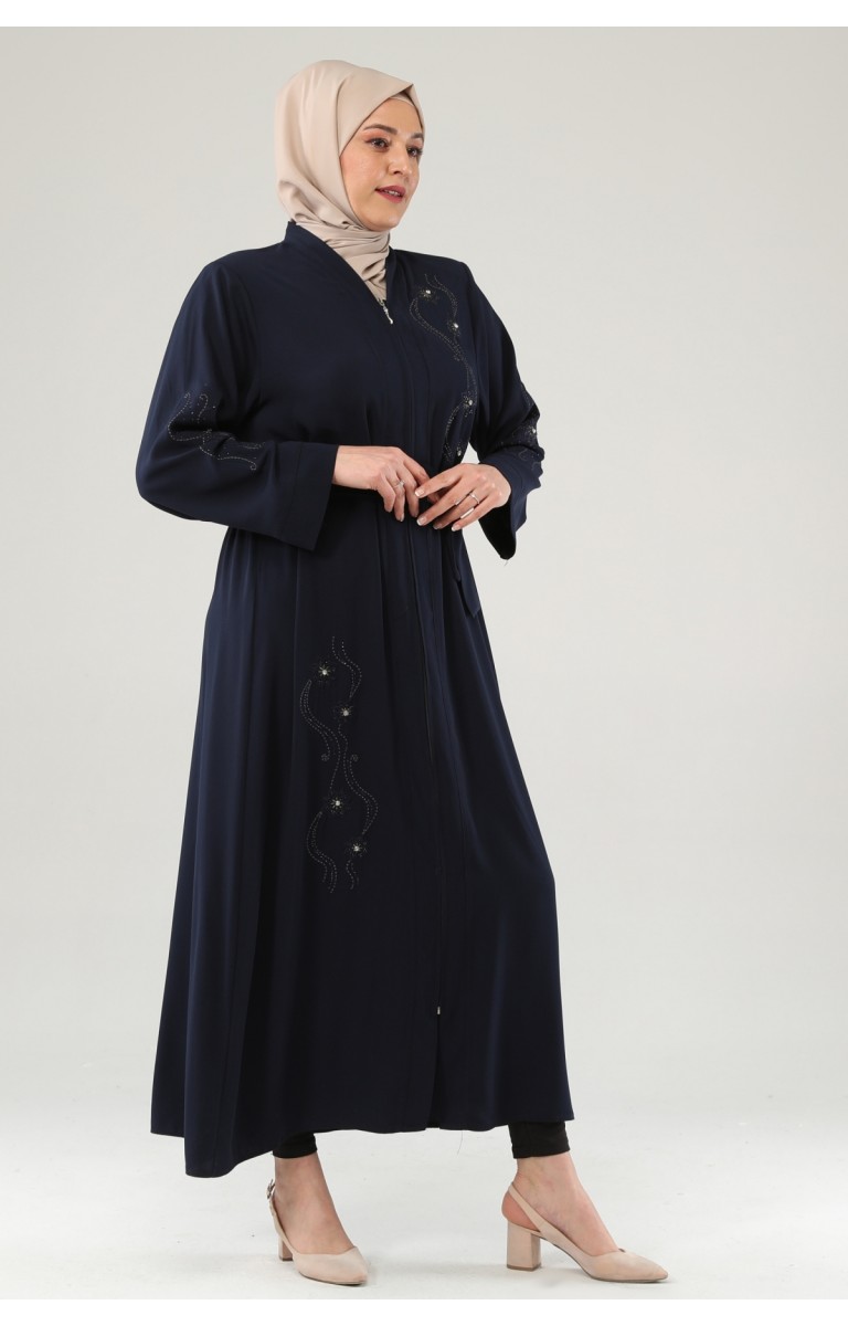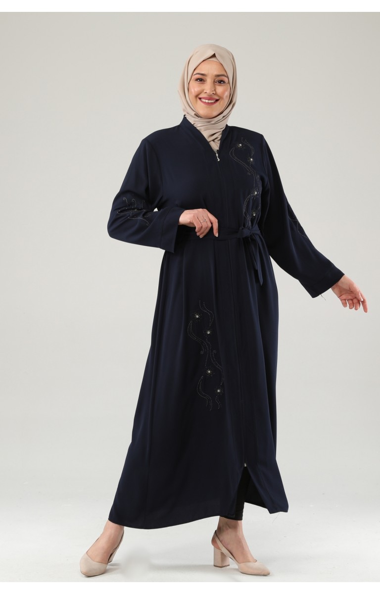 NAKIŞLI TAŞLI FERMUARLI FERACE - LACİVERT