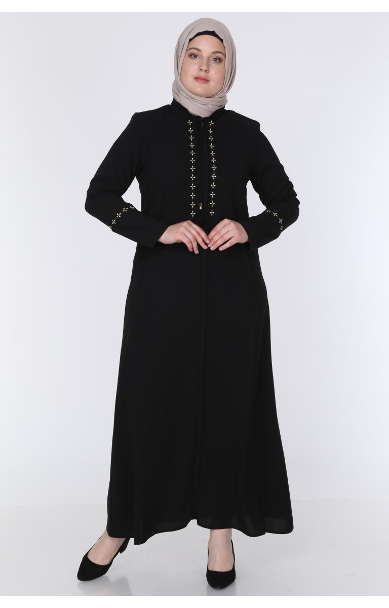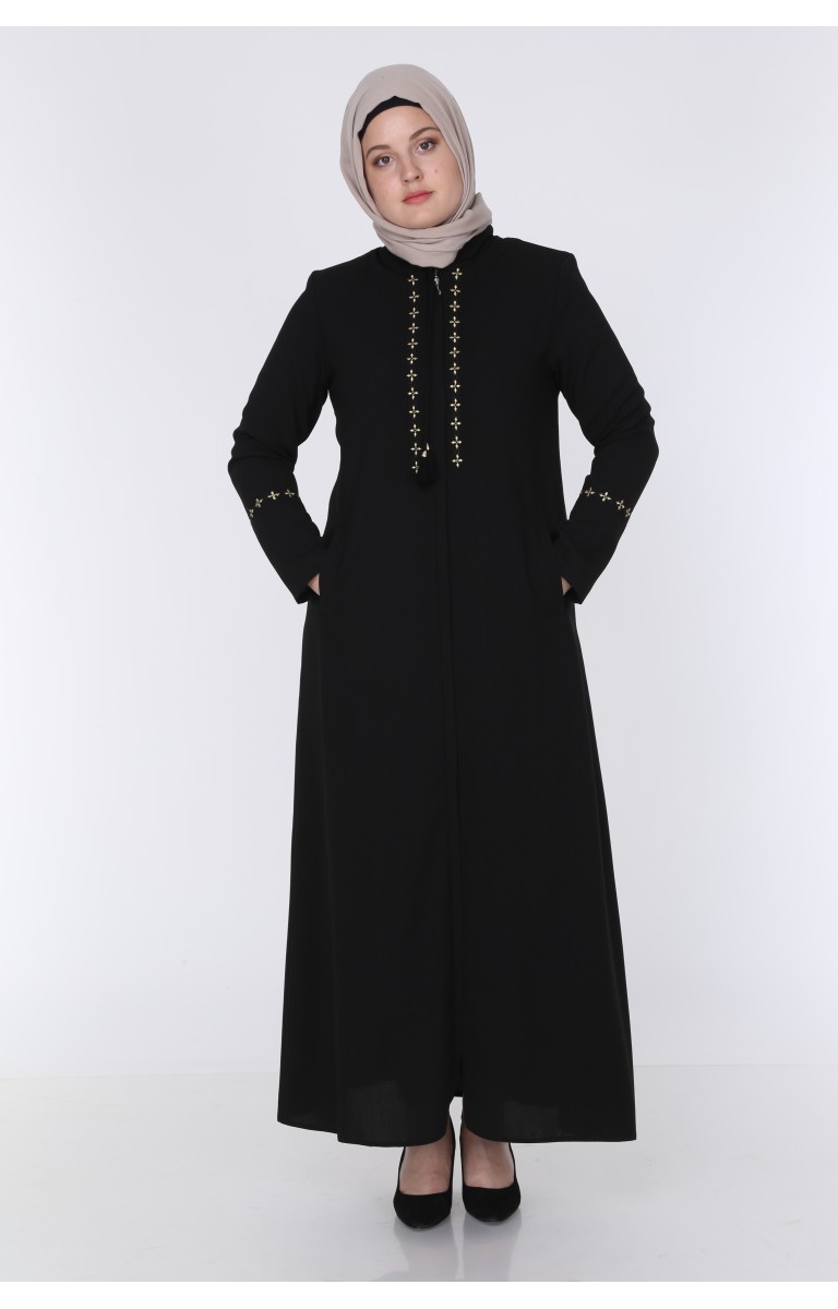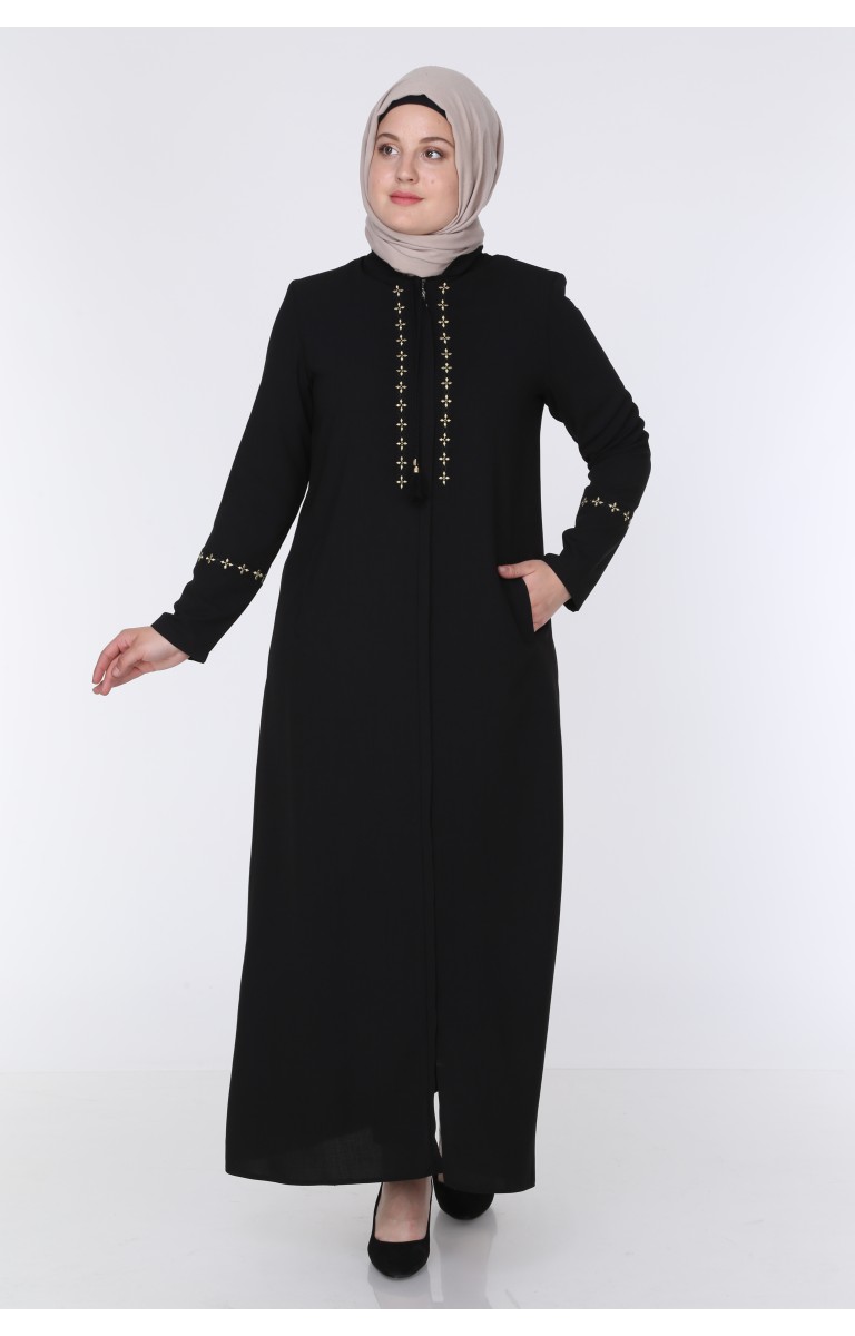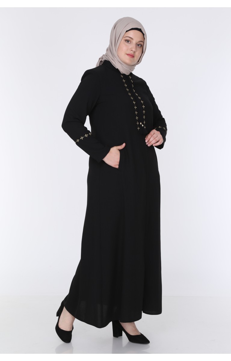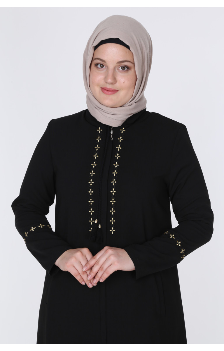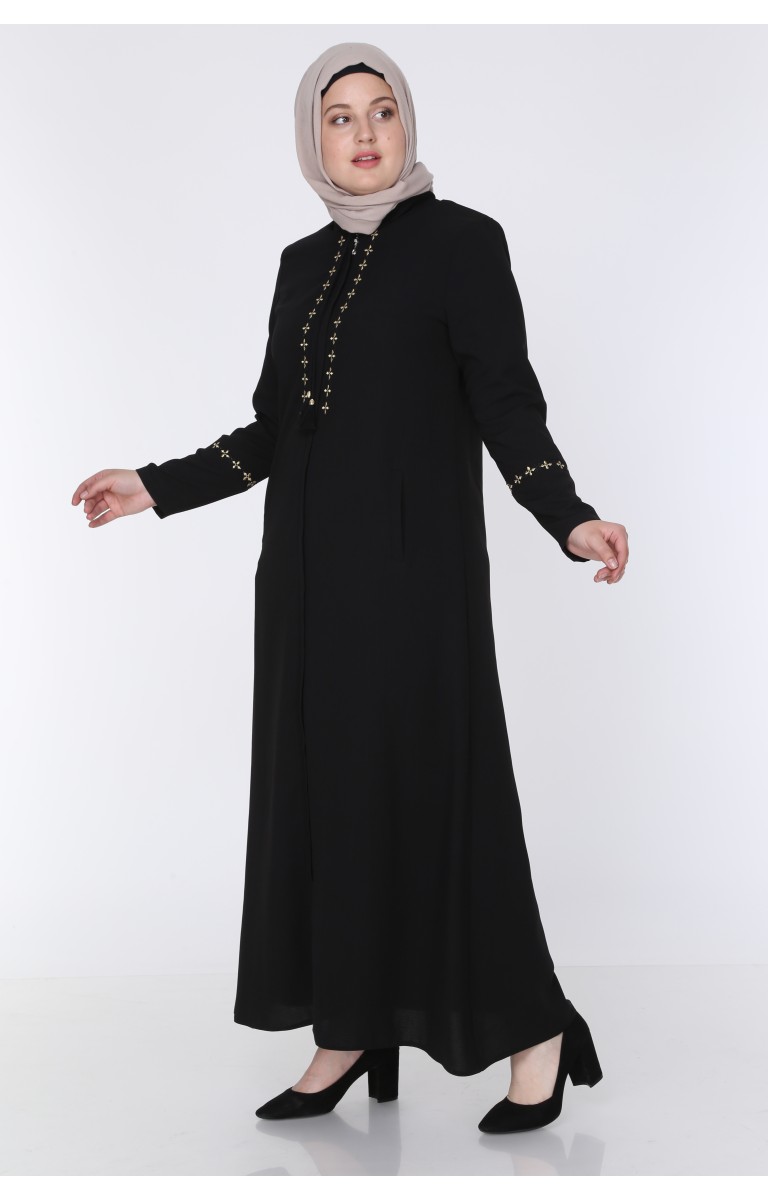 JAMİLA NAKIŞLI ELİT KETEN YAZLIK FERACE - SİYAH