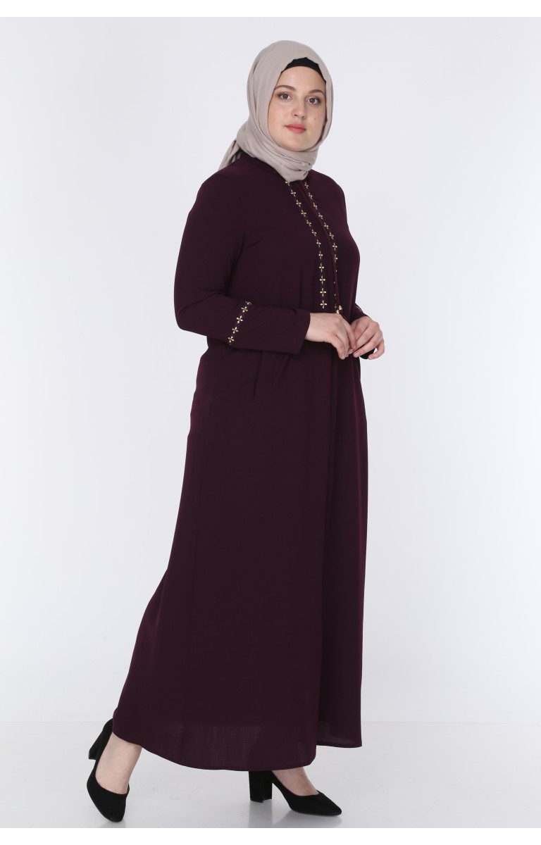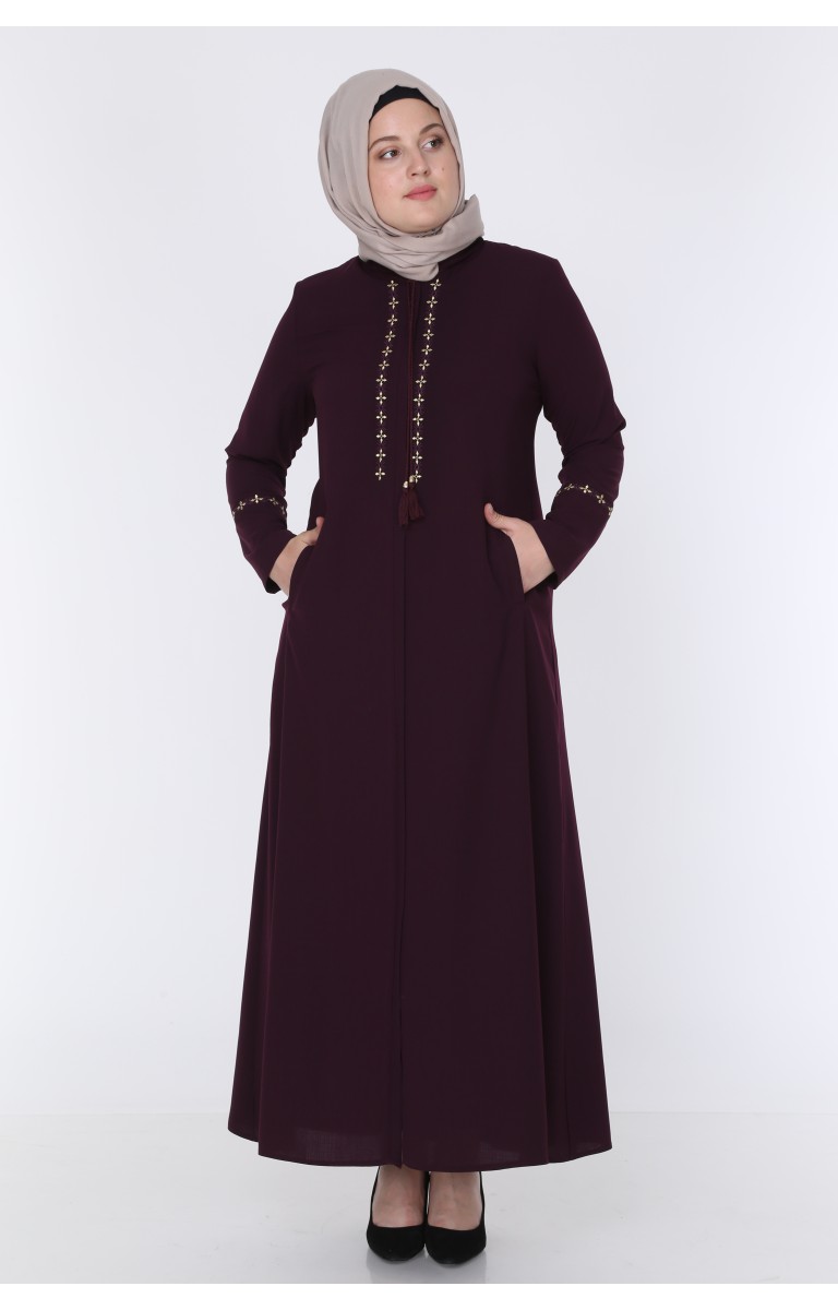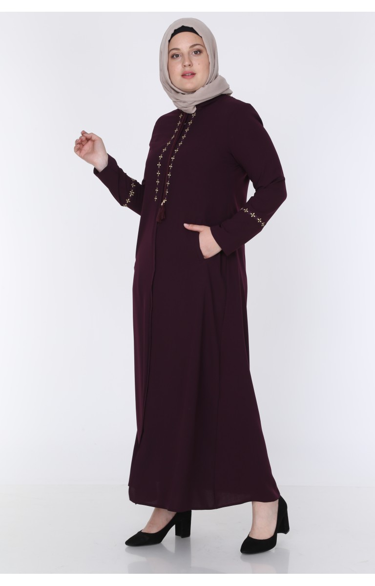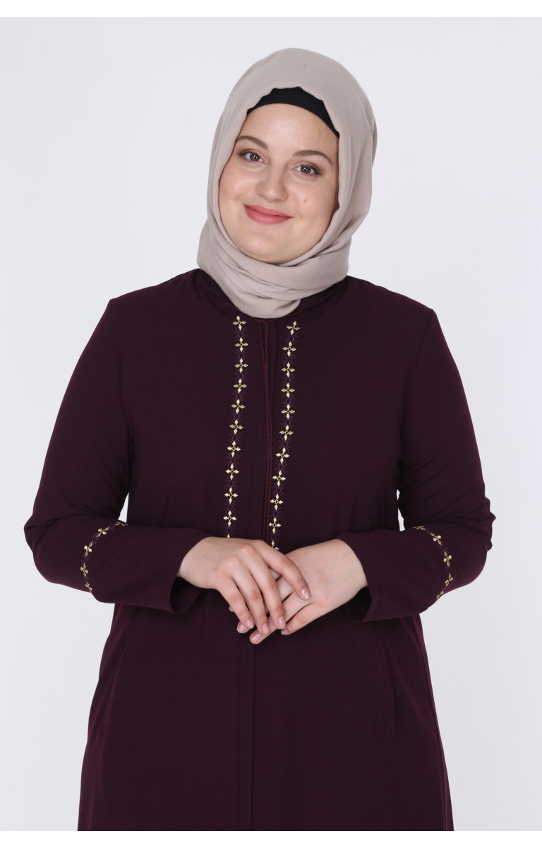 JAMİLA NAKIŞLI ELİT KETEN YAZLIK FERACE - MÜRDÜM