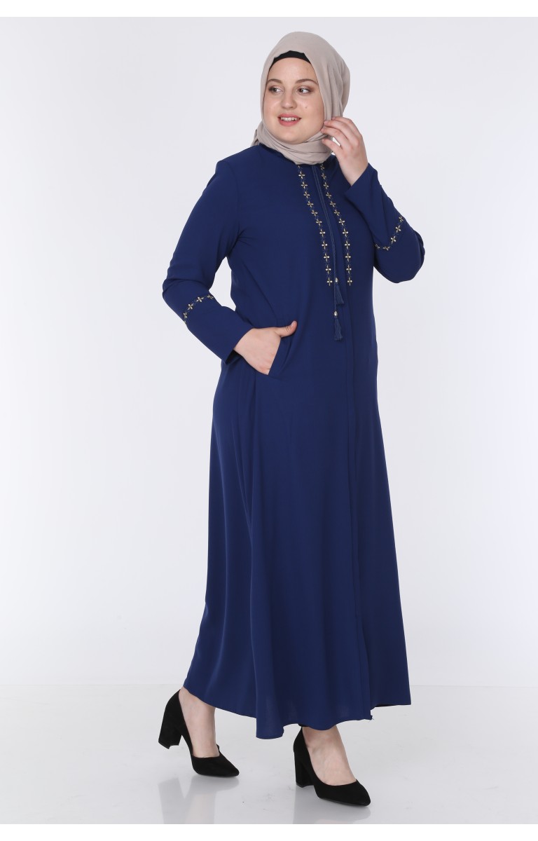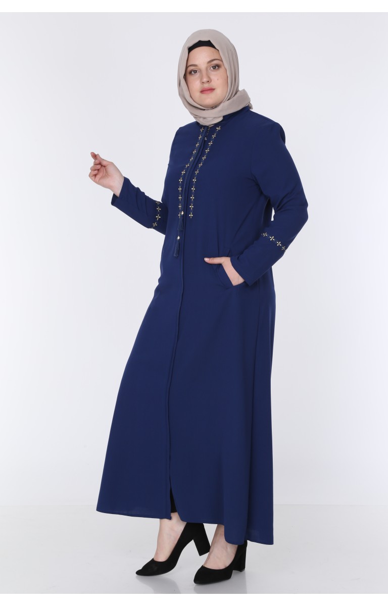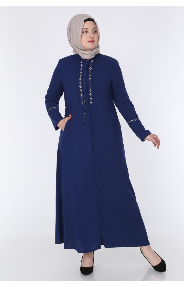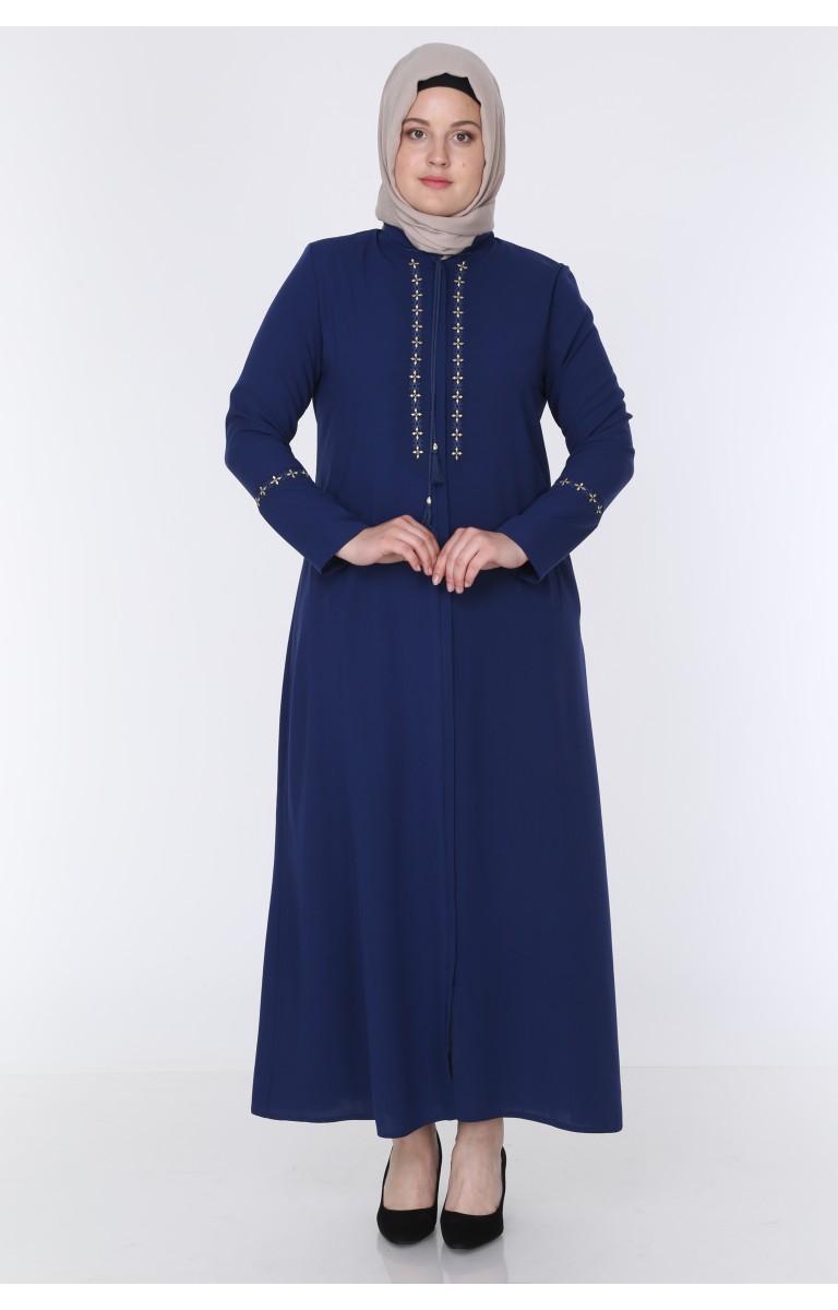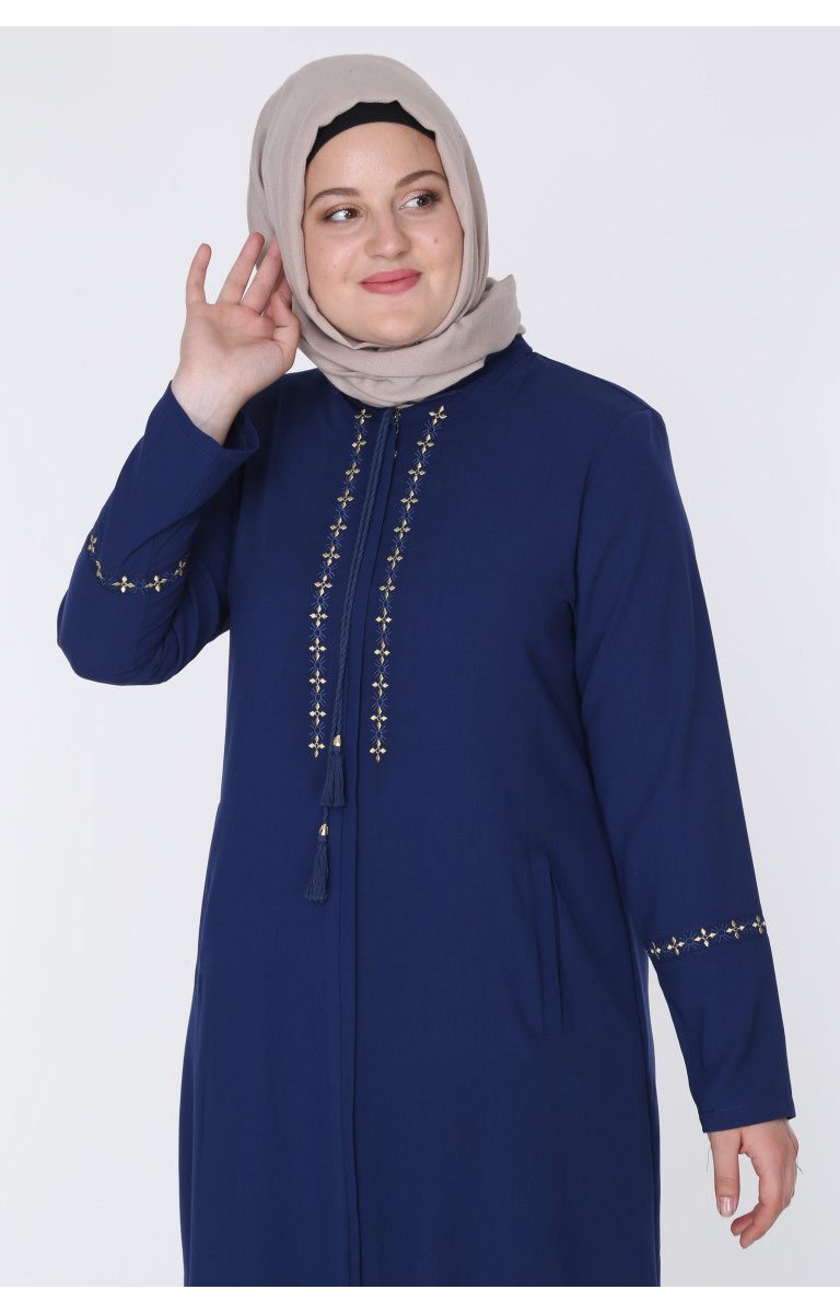 JAMİLA NAKIŞLI ELİT KETEN YAZLIK FERACE - İNDİGO