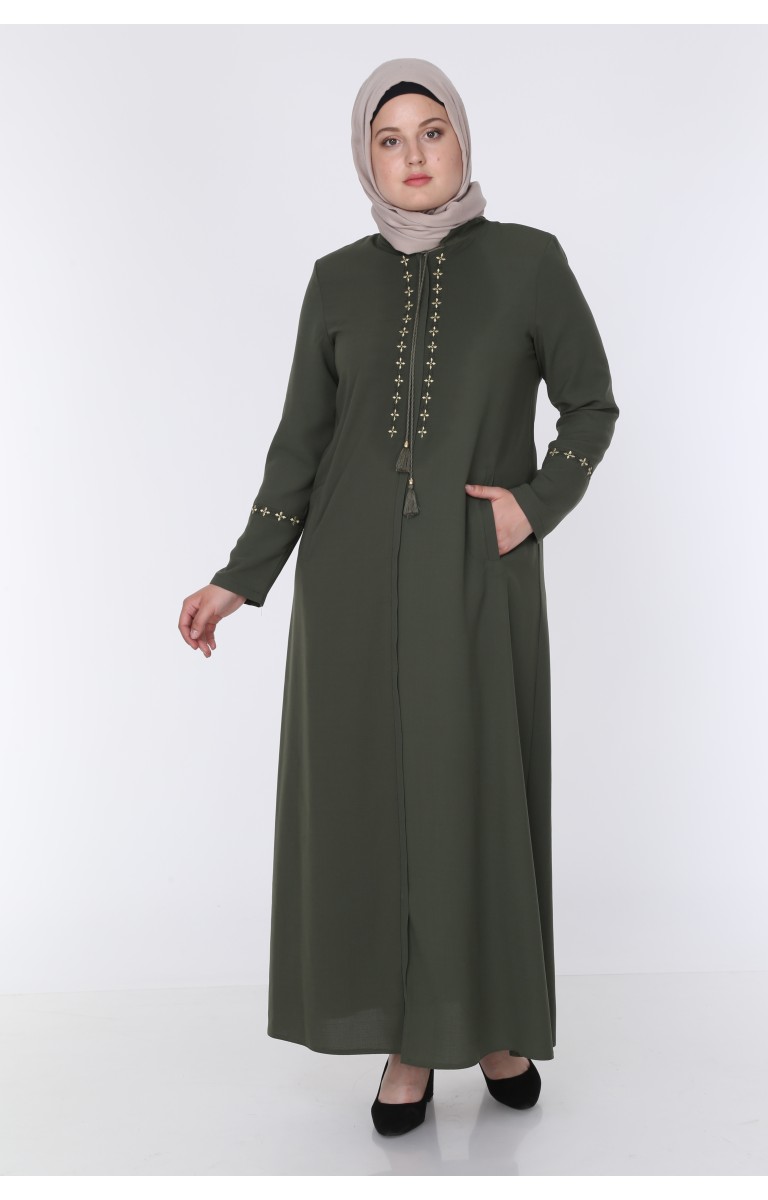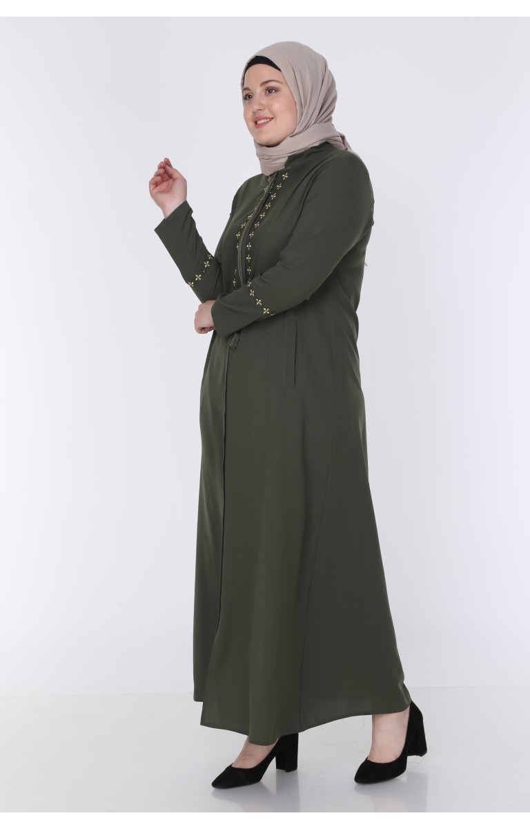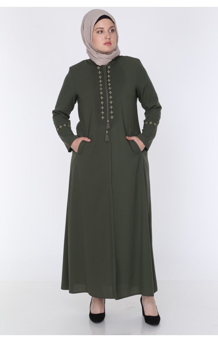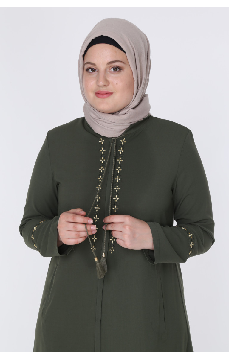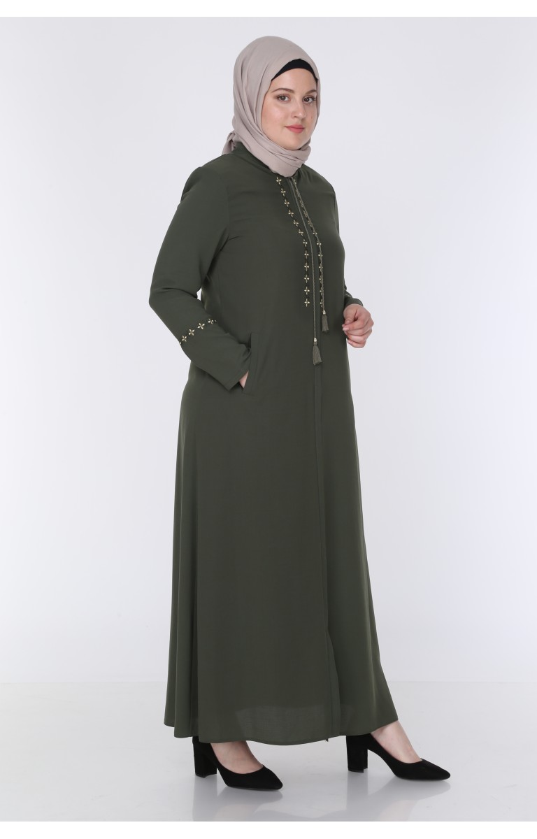 JAMİLA NAKIŞLI ELİT KETEN YAZLIK FERACE - HAKİ