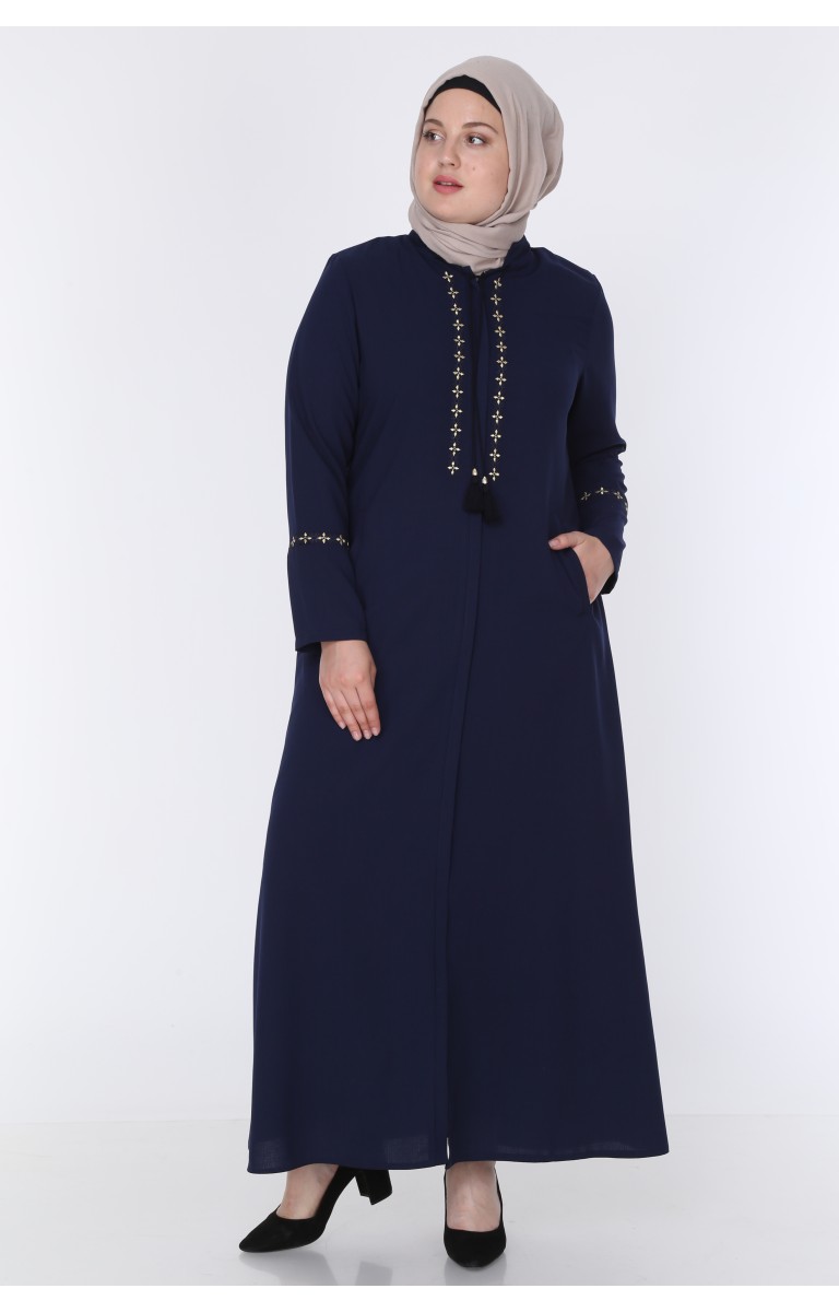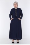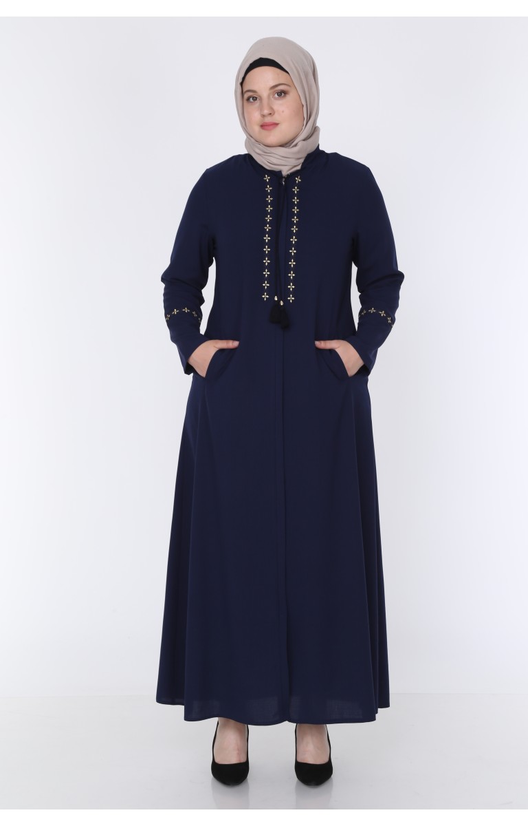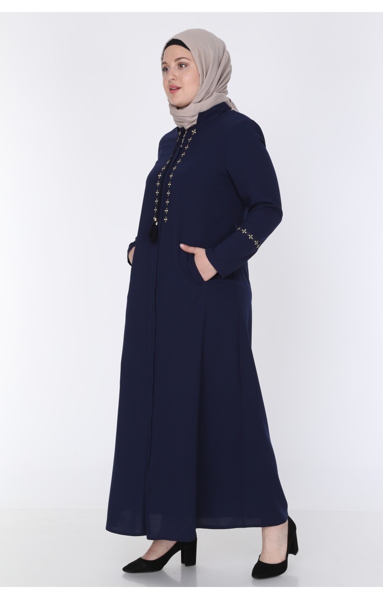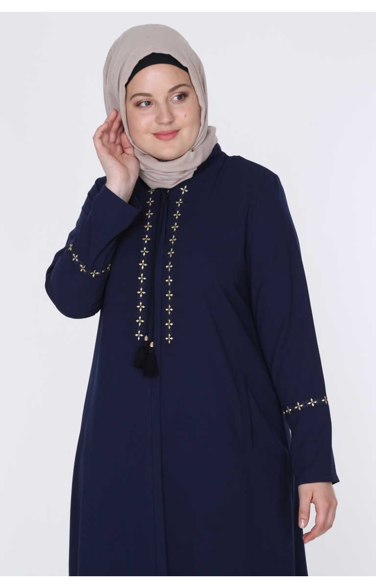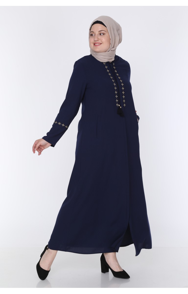 JAMİLA NAKIŞLI ELİT KETEN YAZLIK FERACE - LACİVERT