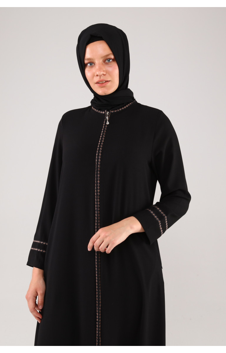JAMİLA NAKIŞLI YAZLIK KETEN FERACE - SİYAH