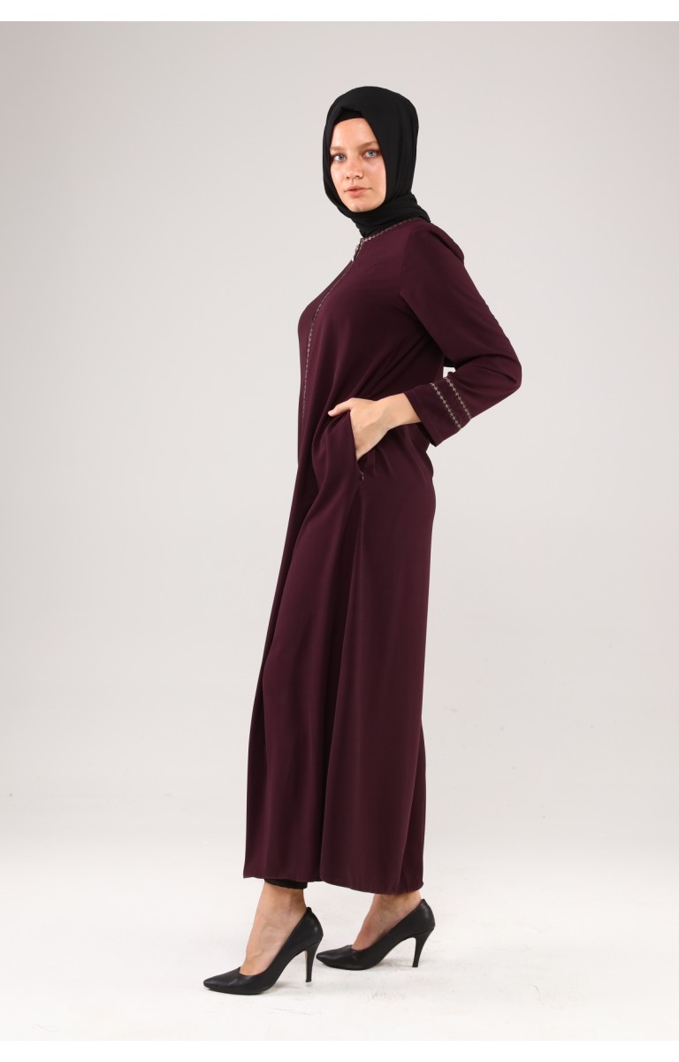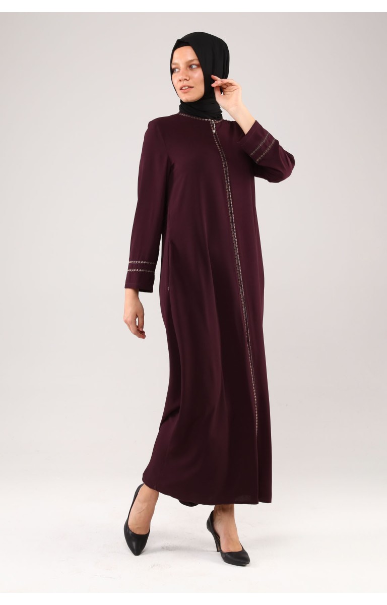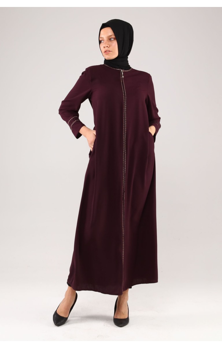 JAMİLA NAKIŞLI YAZLIK KETEN FERACE - MÜRDÜM