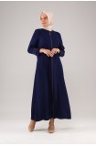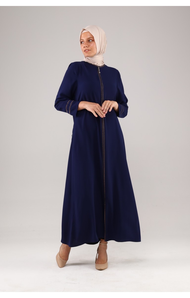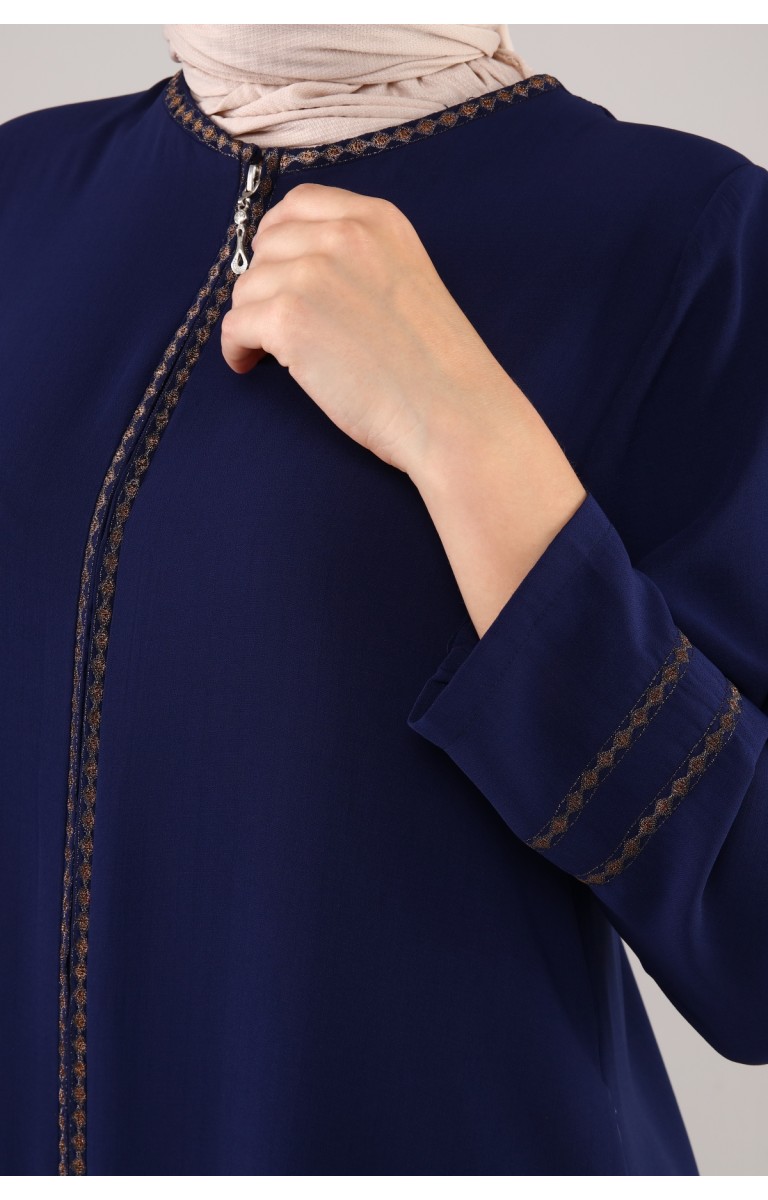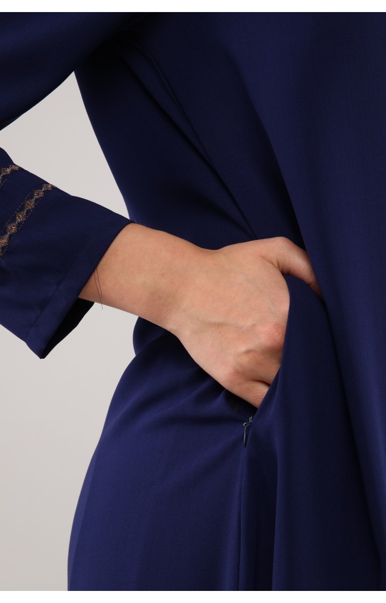 JAMİLA NAKIŞLI YAZLIK KETEN FERACE - İNDİGO