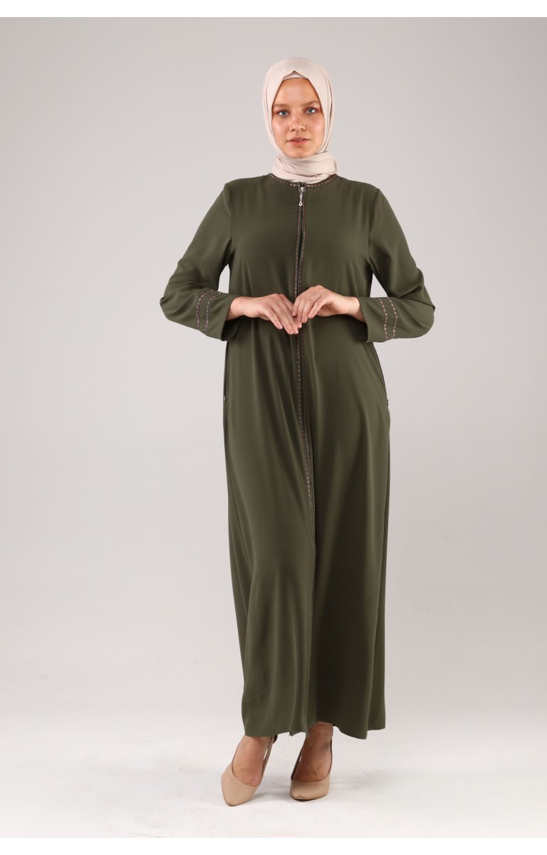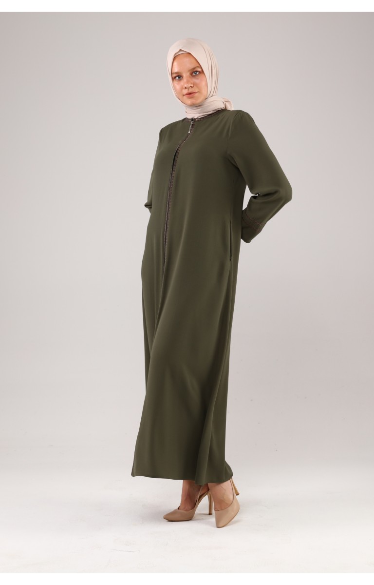JAMİLA NAKIŞLI YAZLIK KETEN FERACE - HAKİ