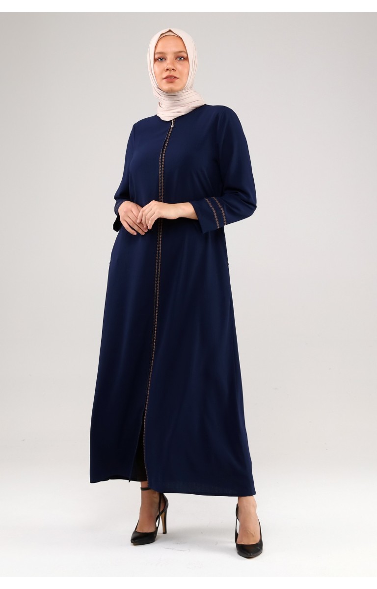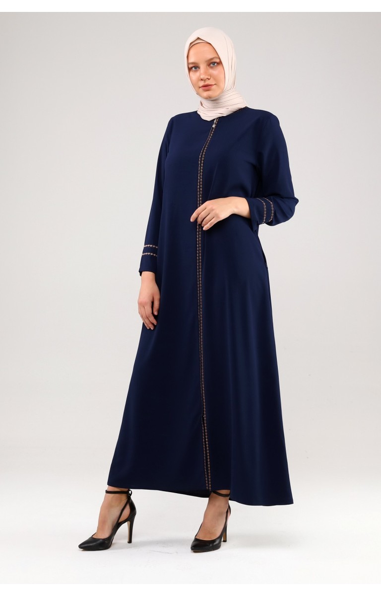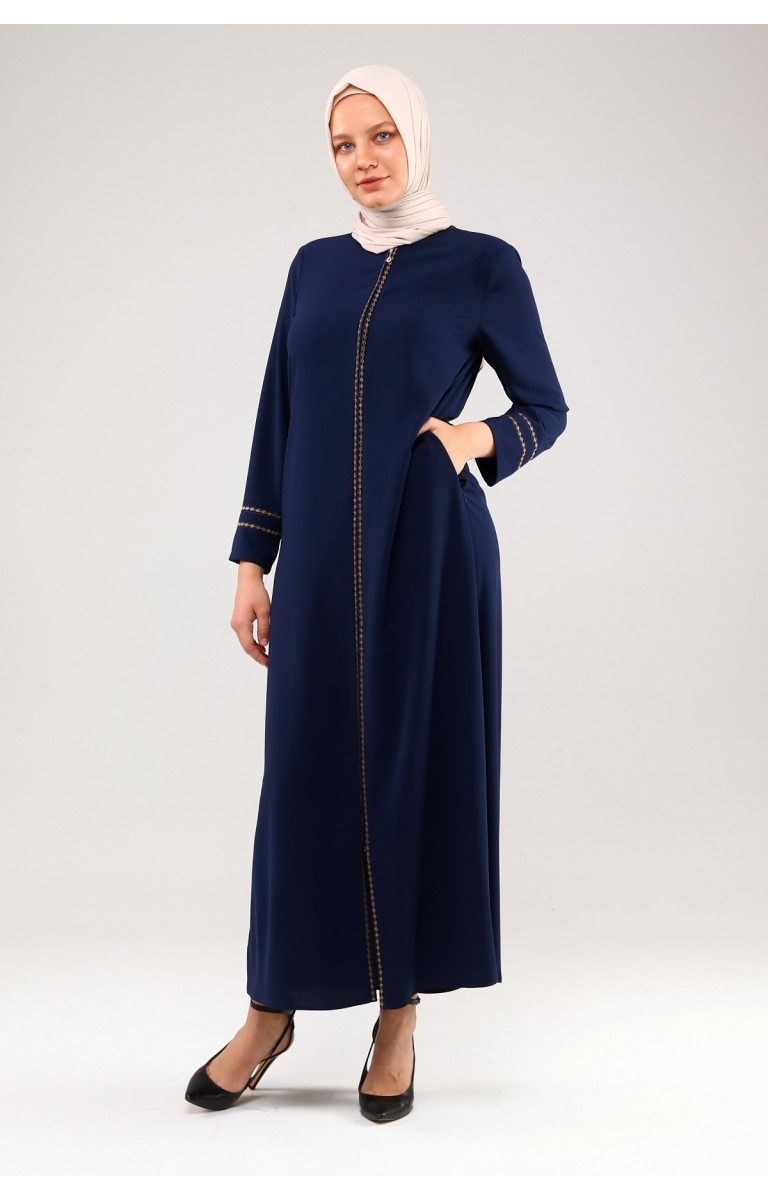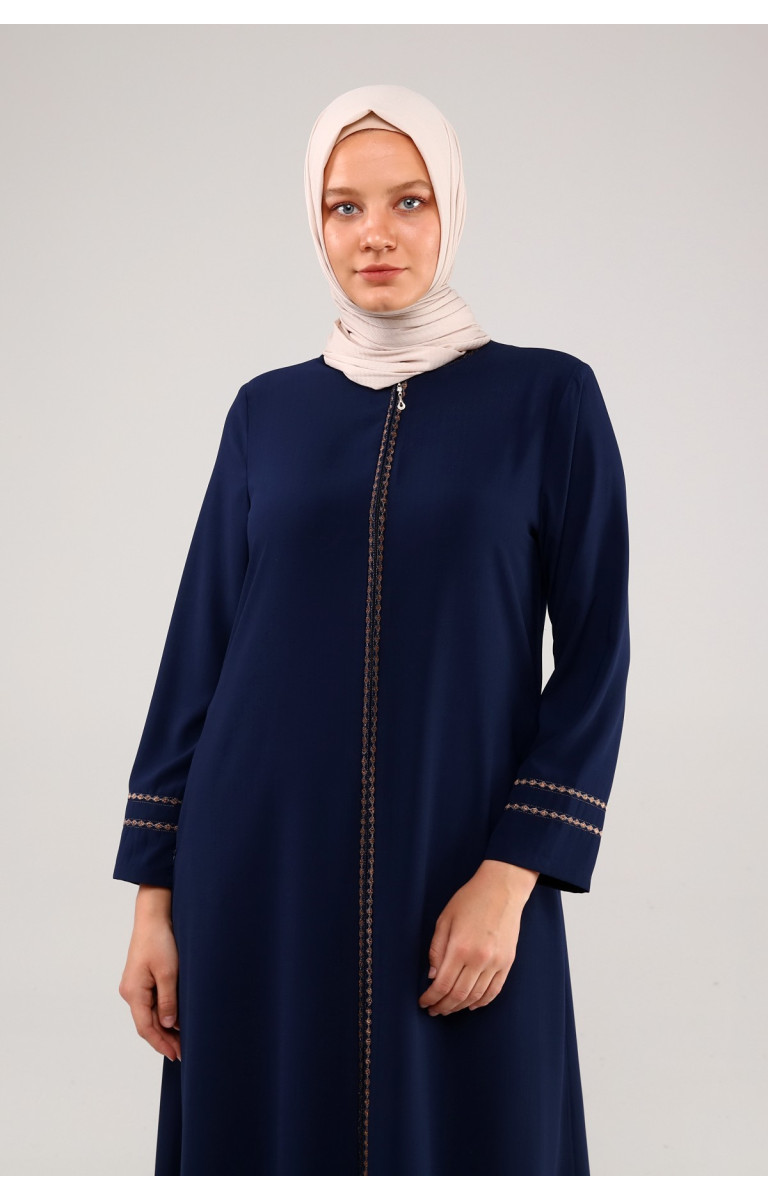 JAMİLA NAKIŞLI YAZLIK KETEN FERACE - LACİVERT