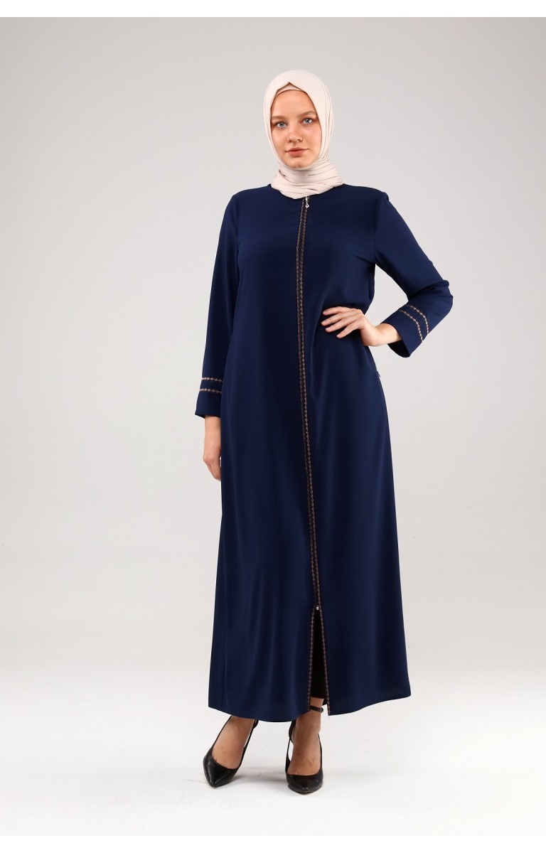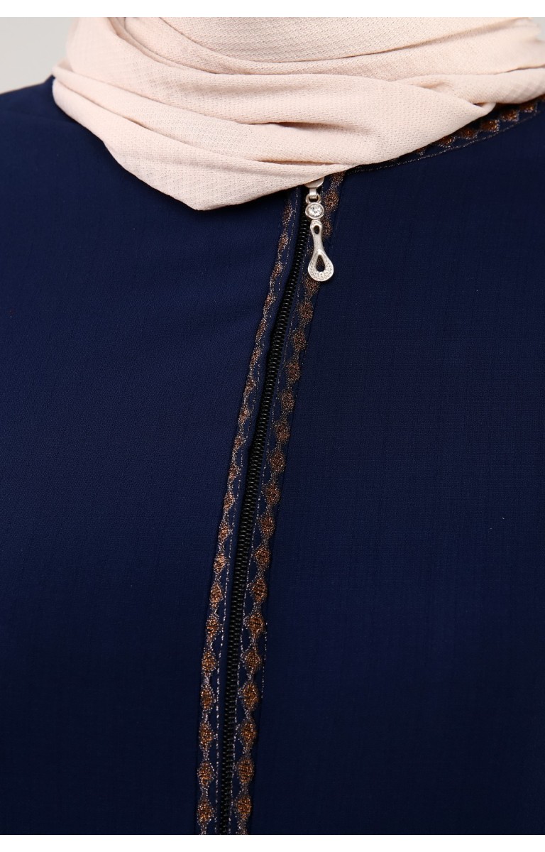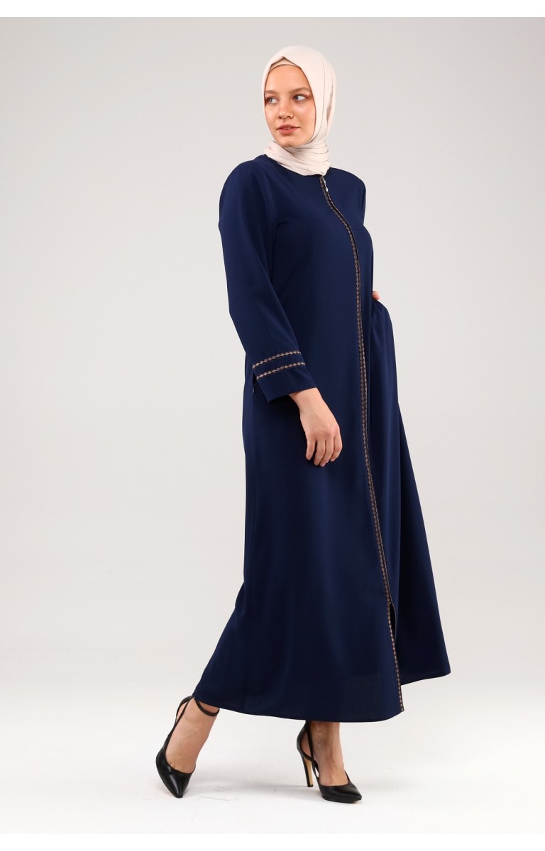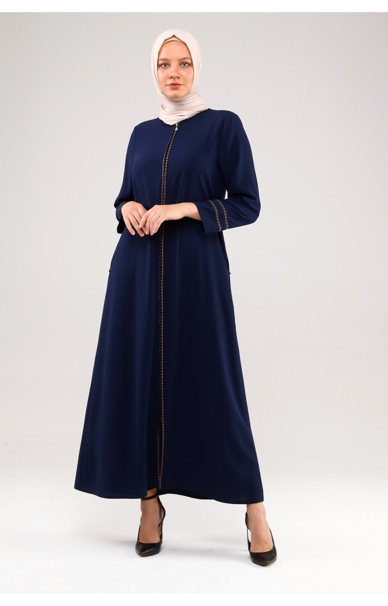 JAMİLA NAKIŞLI YAZLIK KETEN FERACE - LACİVERT