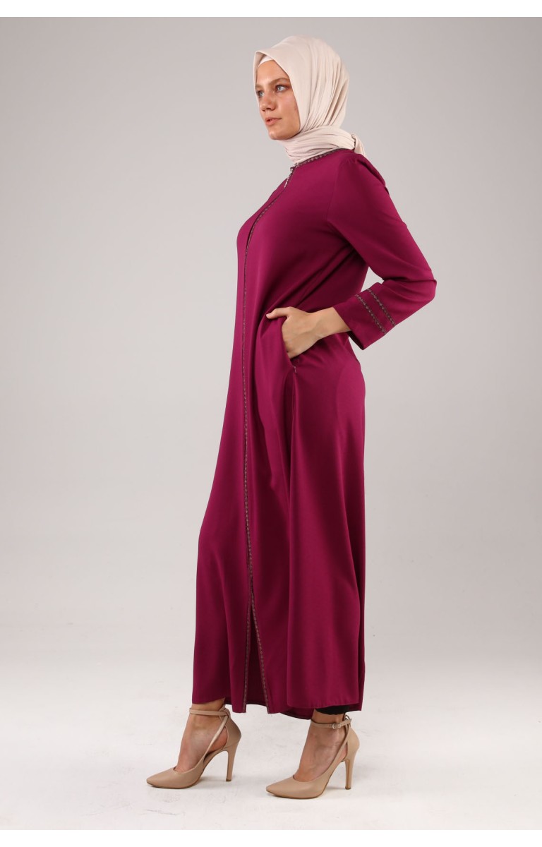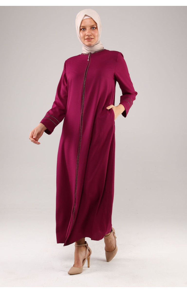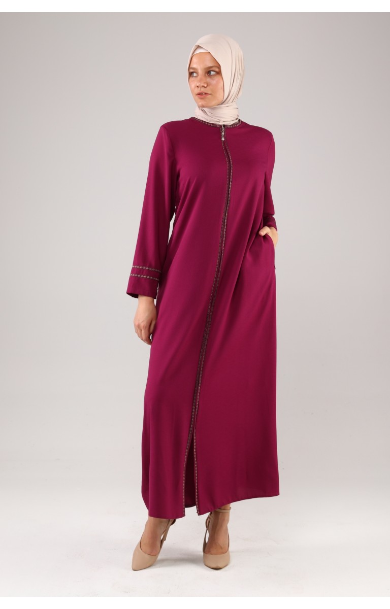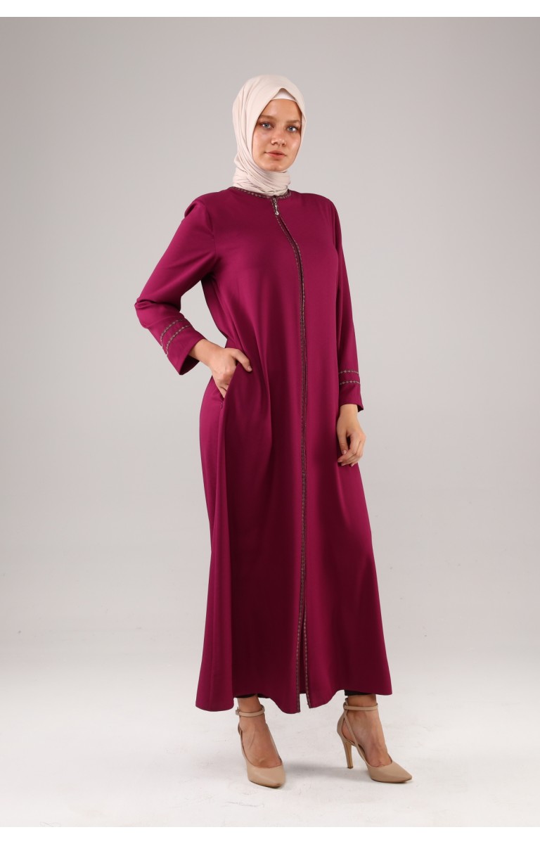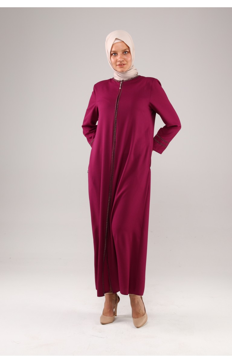 JAMİLA NAKIŞLI YAZLIK KETEN FERACE - MOR