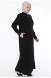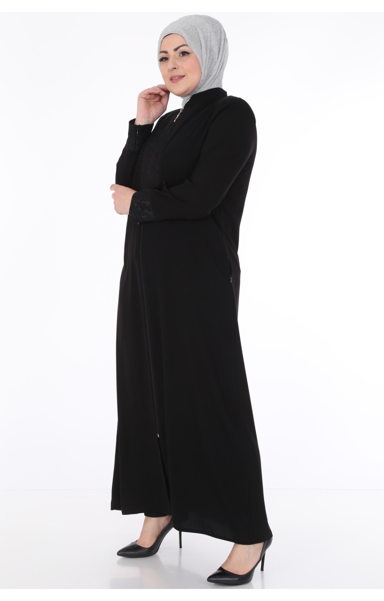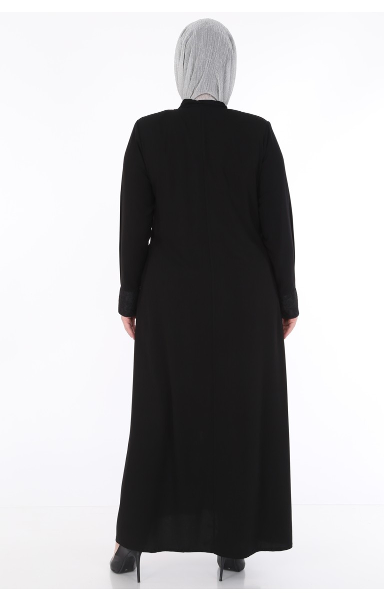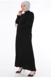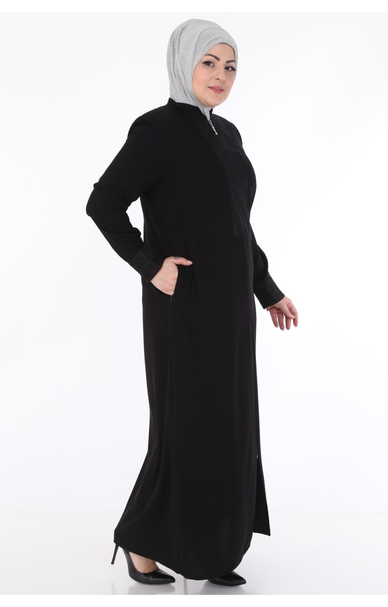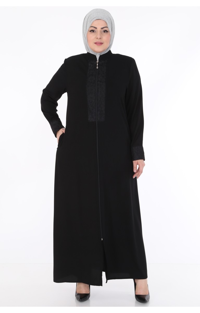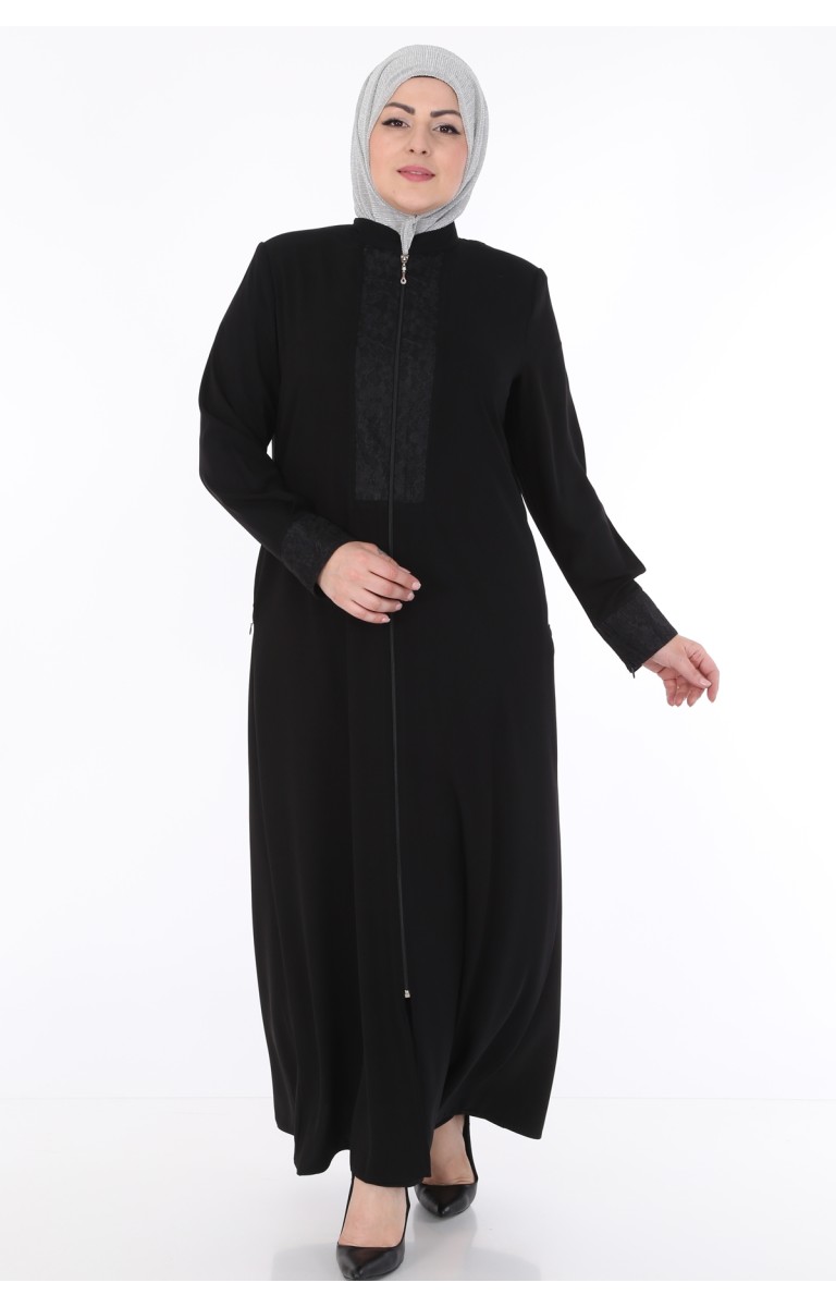 Jamila Nakışlı Fermuarlı Kadın Ferace - SİYAH