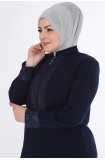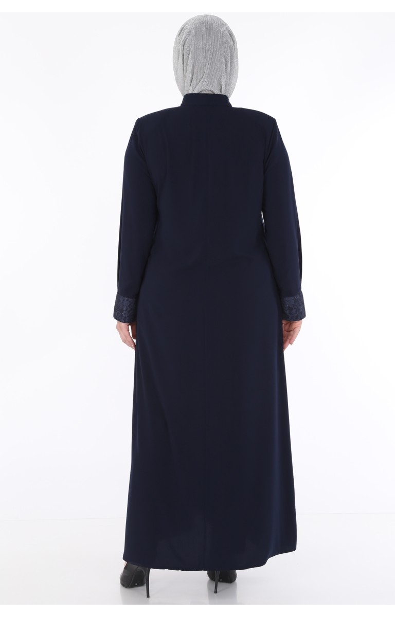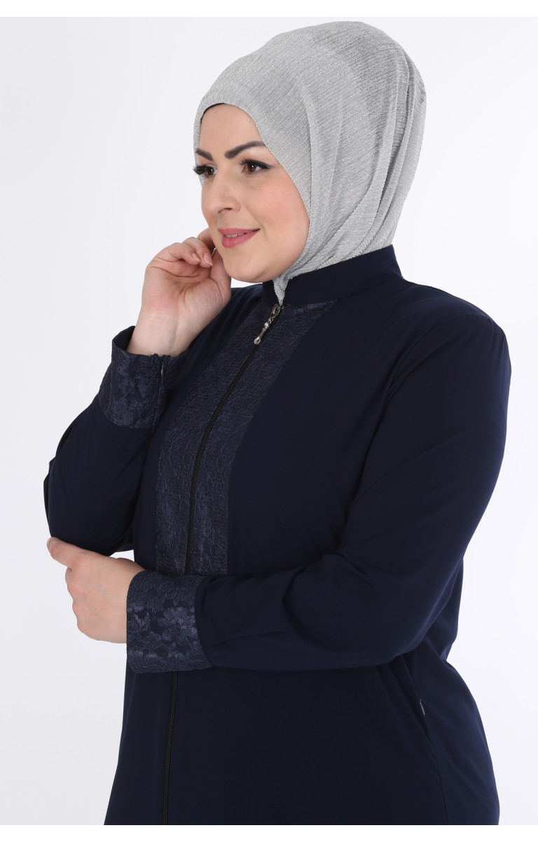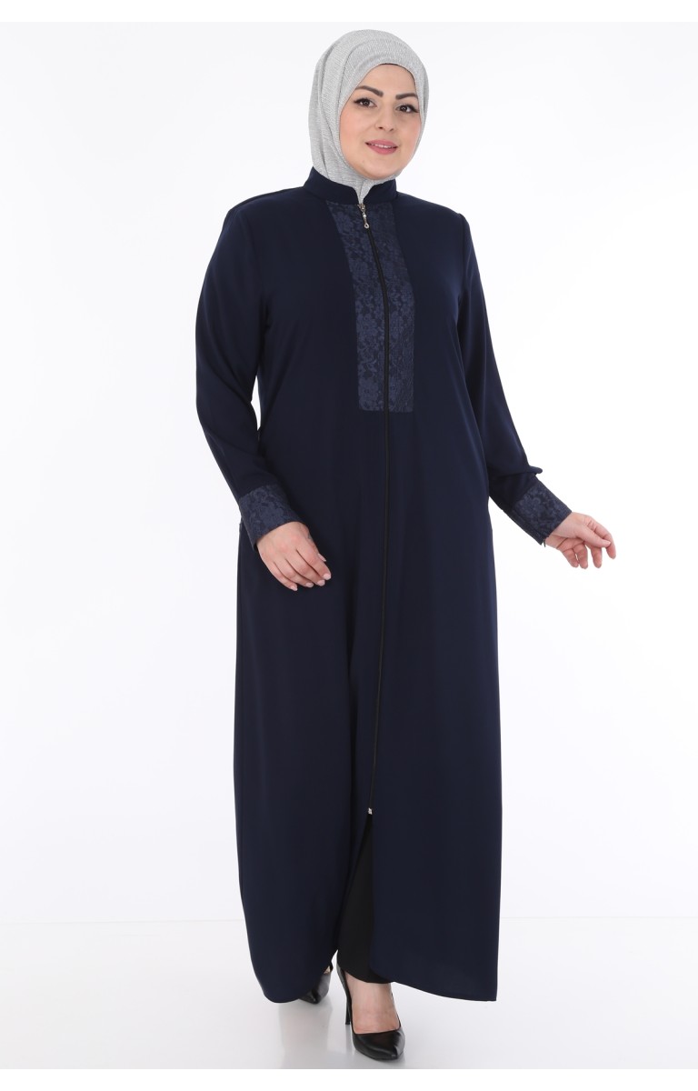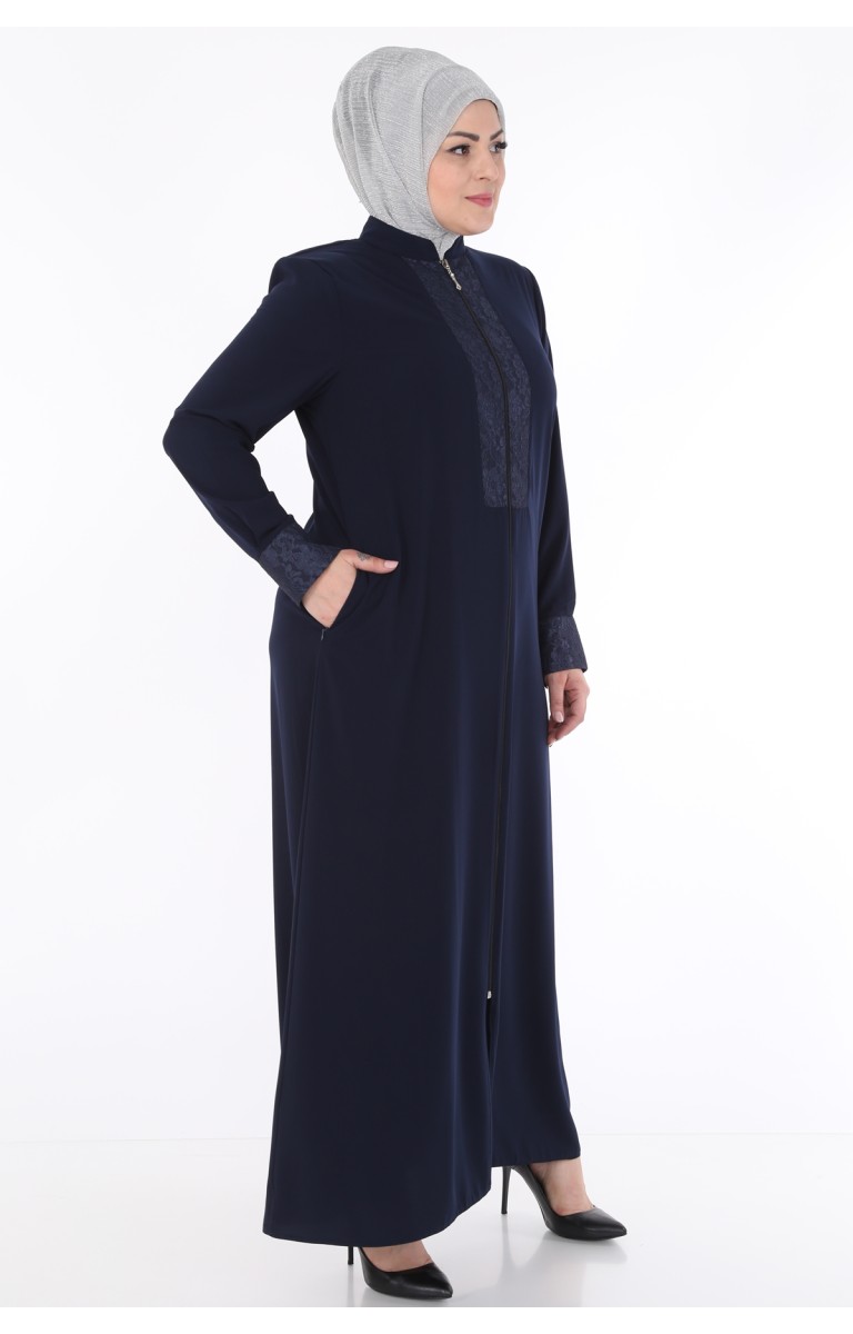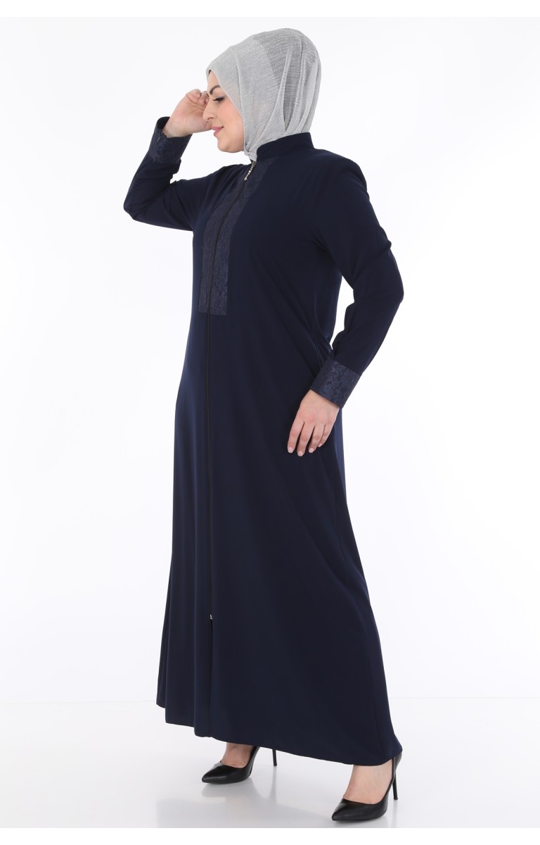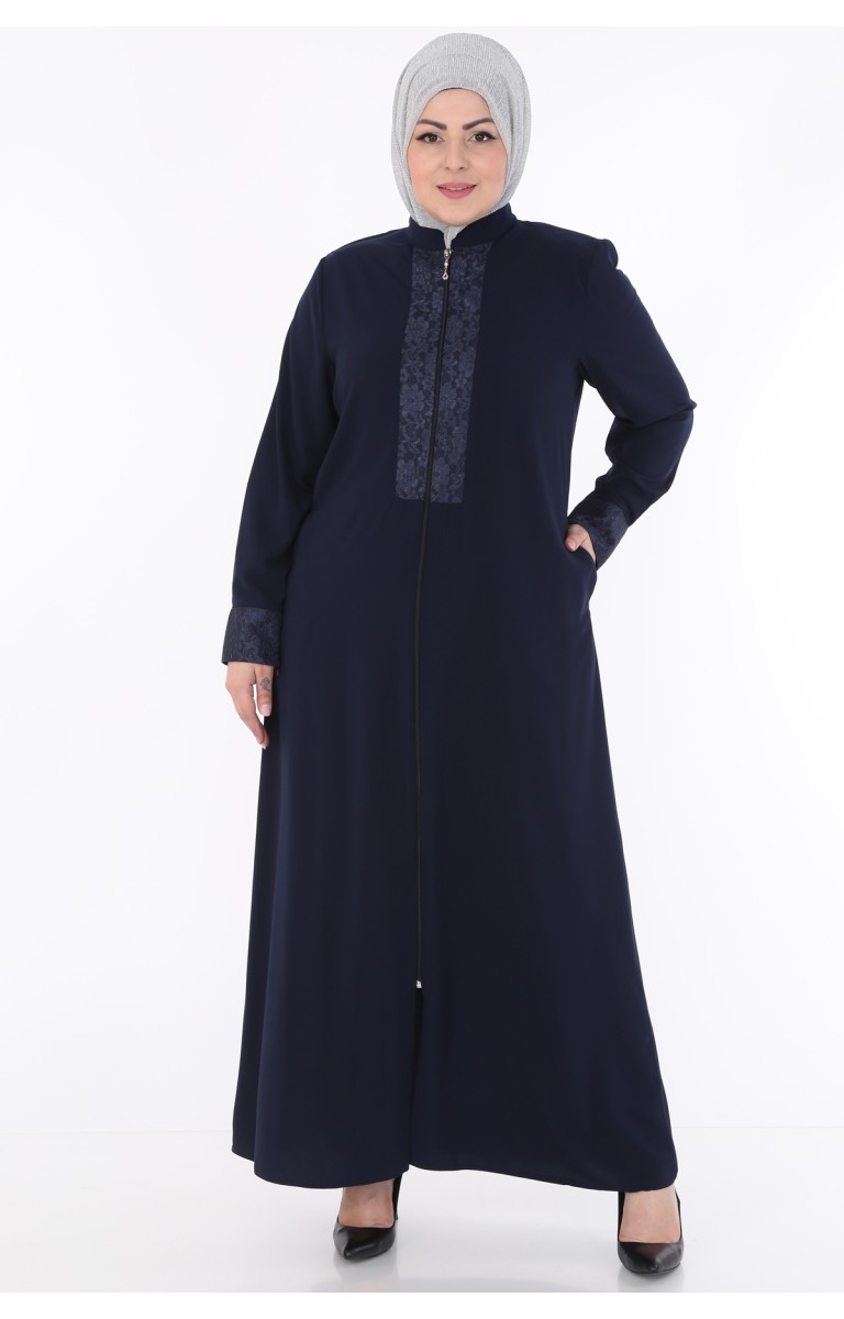 Jamila Nakışlı Fermuarlı Kadın Ferace - LACİVERT