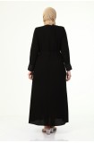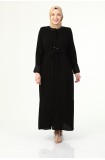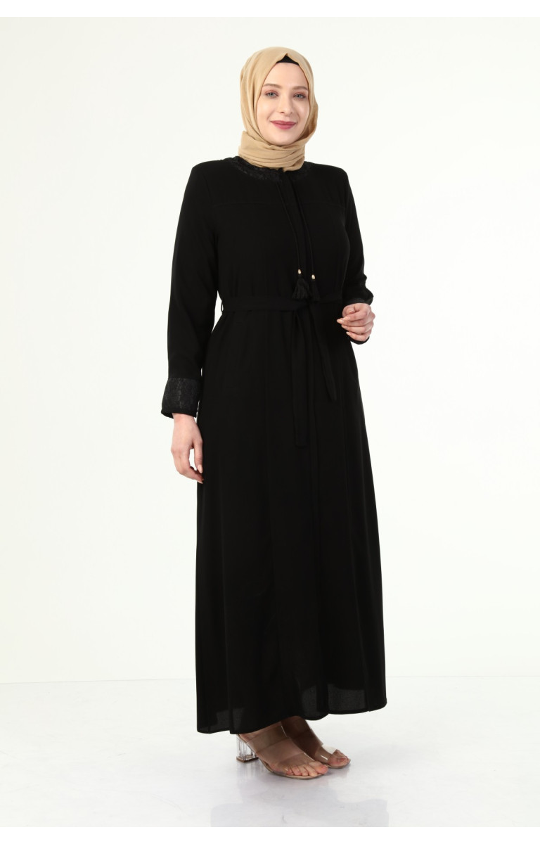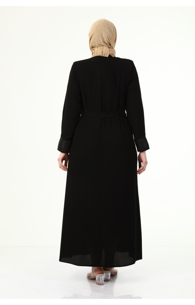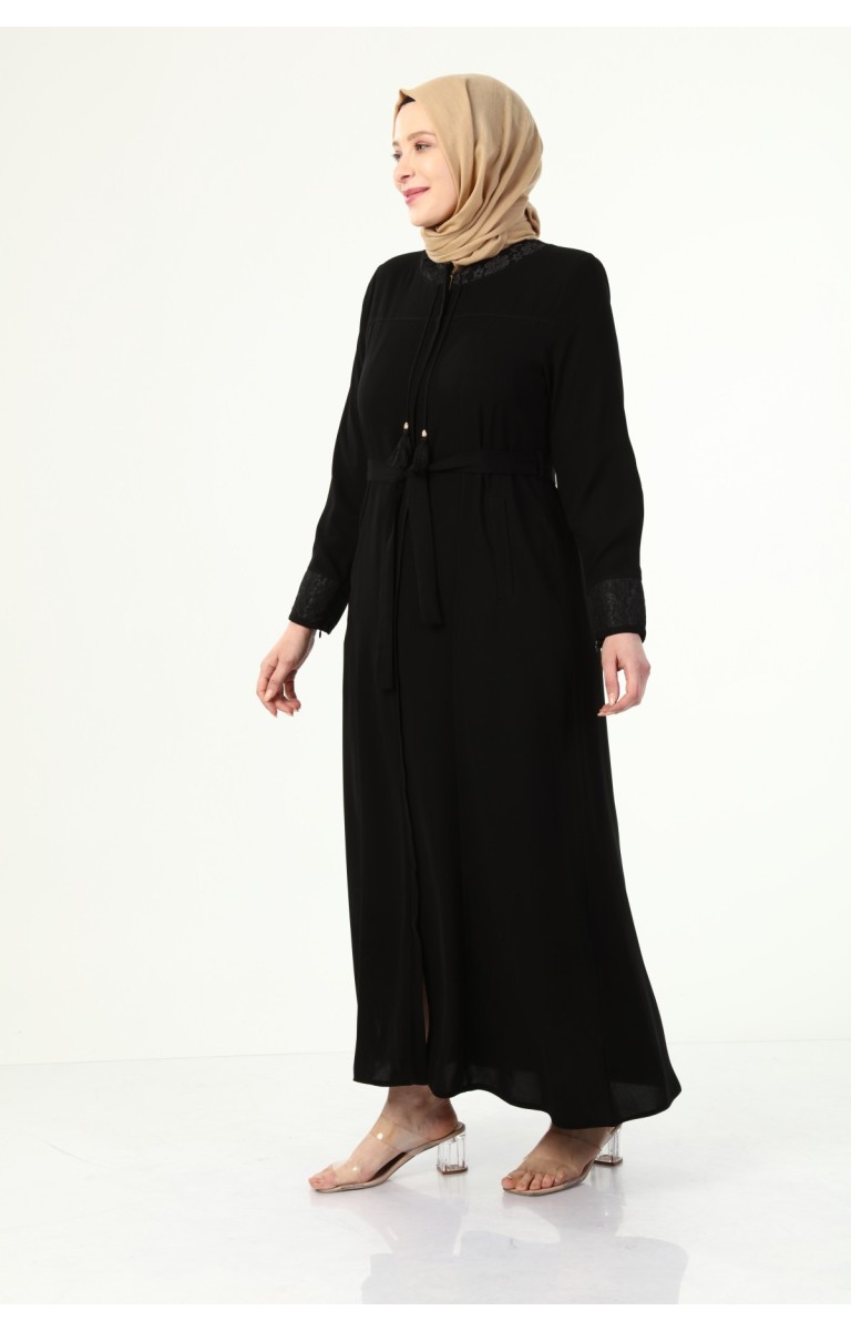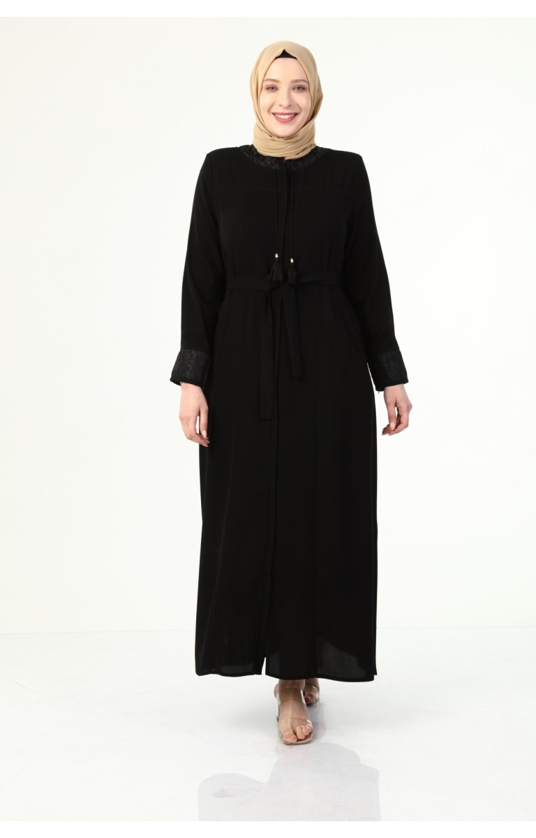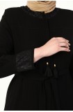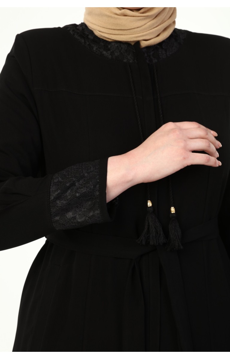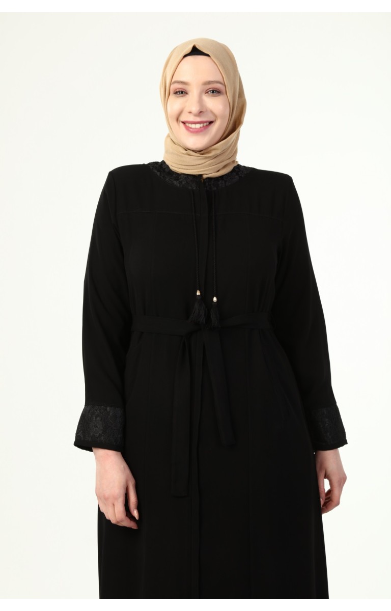 YAKASI VE KOLU DANTEL DETAYLI BÜYÜK BEDEN YAZLIK FERACE - SİYAH