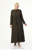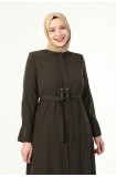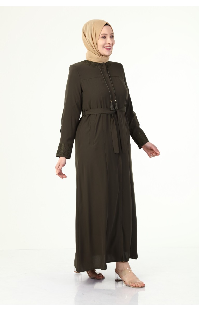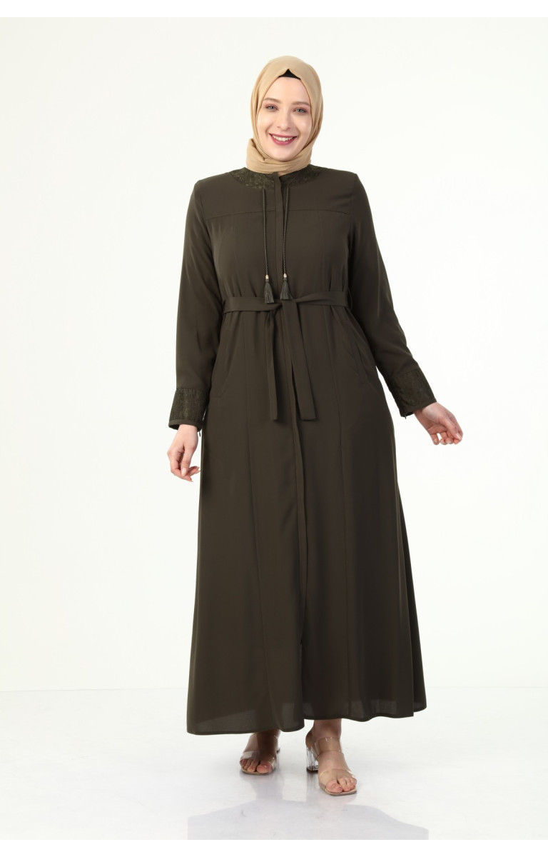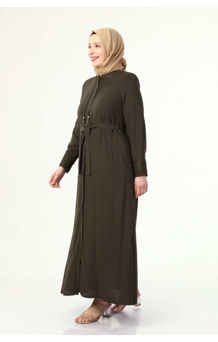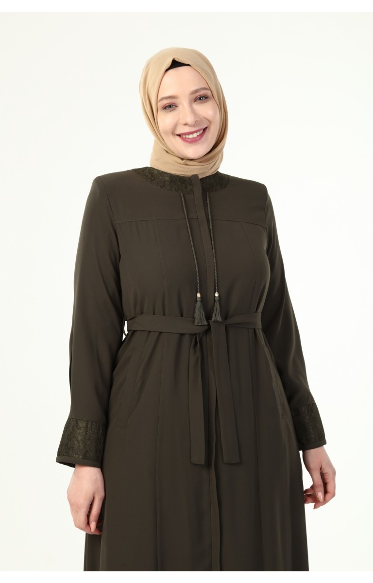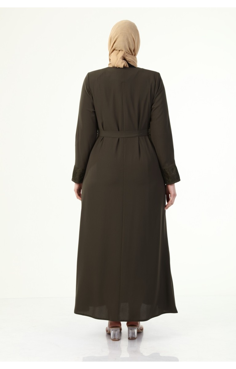 YAKASI VE KOLU DANTEL DETAYLI BÜYÜK BEDEN YAZLIK FERACE - HAKİ