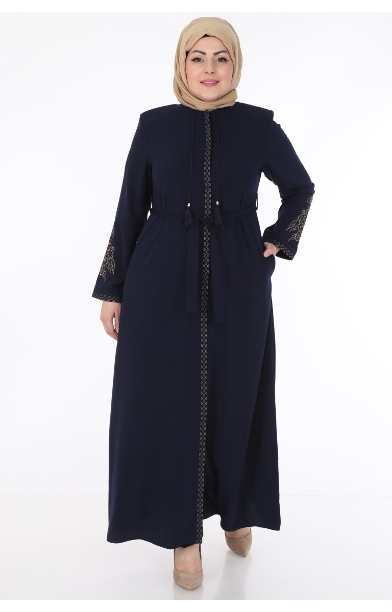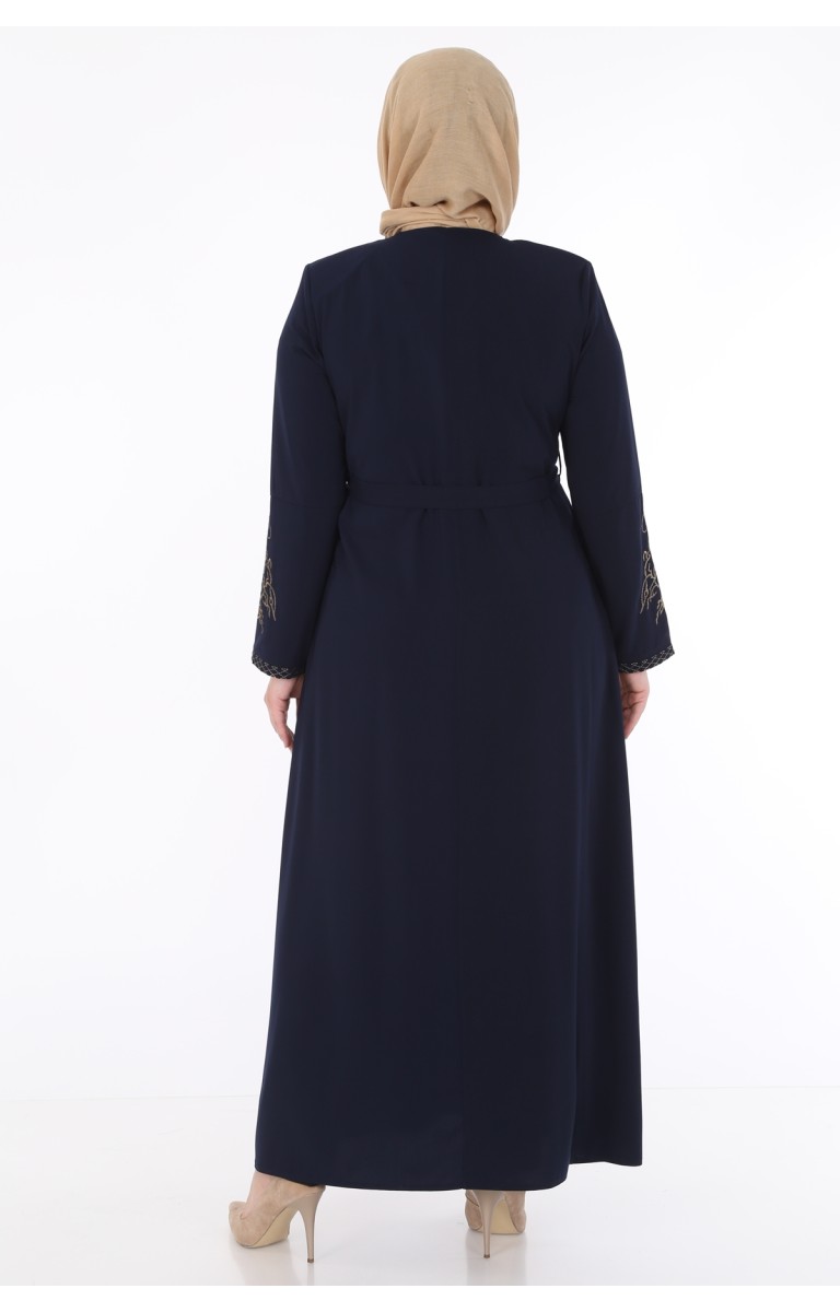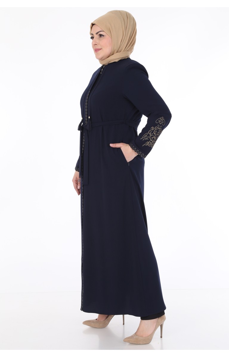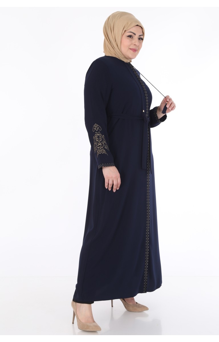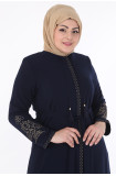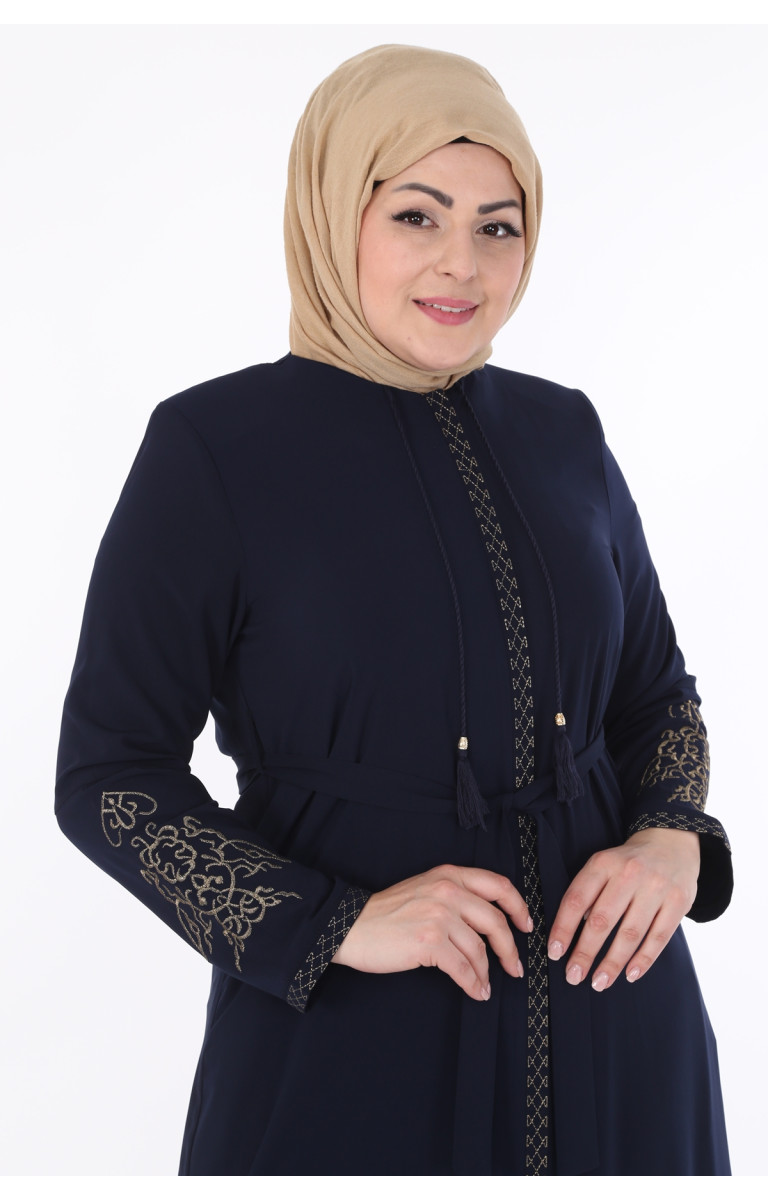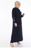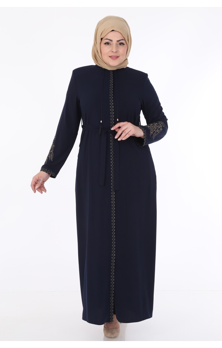 KOLLARI NAKIŞLI MEDİNE İPEĞİ KADIN FERACE - LACİVERT