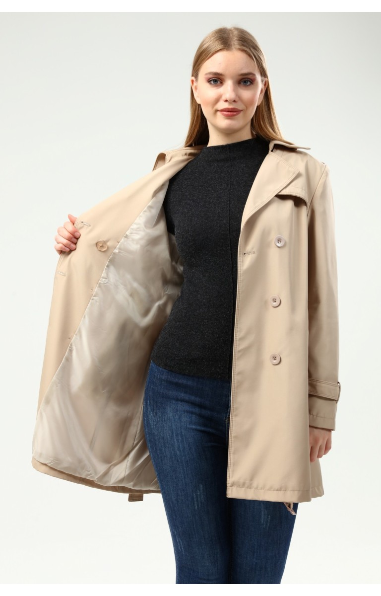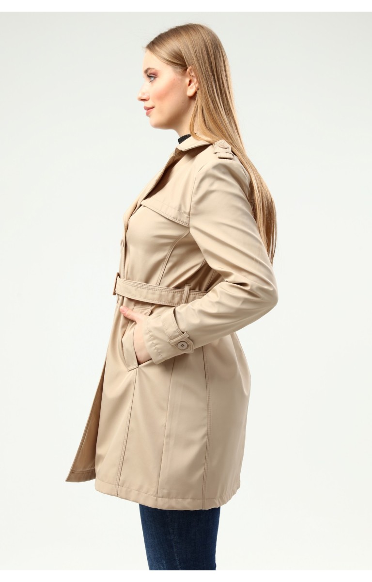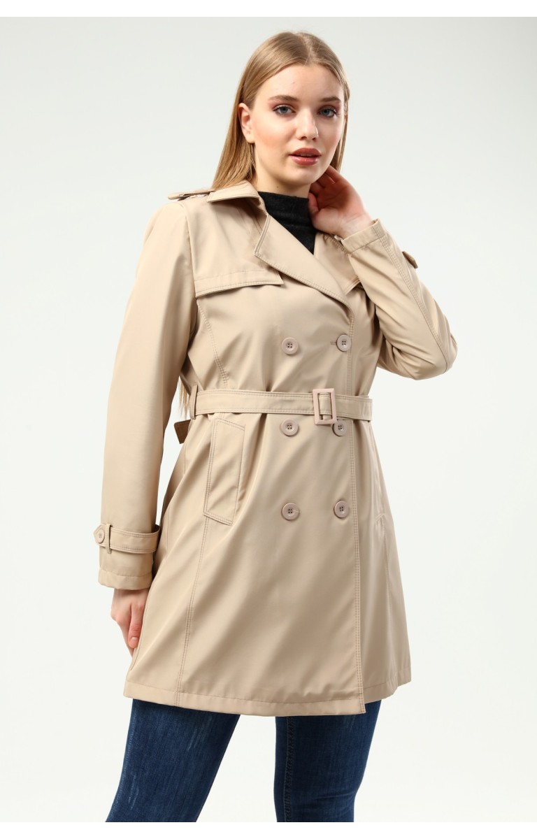 KADIN BÜYÜK BEDEN ASTARLI TRENÇKOT&KAP - BEJ