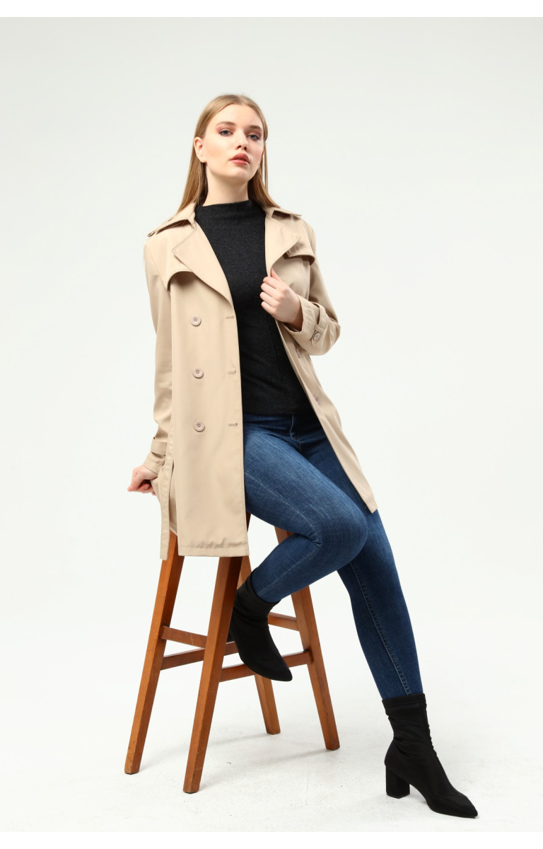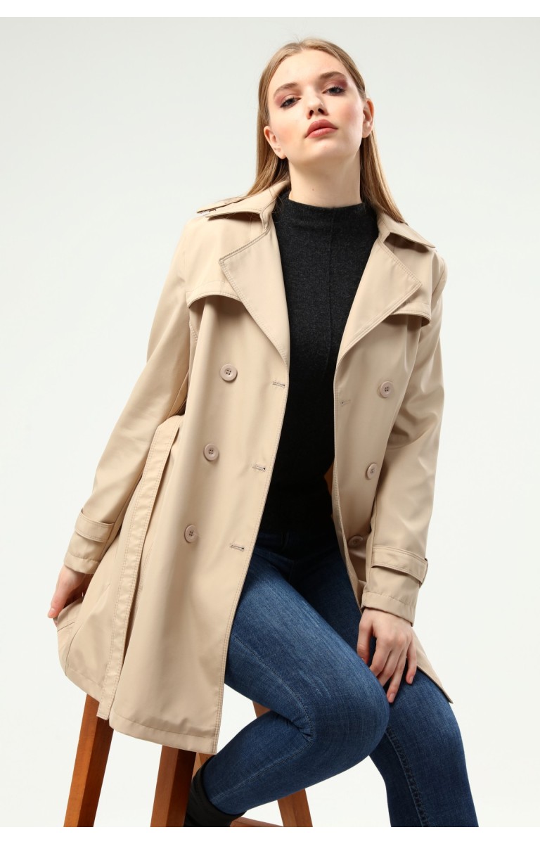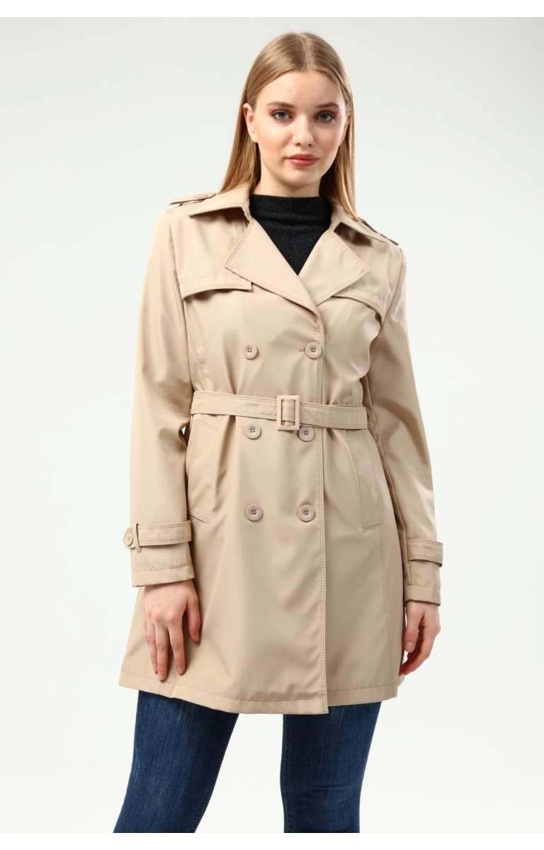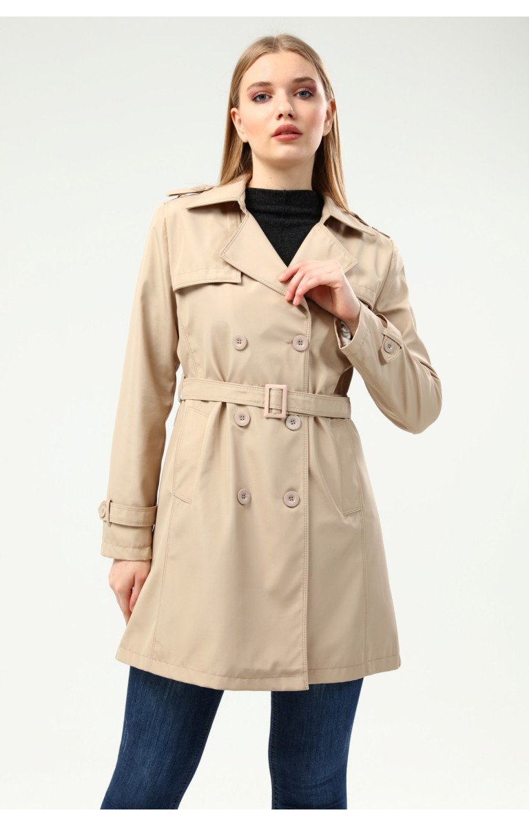 KADIN BÜYÜK BEDEN ASTARLI TRENÇKOT&KAP - BEJ