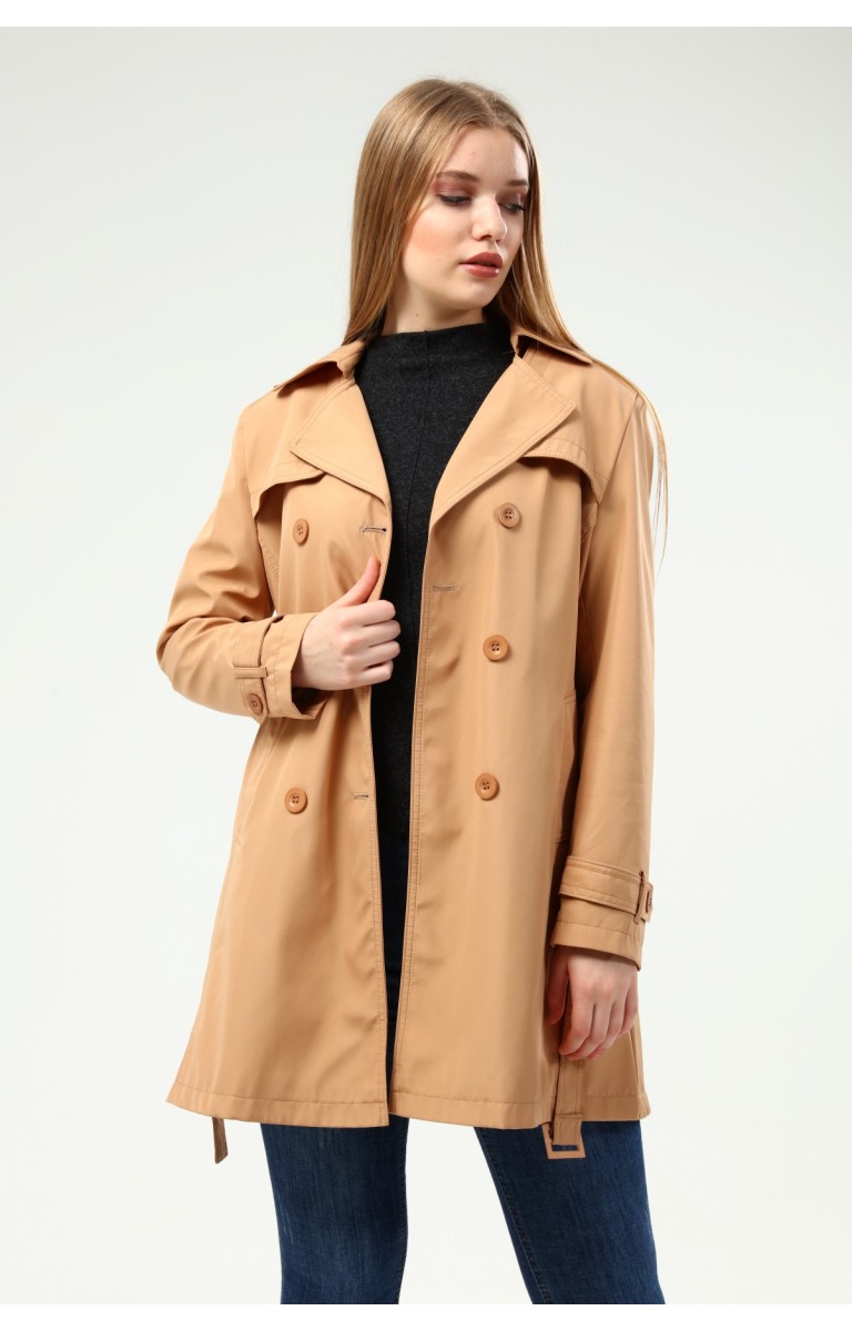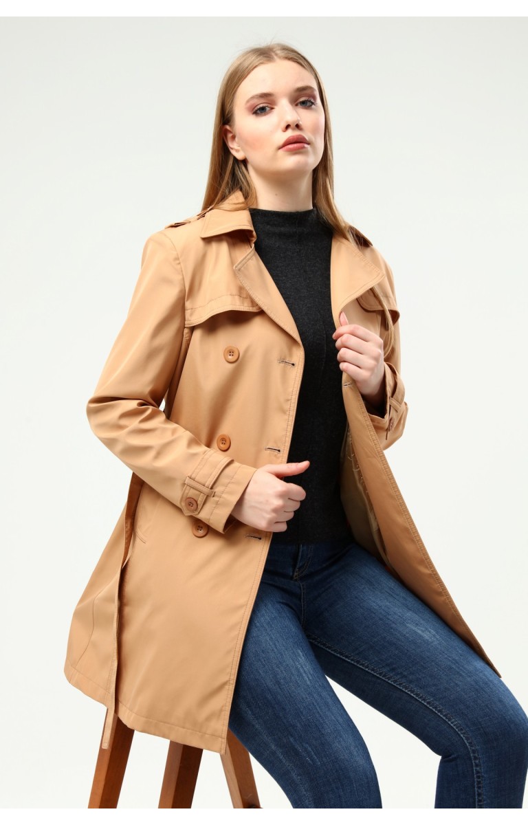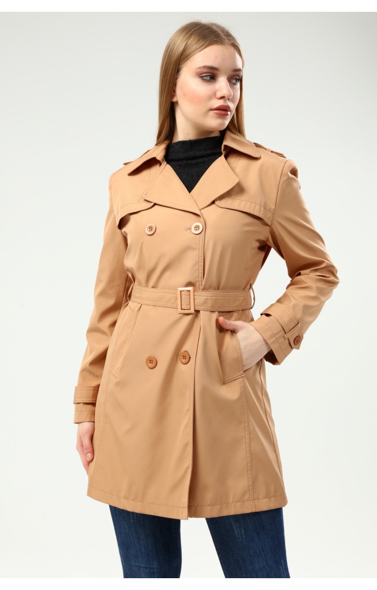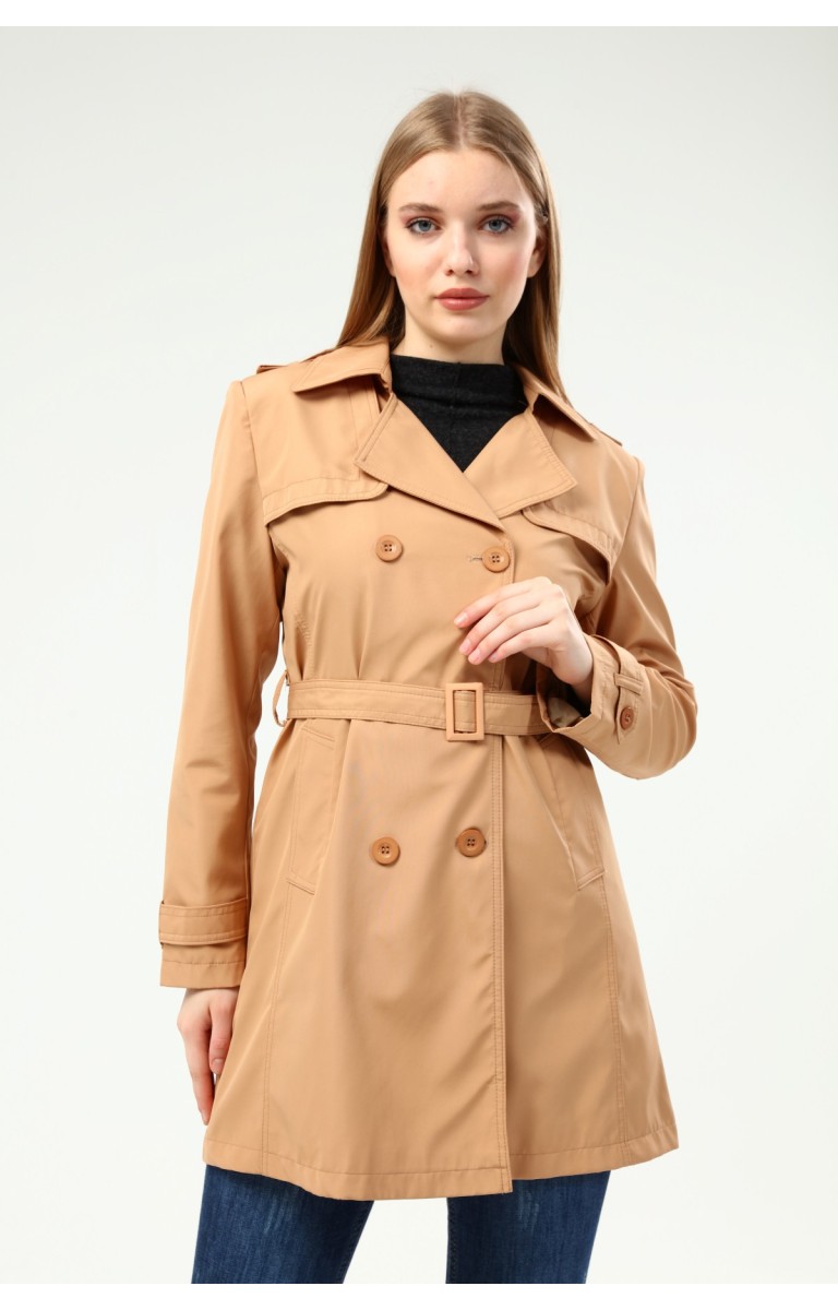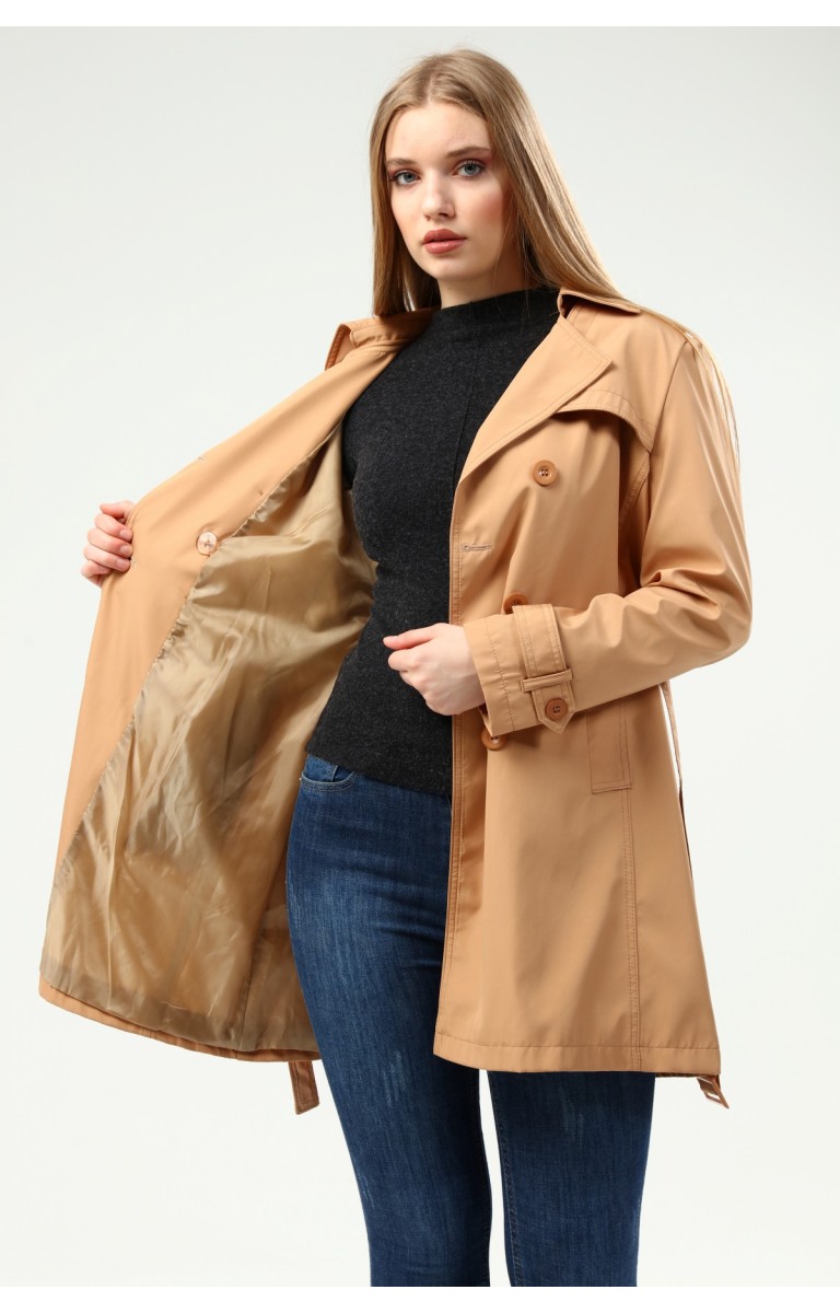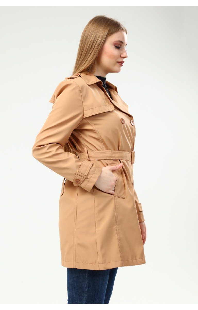 KADIN BÜYÜK BEDEN ASTARLI TRENÇKOT&KAP - KAMEL