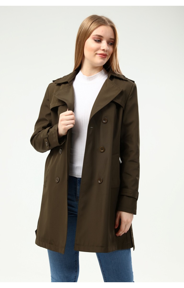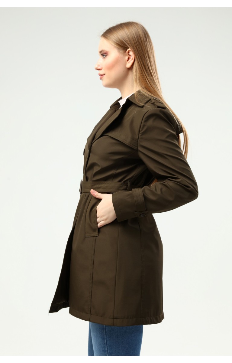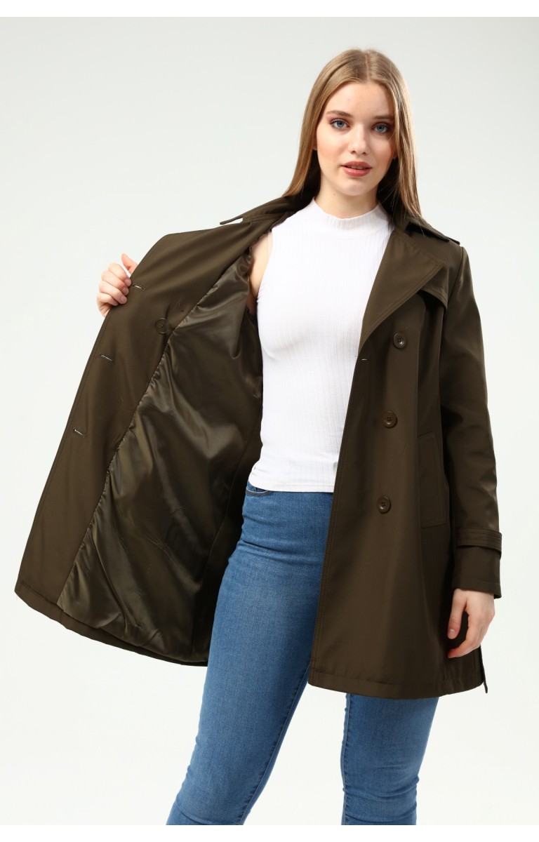 KADIN BÜYÜK BEDEN ASTARLI TRENÇKOT&KAP - HAKİ
