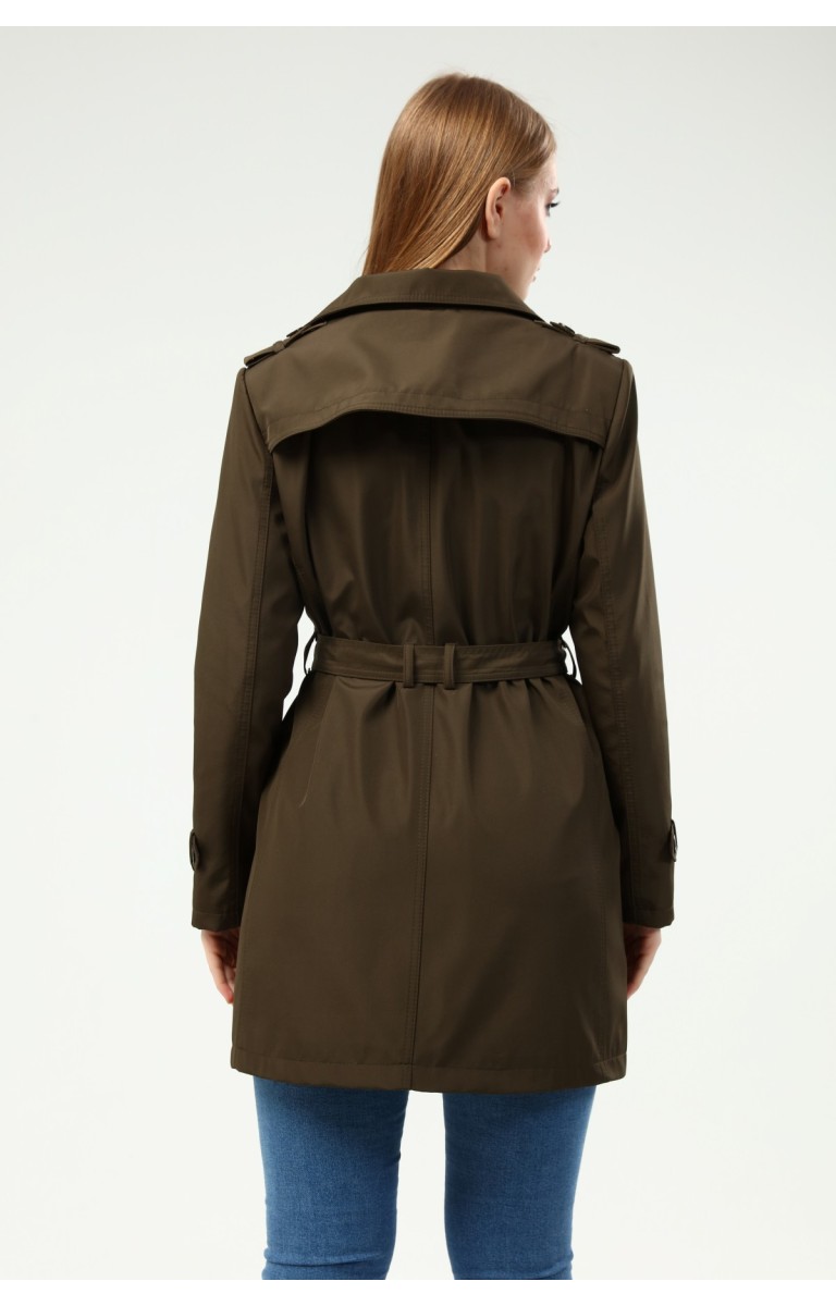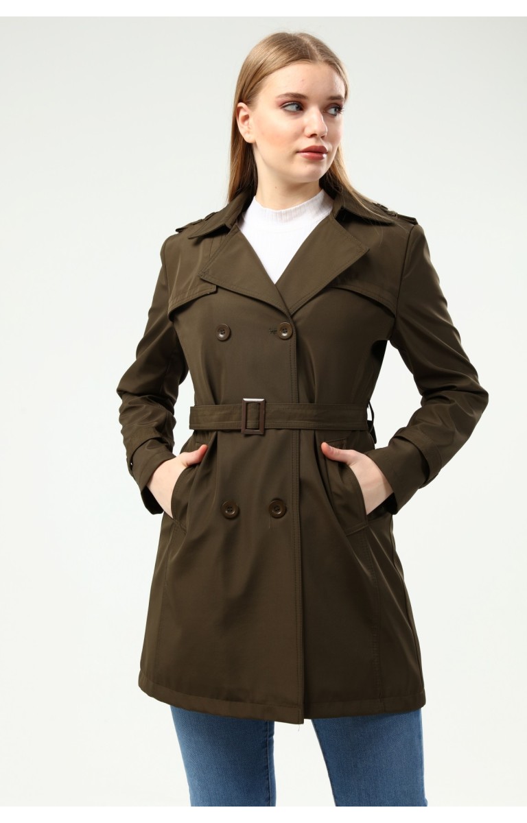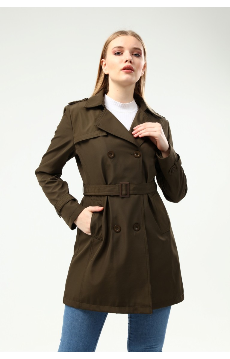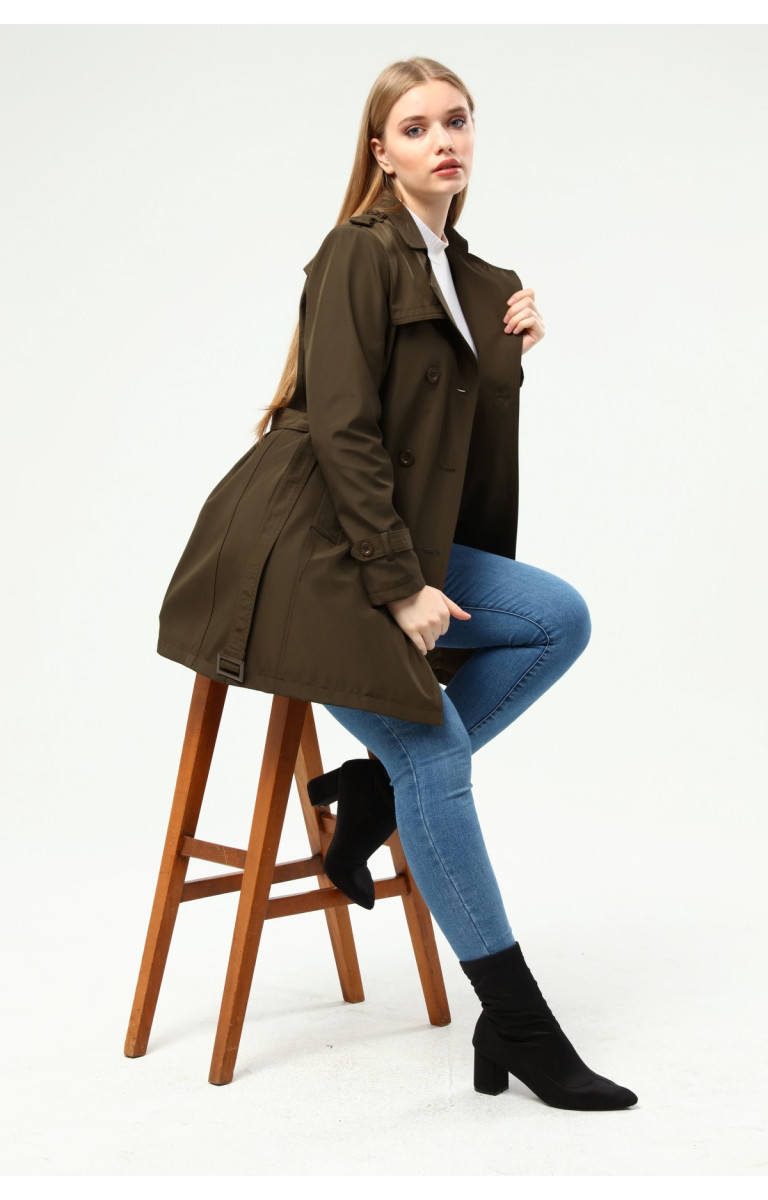 KADIN BÜYÜK BEDEN ASTARLI TRENÇKOT&KAP - HAKİ