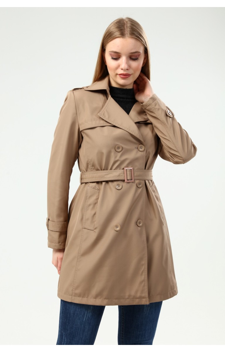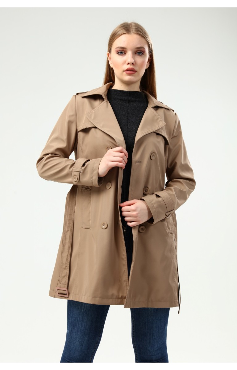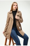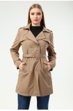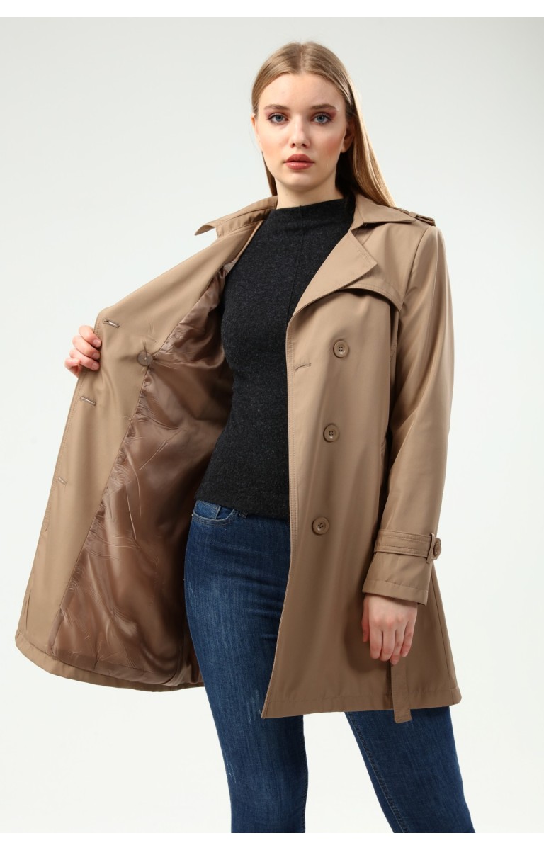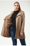 KADIN BÜYÜK BEDEN ASTARLI TRENÇKOT&KAP - VİZON