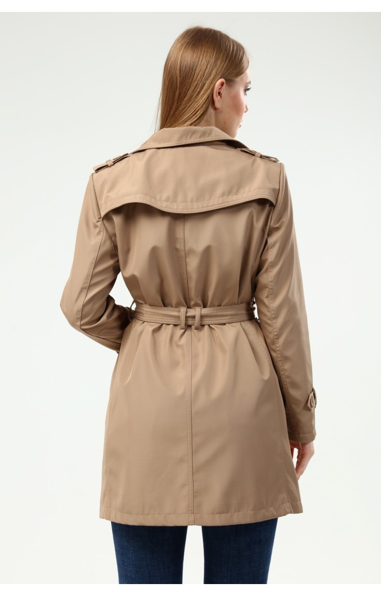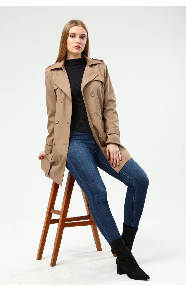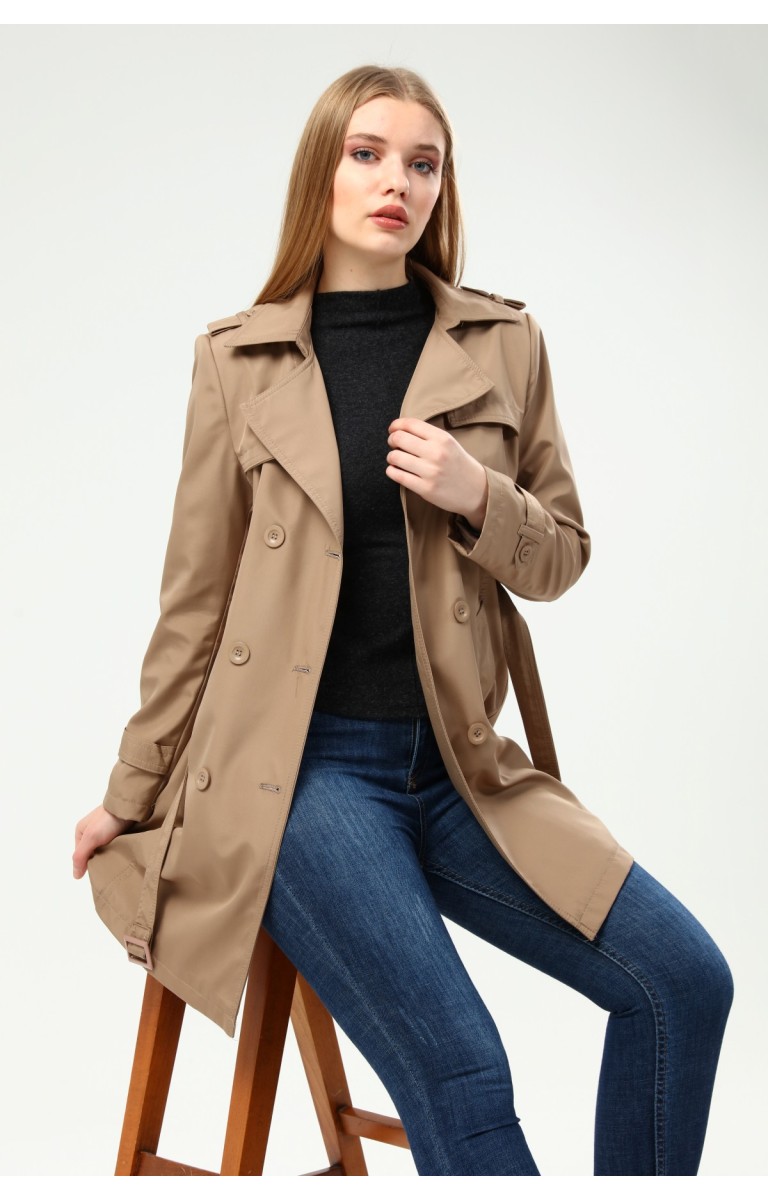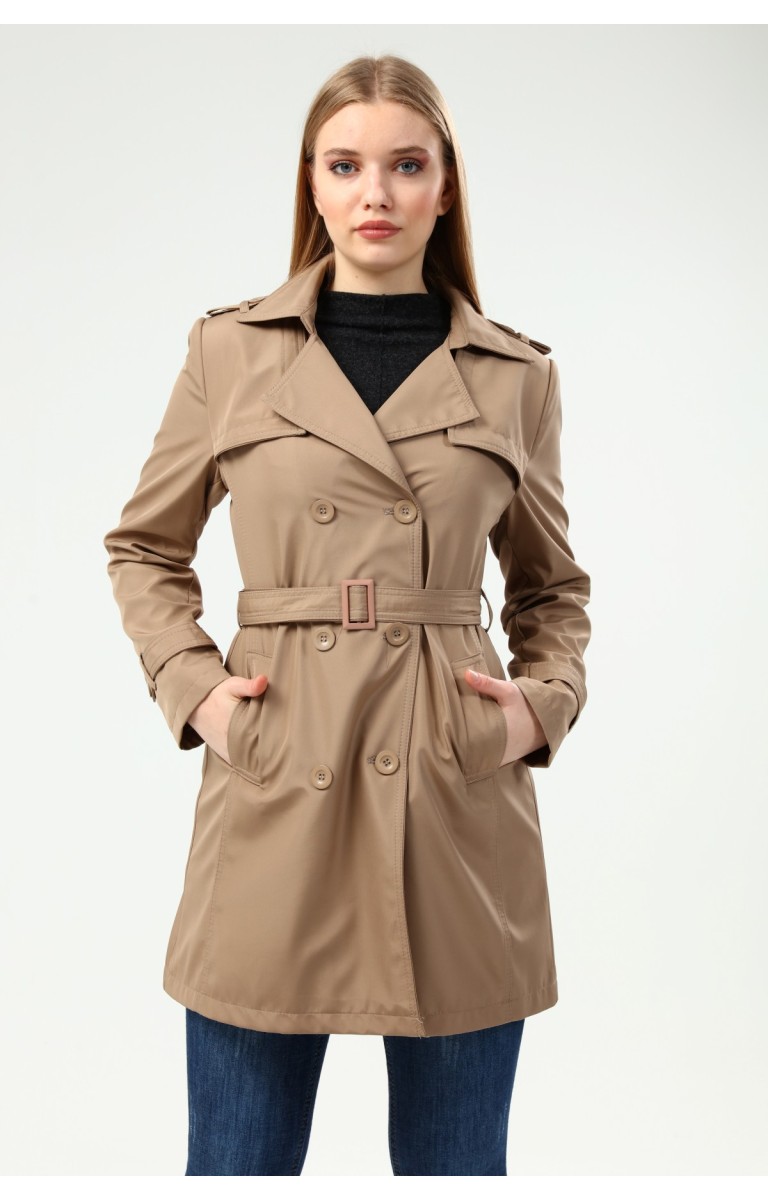KADIN BÜYÜK BEDEN ASTARLI TRENÇKOT&KAP - VİZON